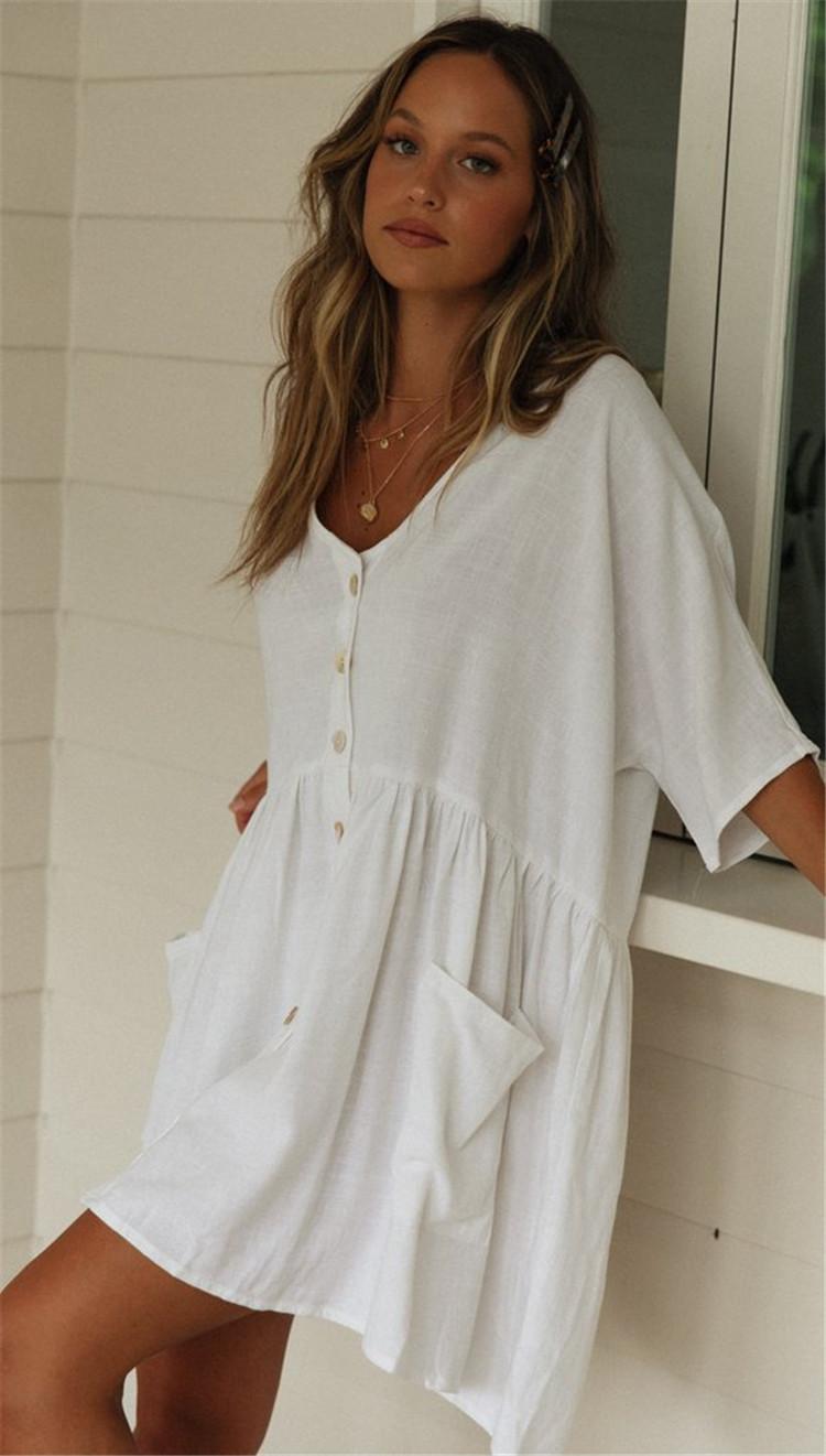 Vestido playero de algodón de bambú con cinturón, estilo europeo y americano, protector solar, sexy, sin espalda, falda corta, traje de baño femenino, ropa de abrigo