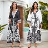 Blusa de algodón estampada nueva europea y americana, falda larga para vacaciones en la playa, traje de baño de bikini holgado, bata, ropa exterior para mujer