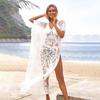Gran oferta, nueva camisa de encaje de algodón en capas, estilo manga acampanada, para playa, protección solar, traje de baño, chaqueta, cárdigan femenino