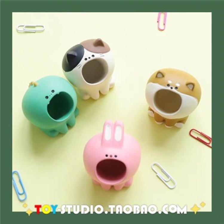 DECOLE - Portalápices con forma de conejo rosa Shiba Inu, creativo, para comestibles japoneses, con clips para papel, papelería de oficina, pequeños adornos