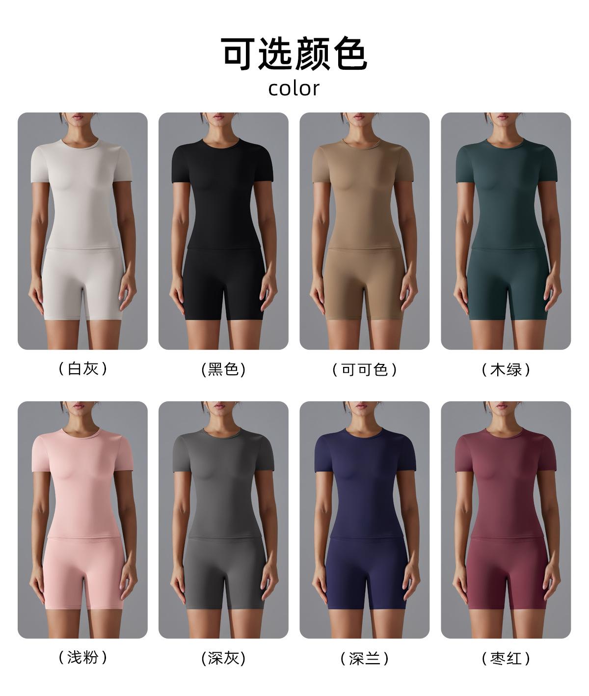 Traje de yoga de secado rápido de nailon de doble cara para mujer, conjunto de dos piezas de manga corta para fitness y correr al aire libre.
