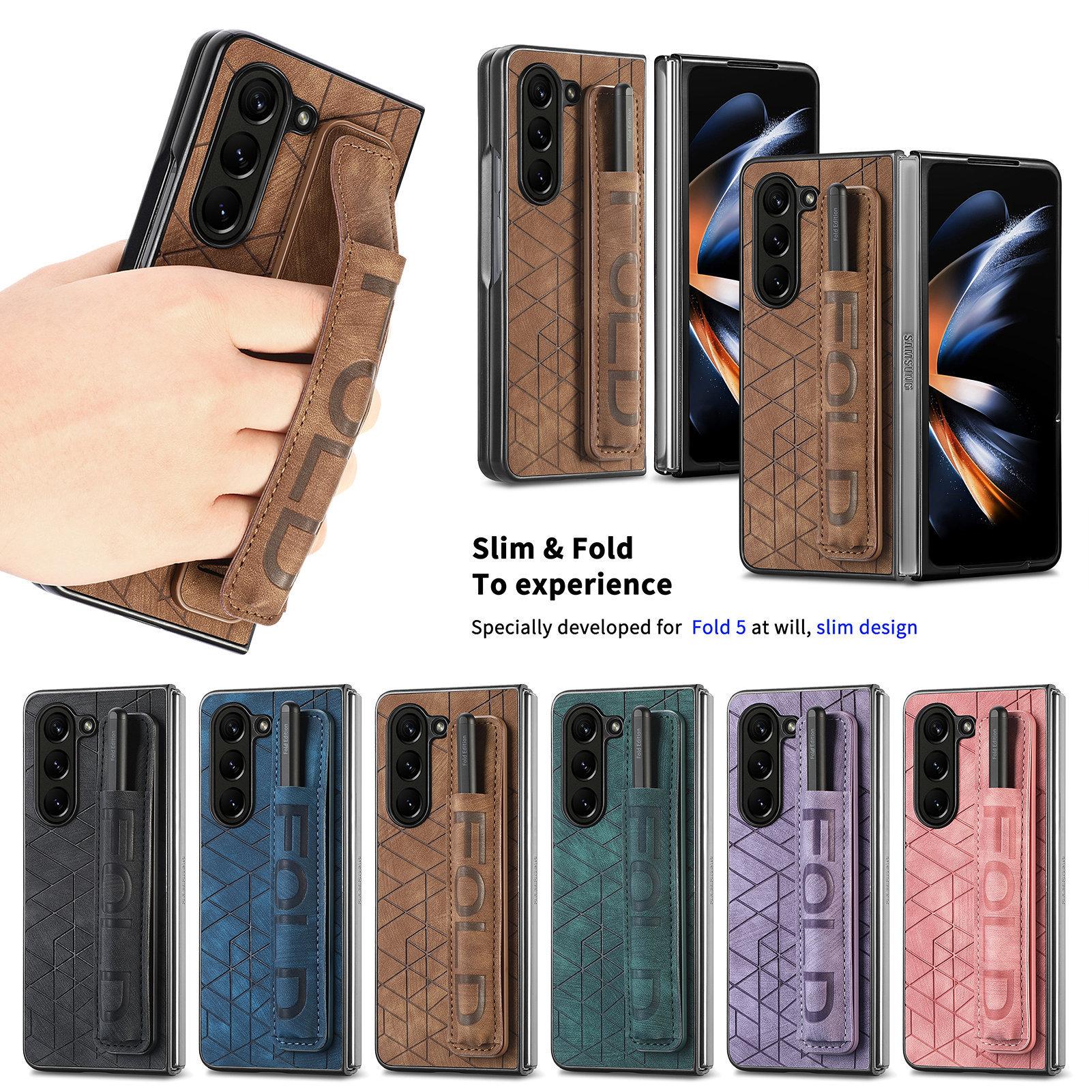 Funda para Samsung Z Fold6/5, funda para teléfono Fold4/3 con pulsera y letra para bolígrafo