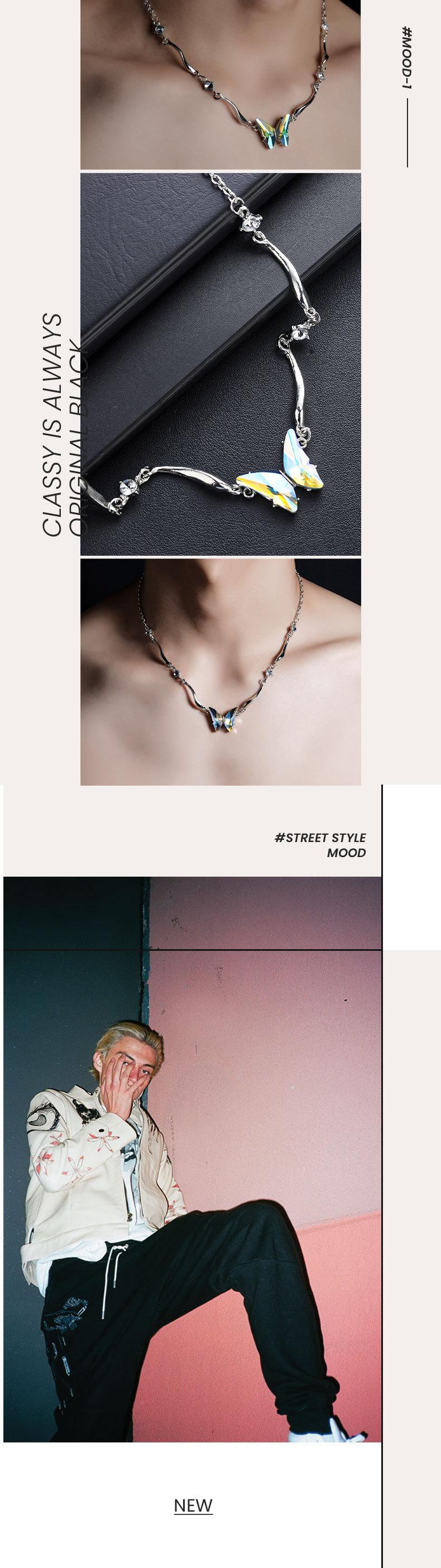 Collar de mariposa para hombre, de acero de titanio, sin color, distintivo, de moda, de alta gama, con cadena de clavícula, accesorios, joyería ligera y sencilla de lujo para mujer.