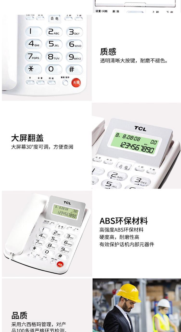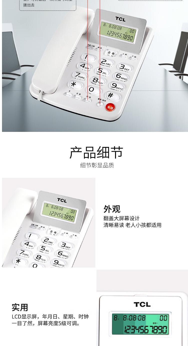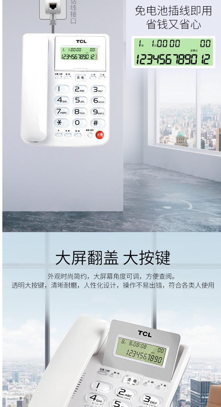 Teléfono fijo TCL202 para casa, oficina, negocios, teléfono fijo sin batería, interfaz dual, cubierta de pantalla abatible, teléfono fijo con cable