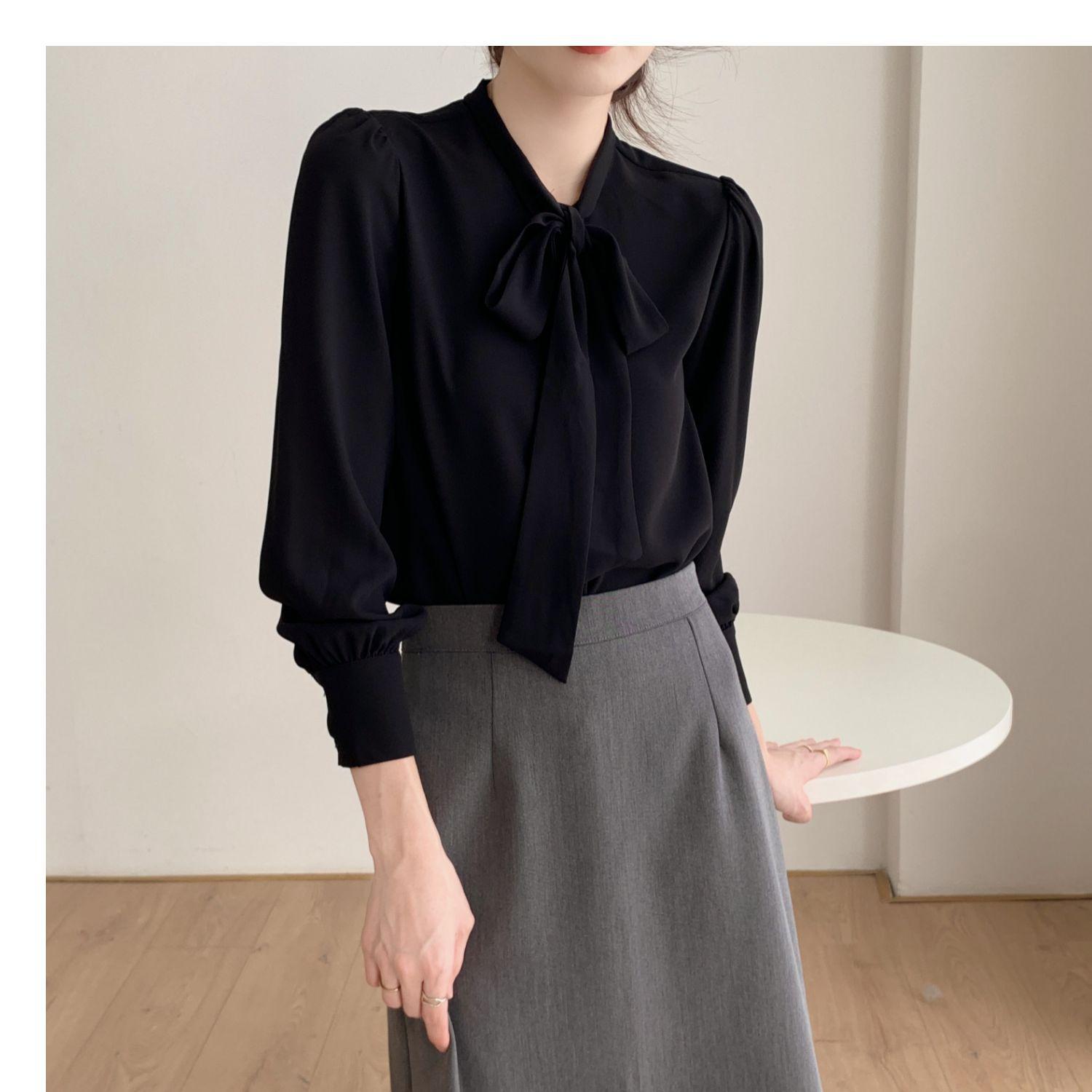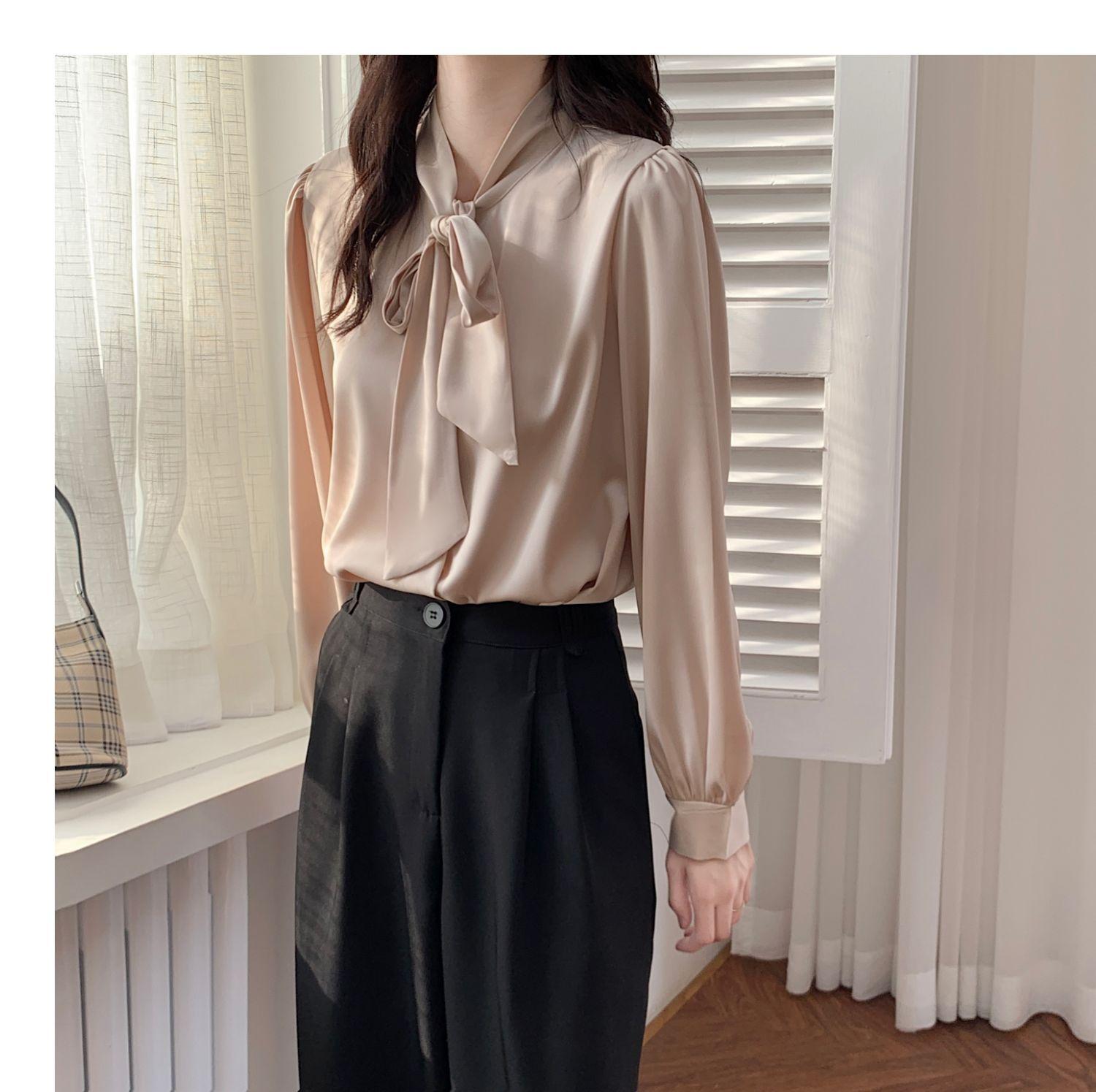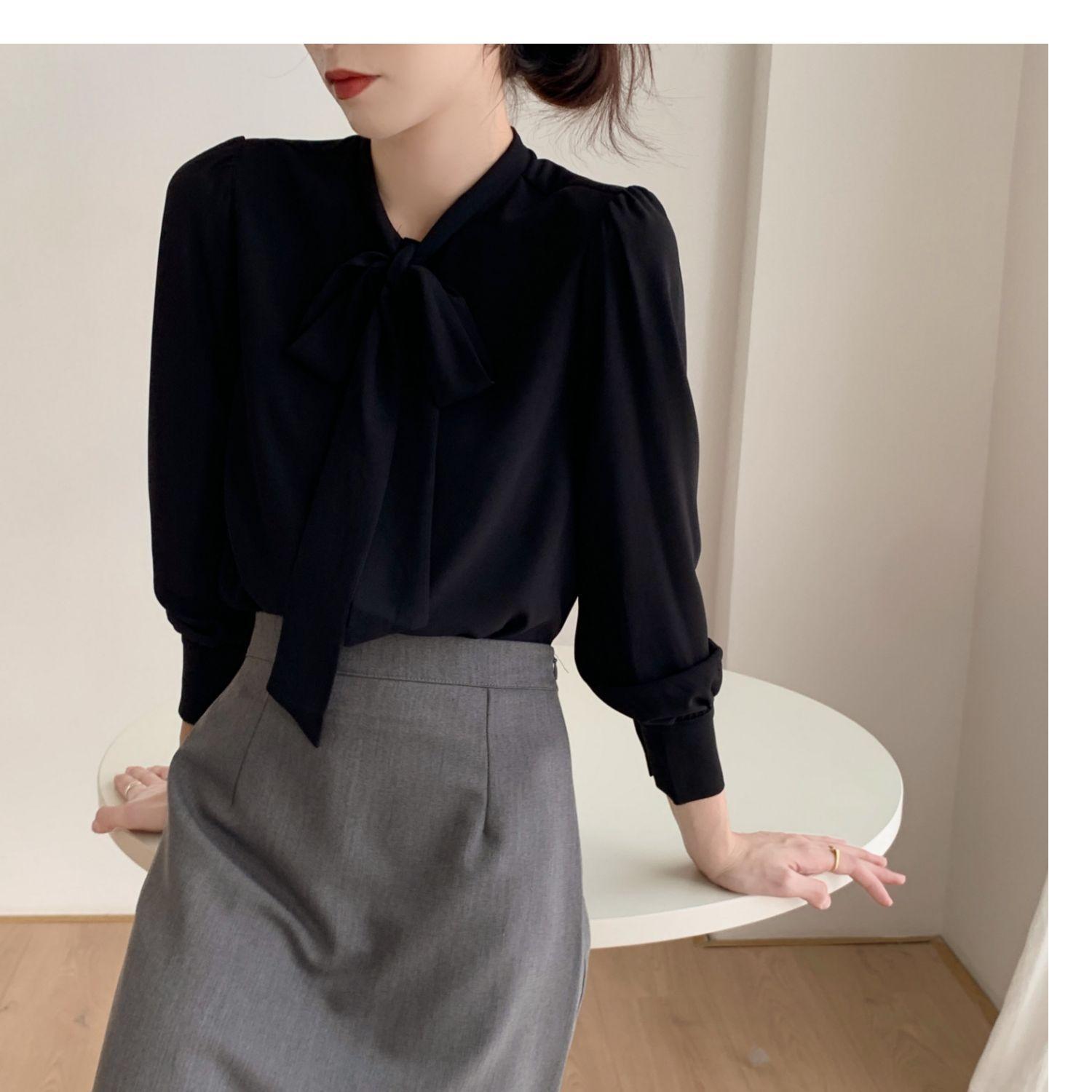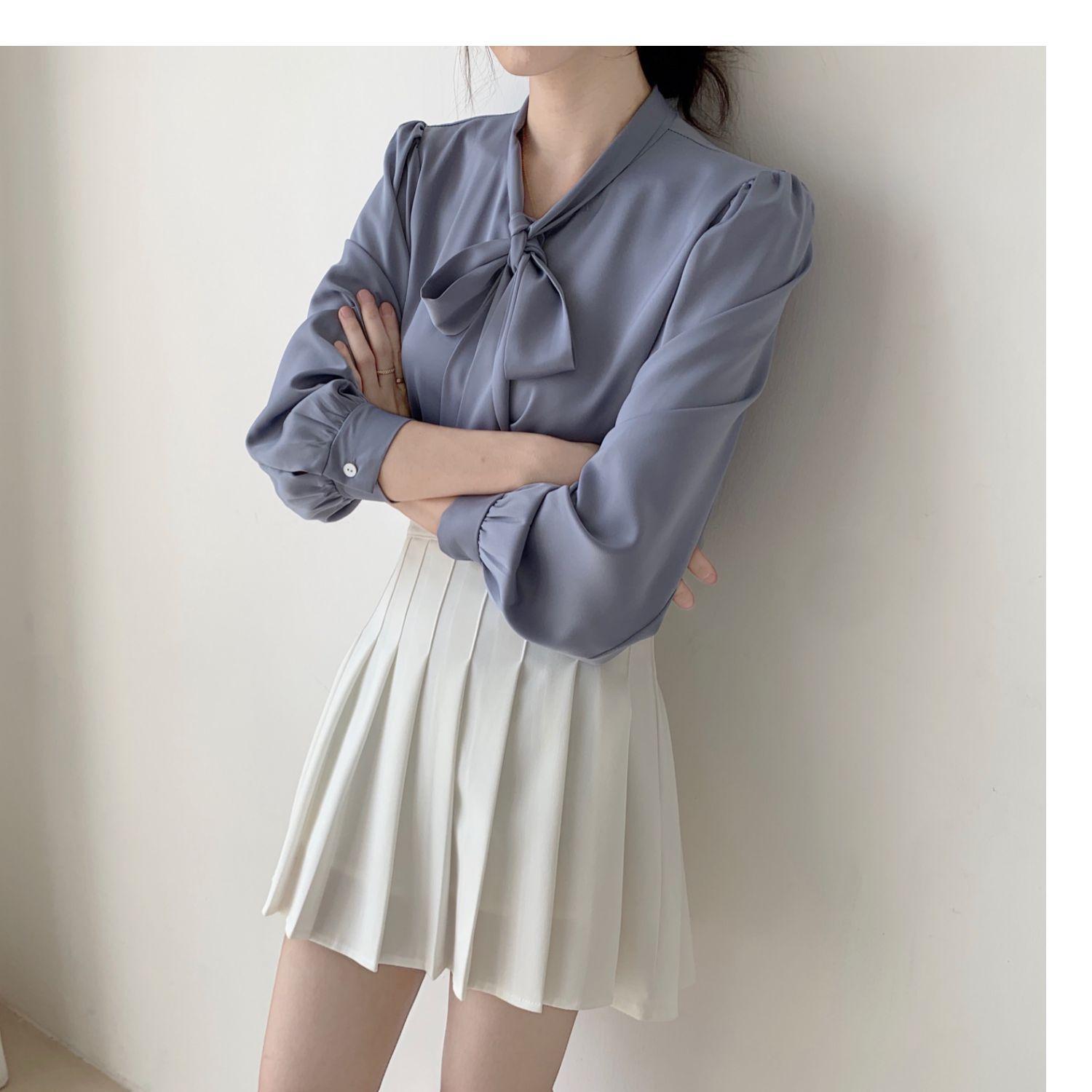 Camisa de lazo azul de primavera y verano para mujer, diseño Sense Niche, camisa elegante profesional, top de satén con encaje