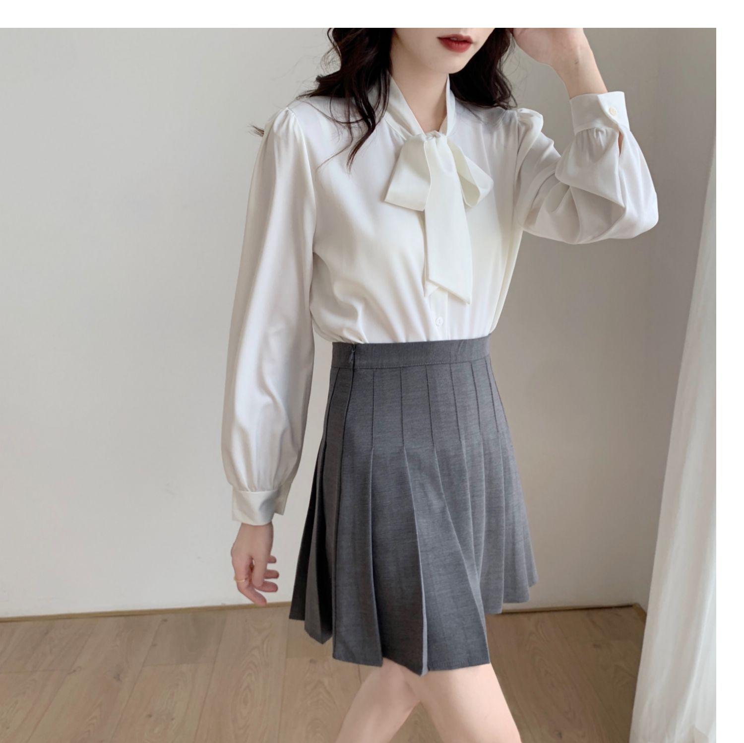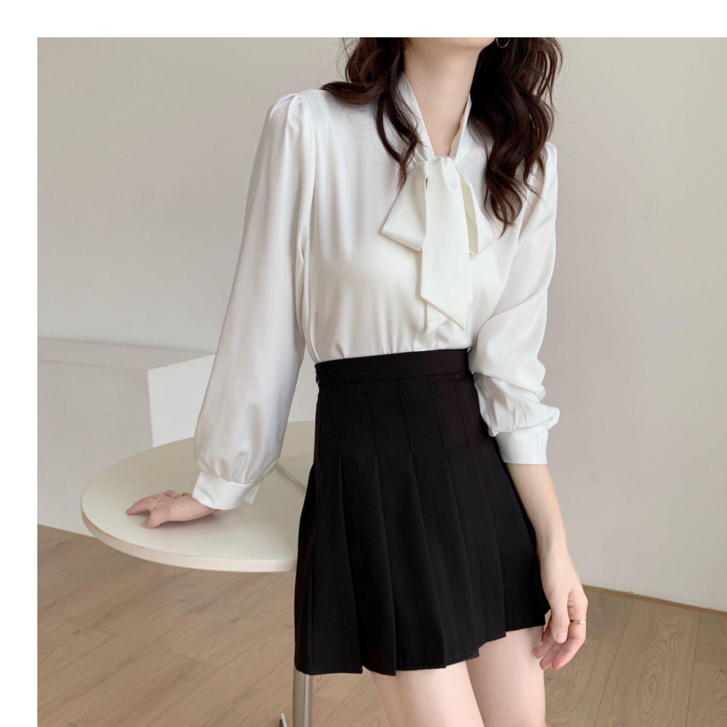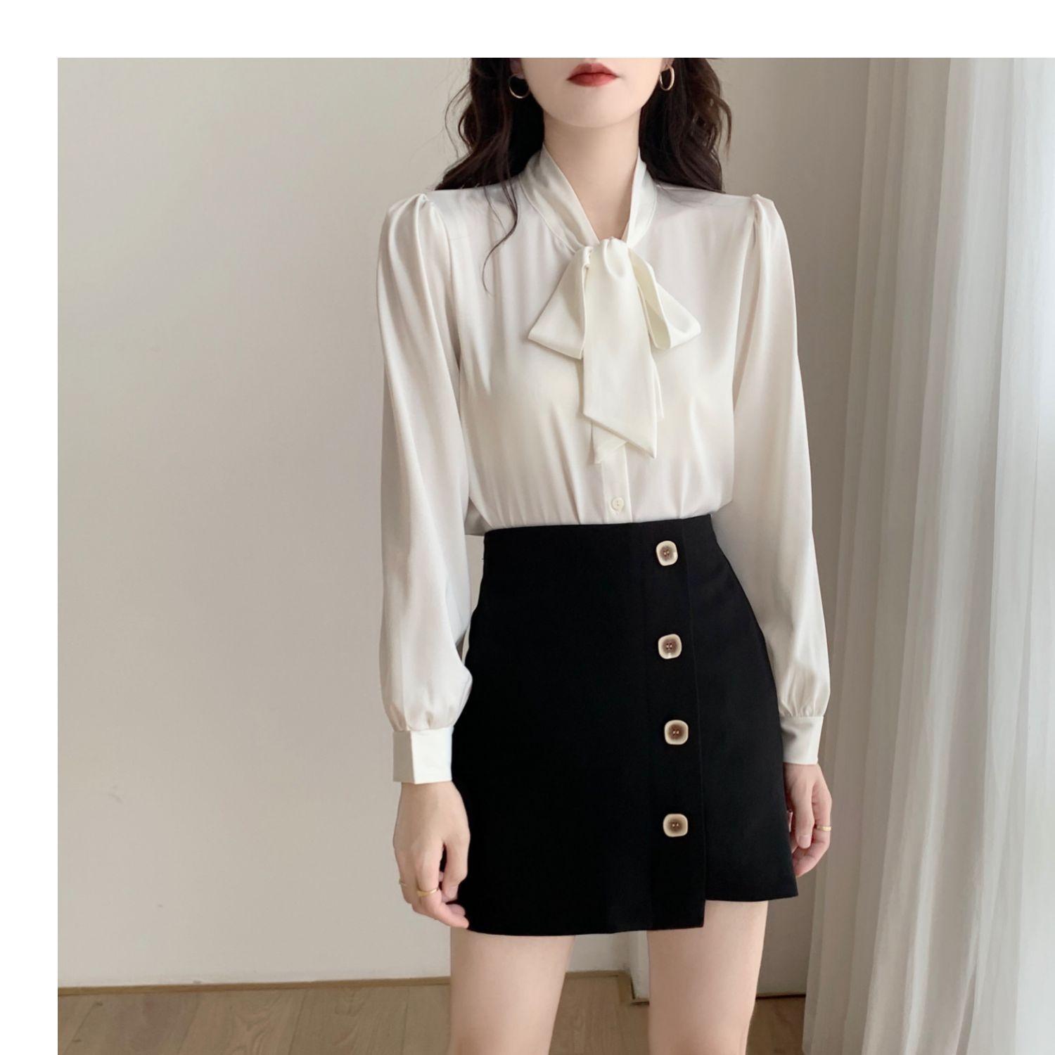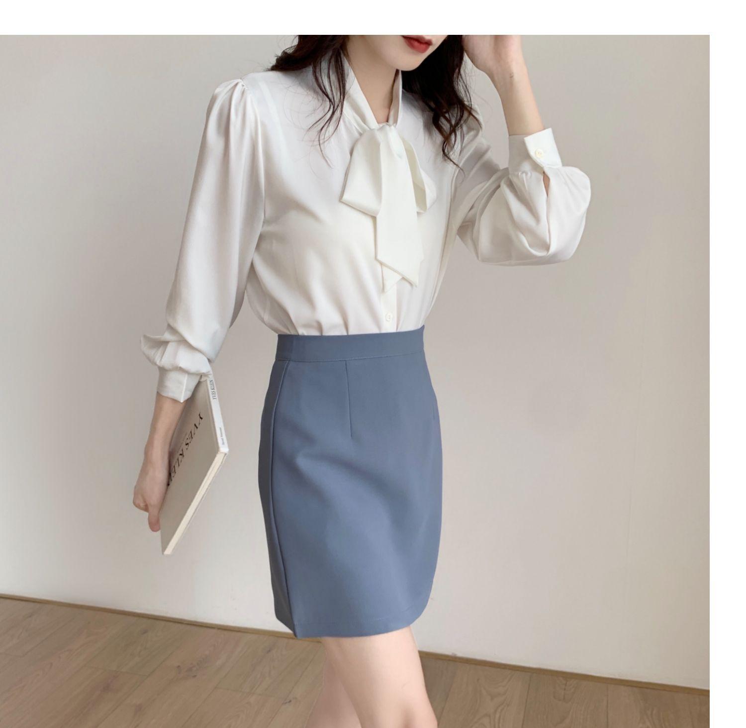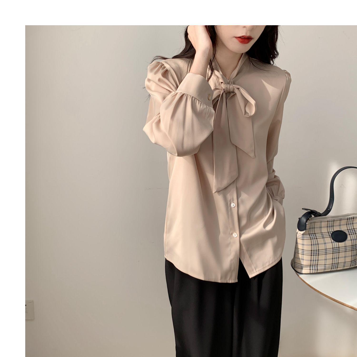 Camisa de lazo azul de primavera y verano para mujer, diseño Sense Niche, camisa elegante profesional, top de satén con encaje