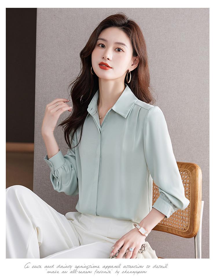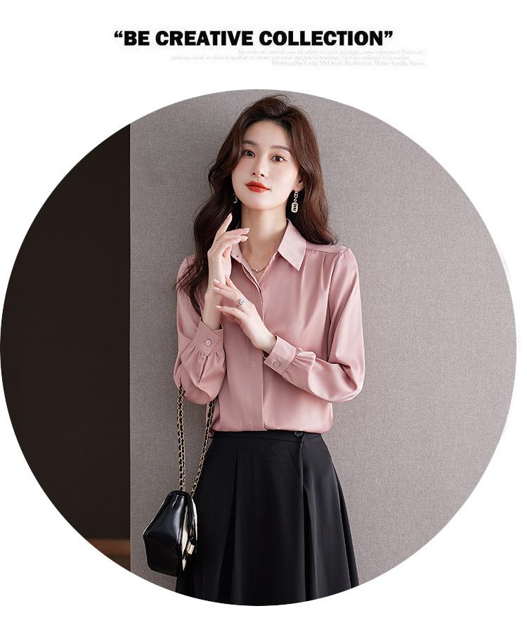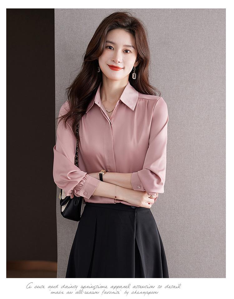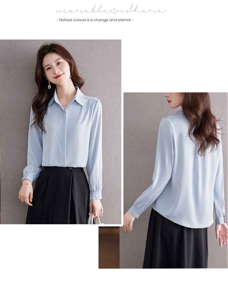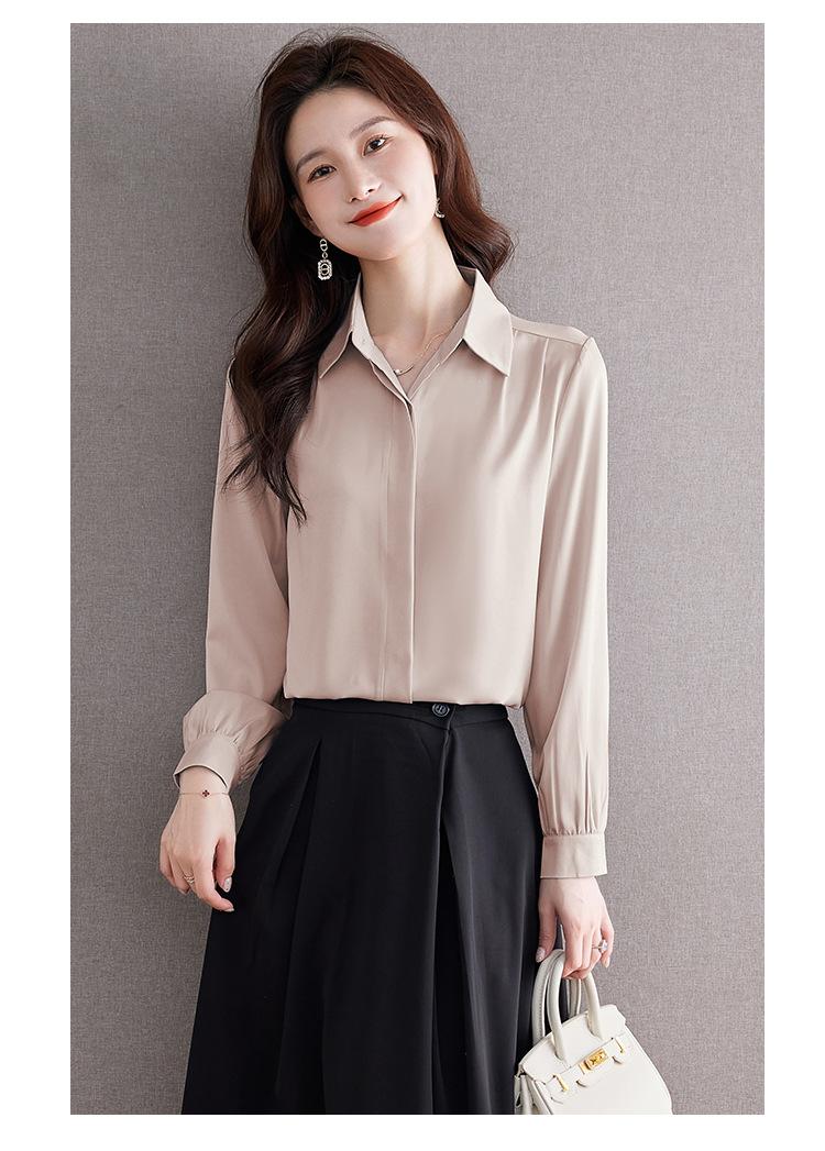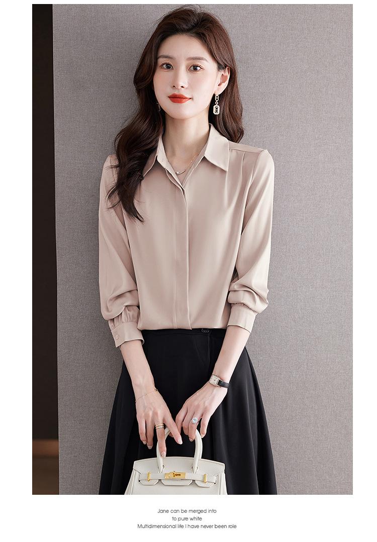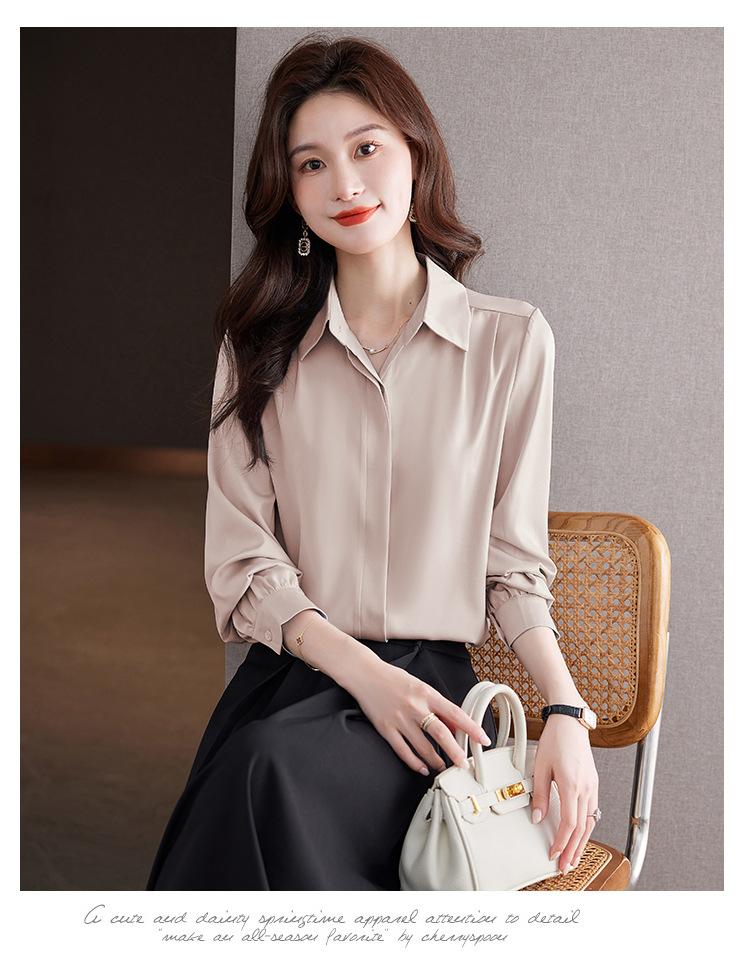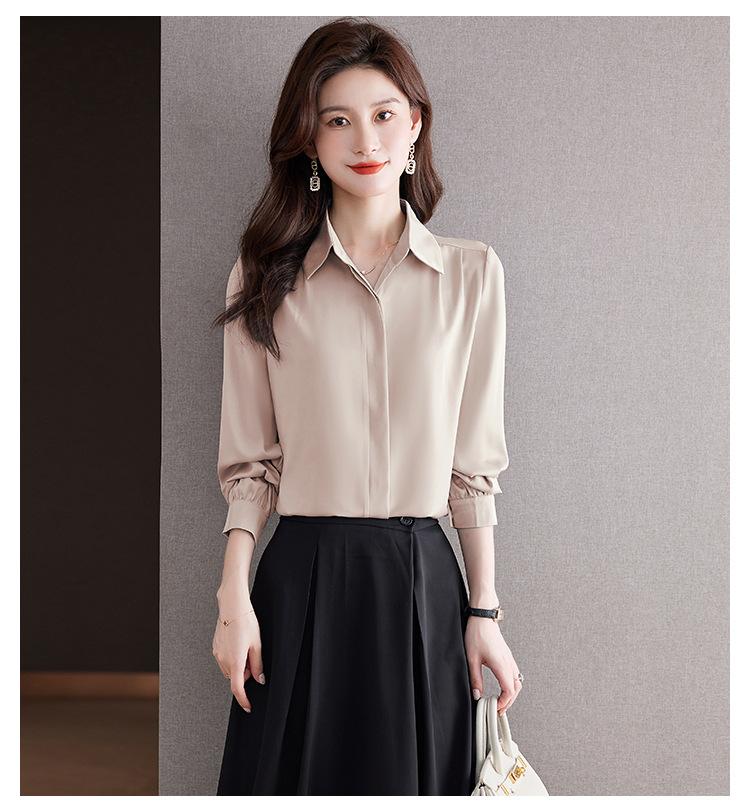 Foto Real de Camisa de Satén Versátil para Mujer 2024 Otoño Nuevo Diseño Nicho Camisa Casual Slim