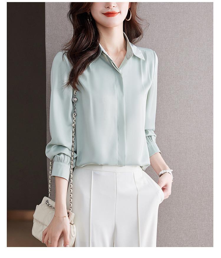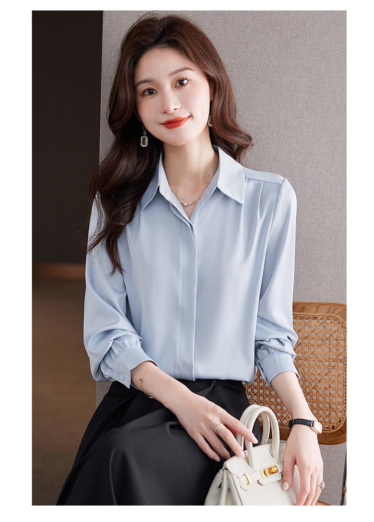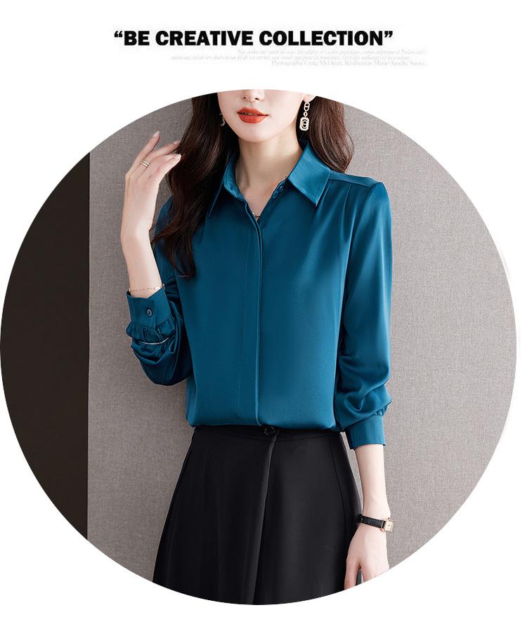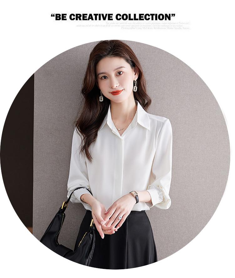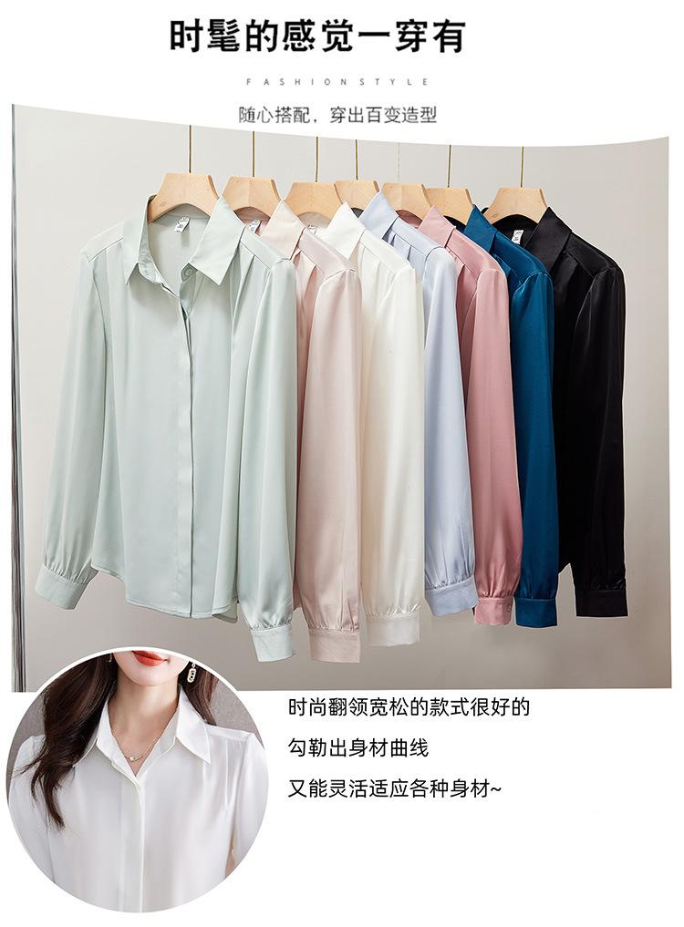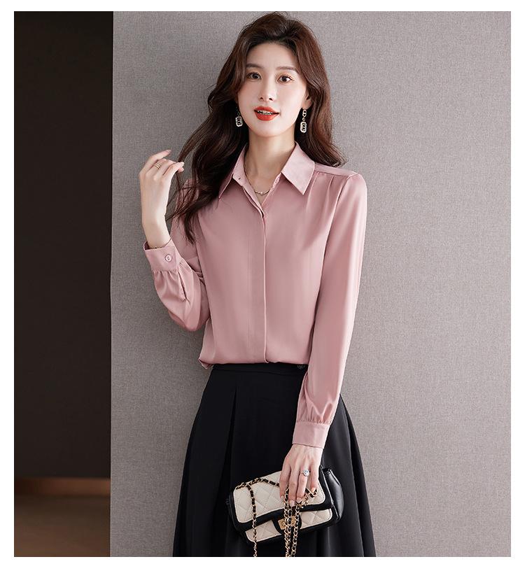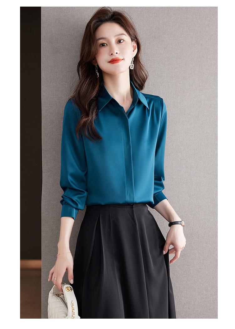 Foto Real de Camisa de Satén Versátil para Mujer 2024 Otoño Nuevo Diseño Nicho Camisa Casual Slim