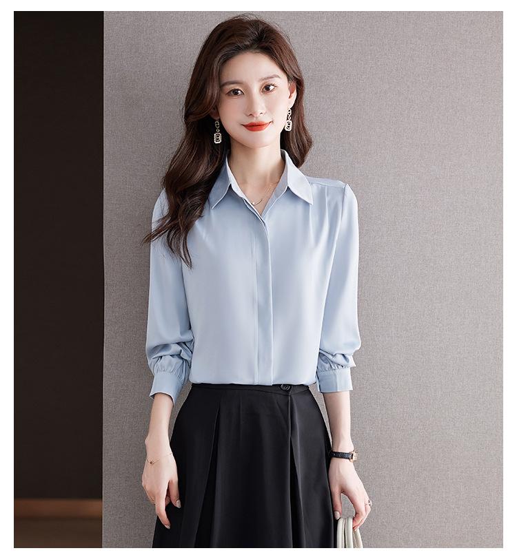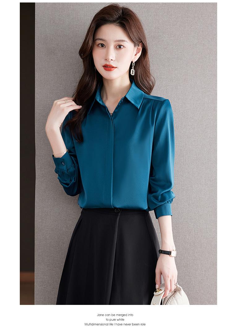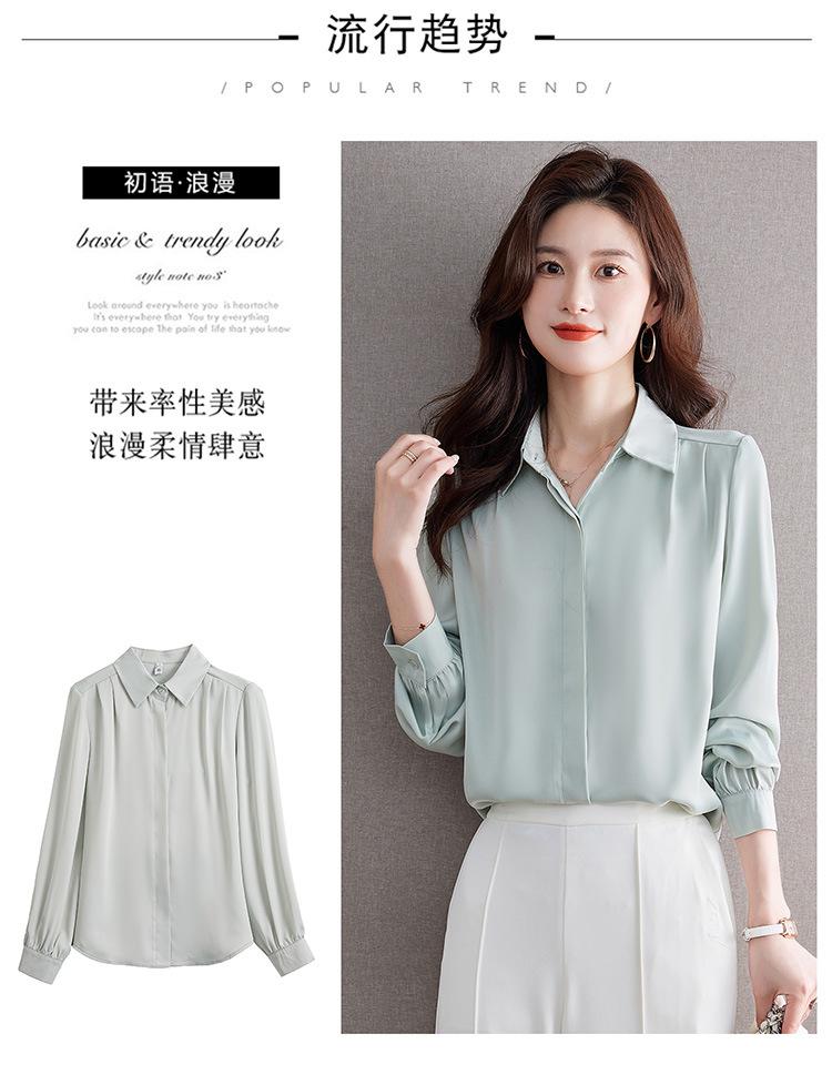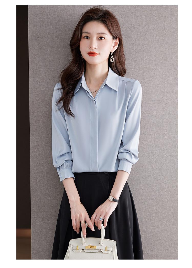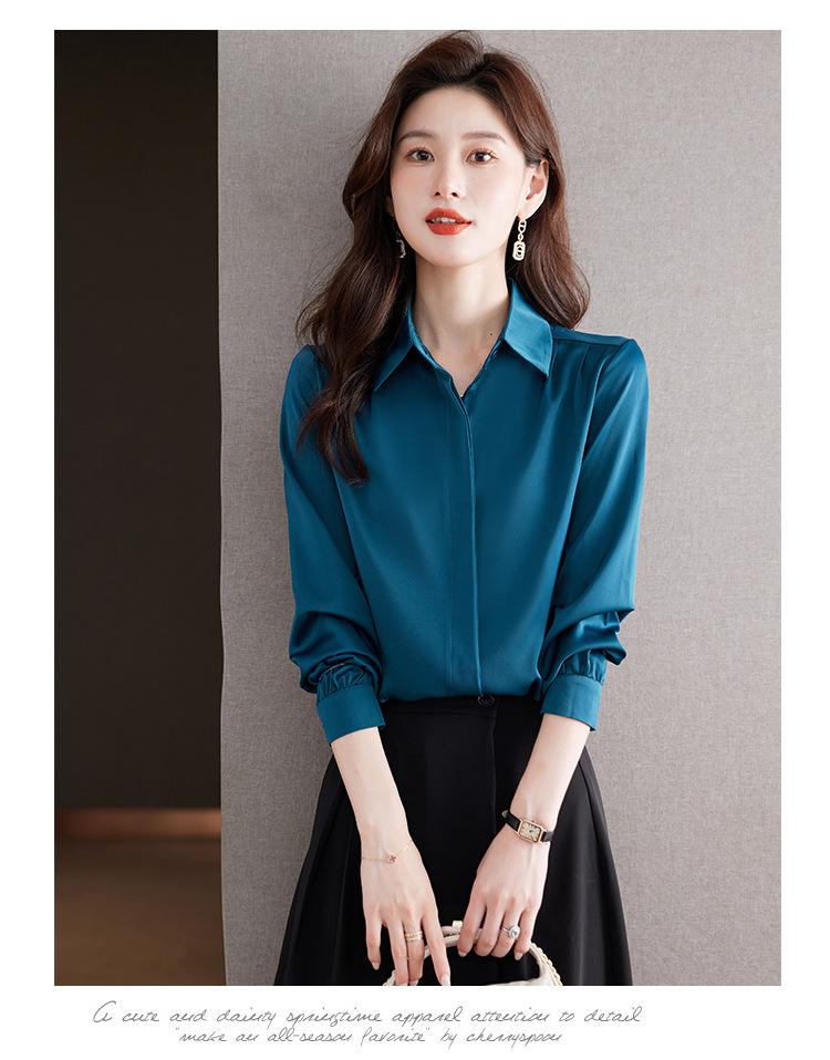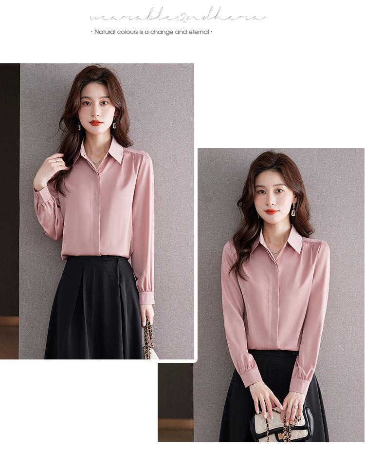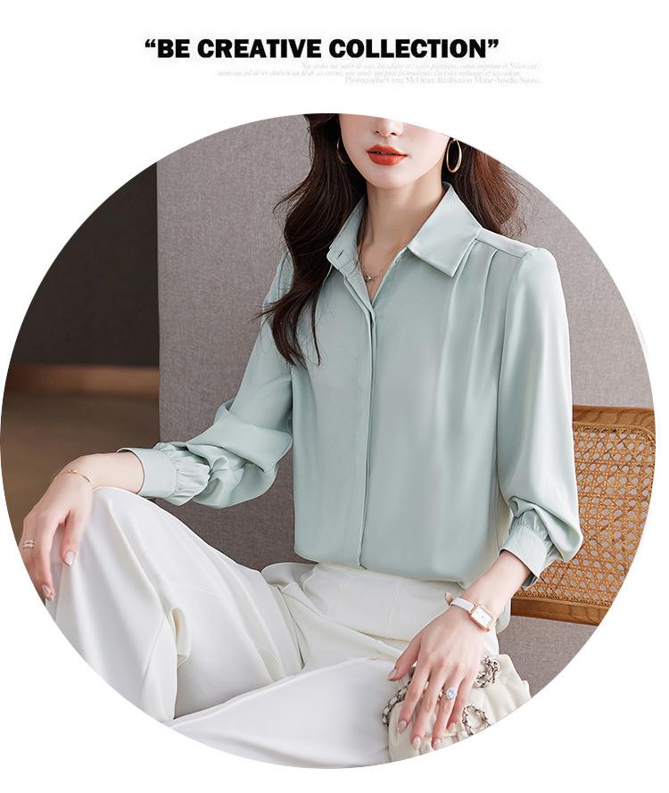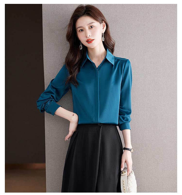 Foto Real de Camisa de Satén Versátil para Mujer 2024 Otoño Nuevo Diseño Nicho Camisa Casual Slim