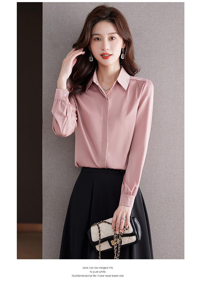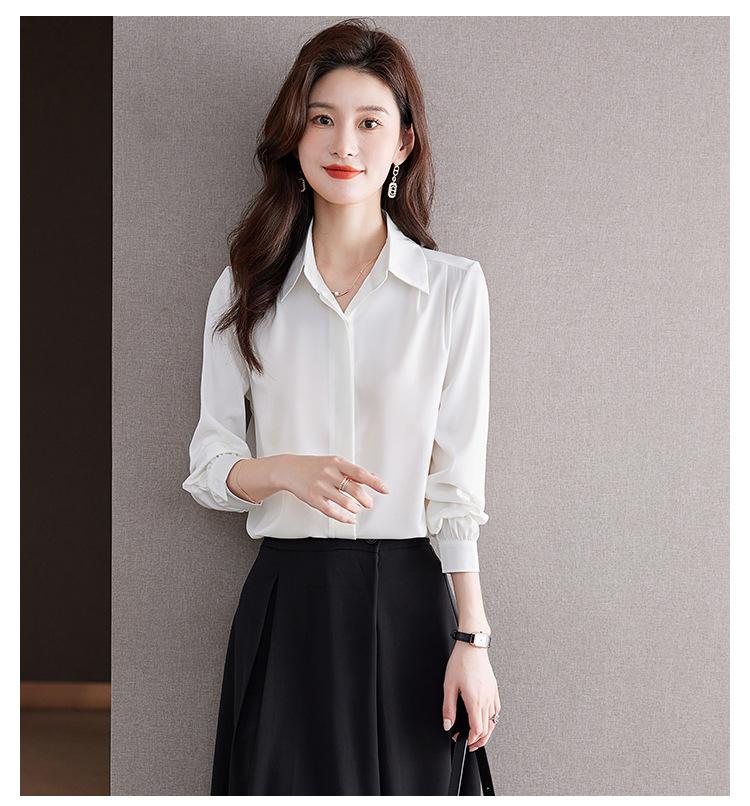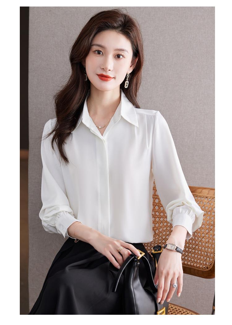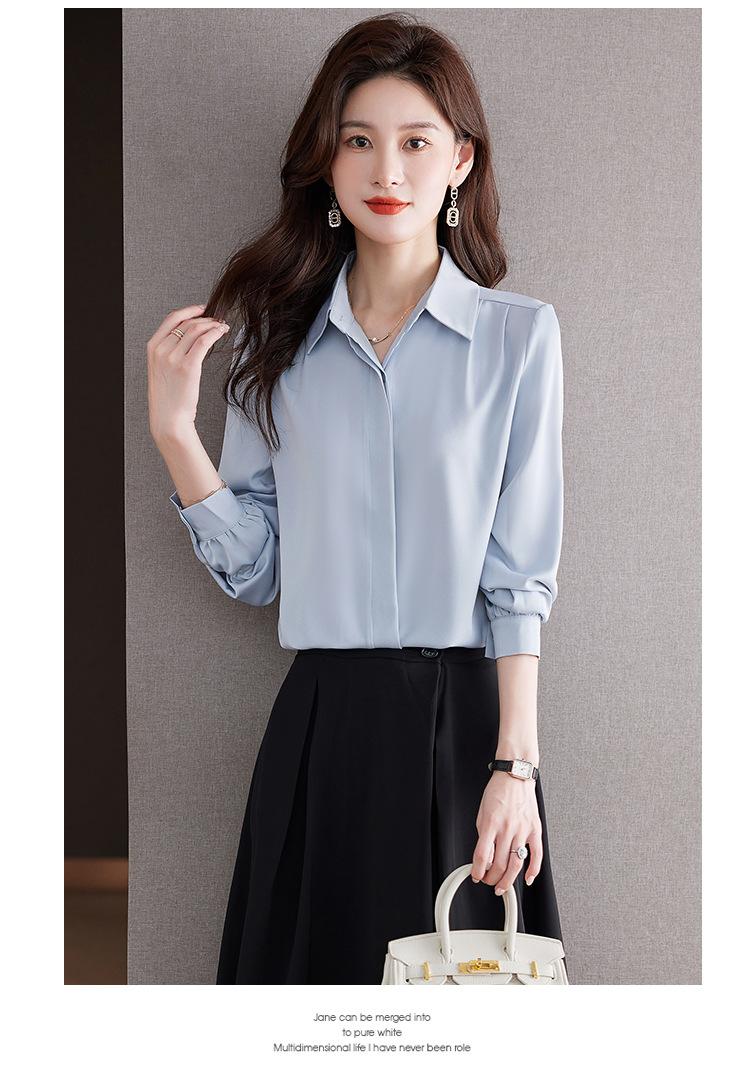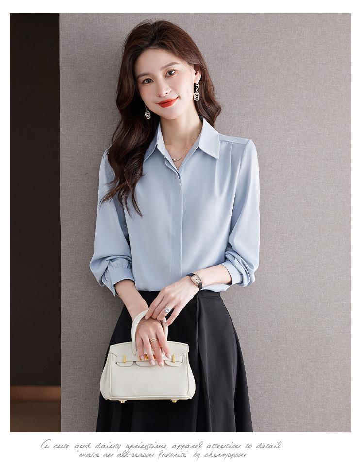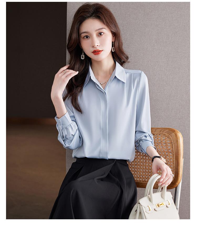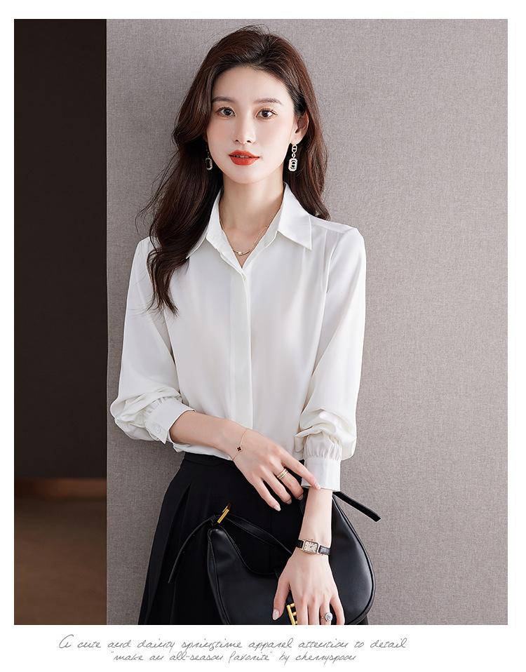 Foto Real de Camisa de Satén Versátil para Mujer 2024 Otoño Nuevo Diseño Nicho Camisa Casual Slim