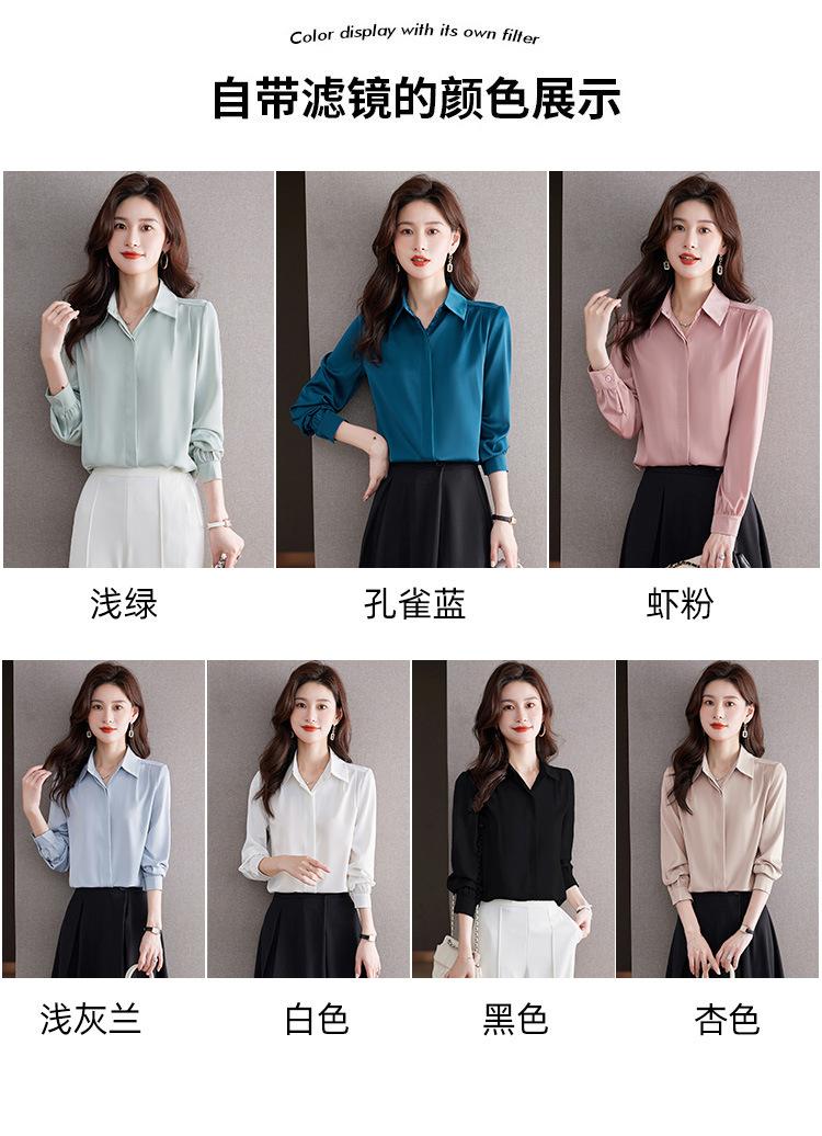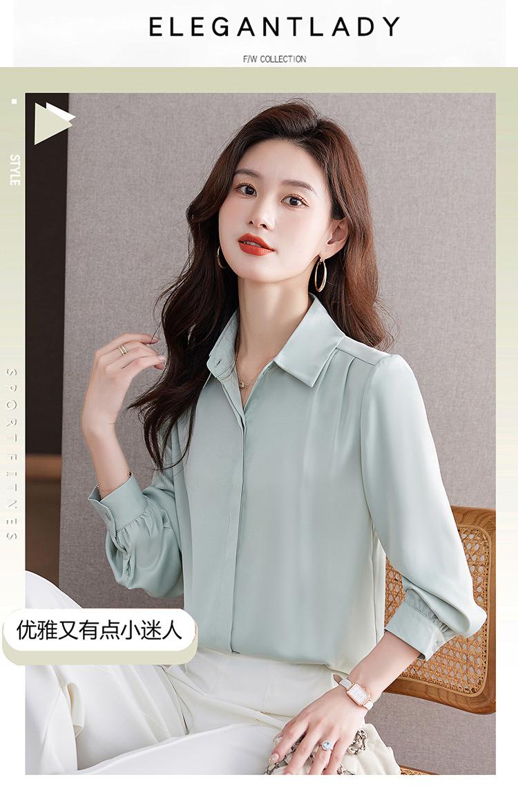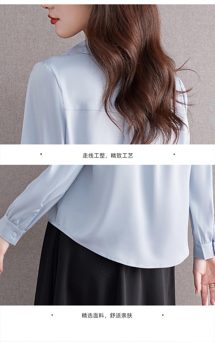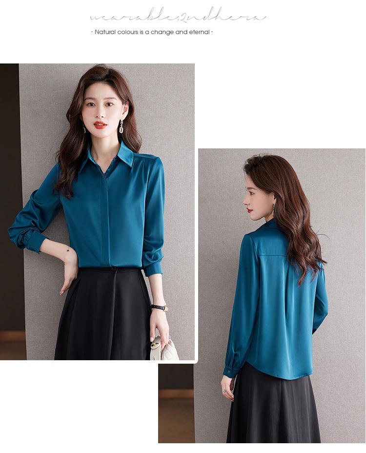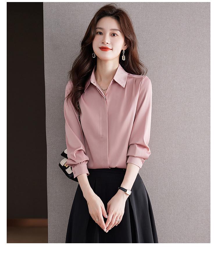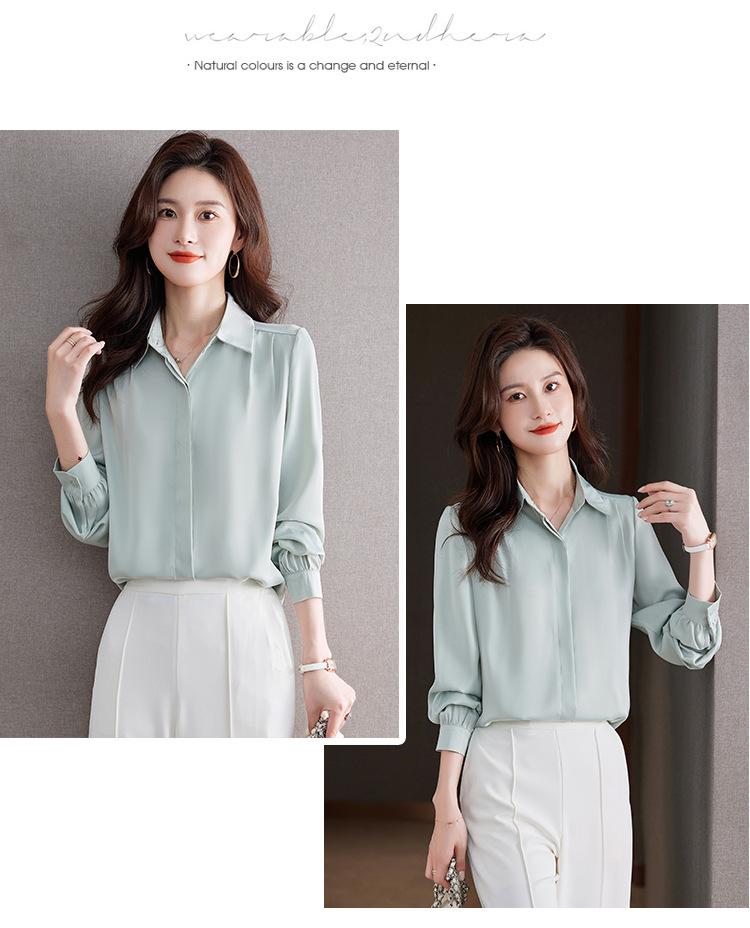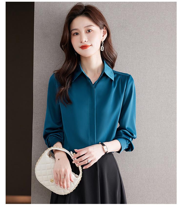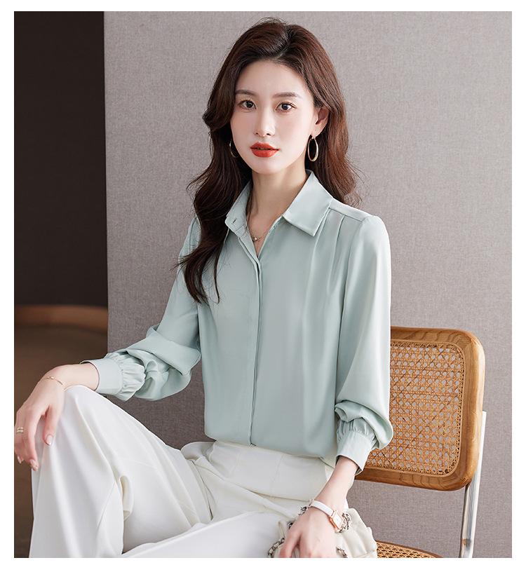 Foto Real de Camisa de Satén Versátil para Mujer 2024 Otoño Nuevo Diseño Nicho Camisa Casual Slim