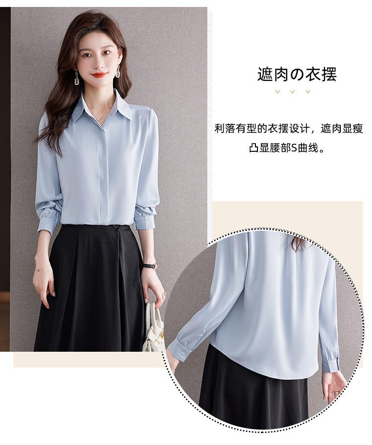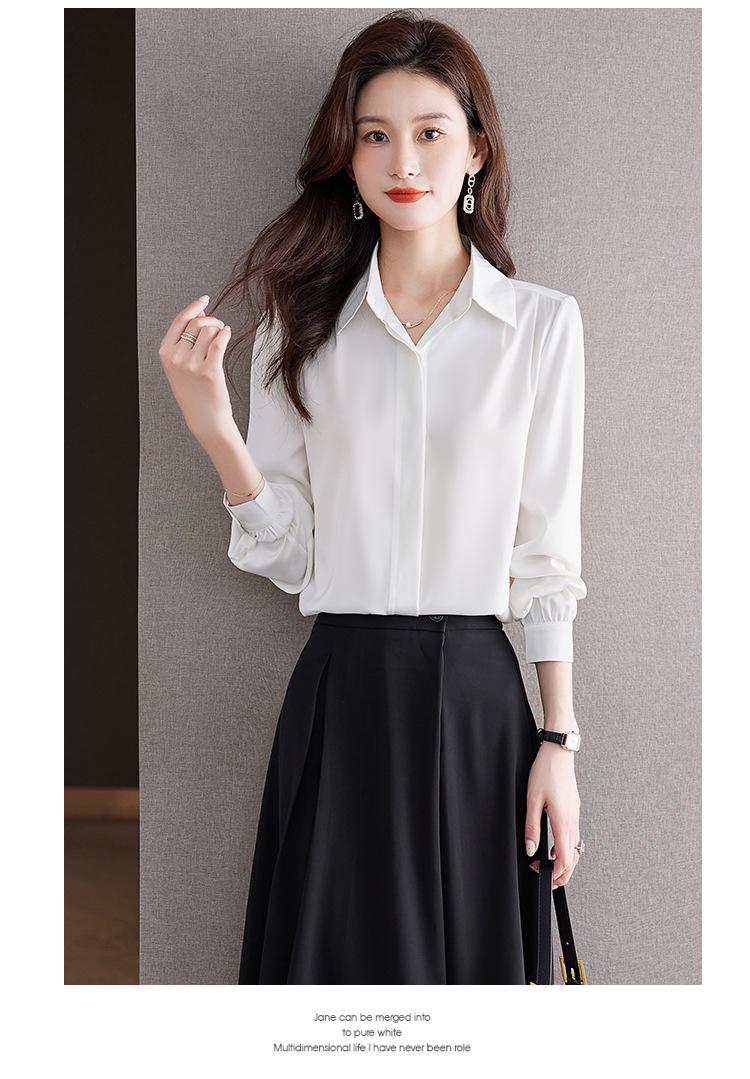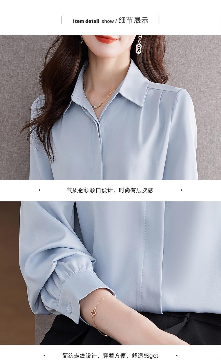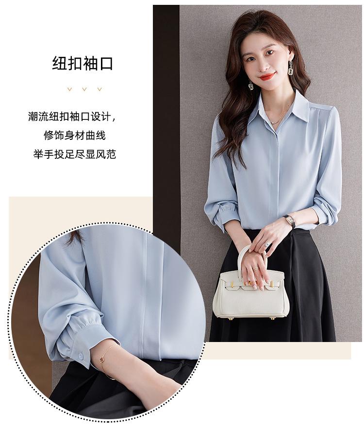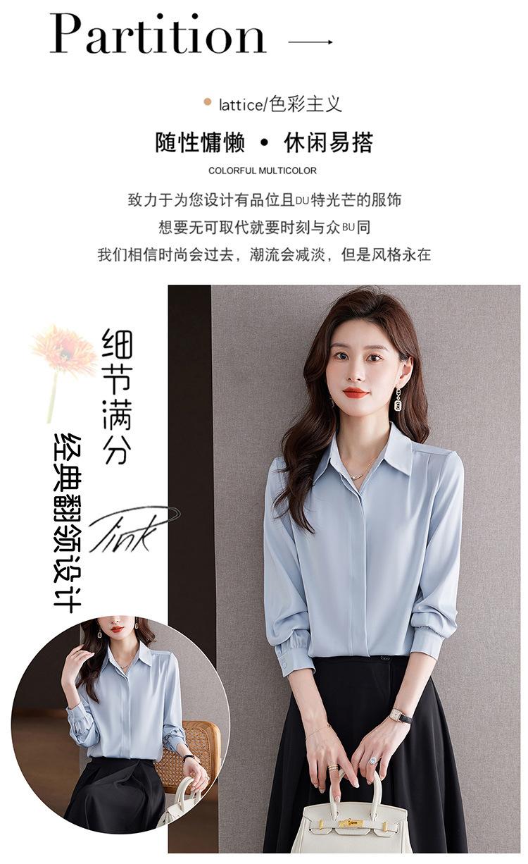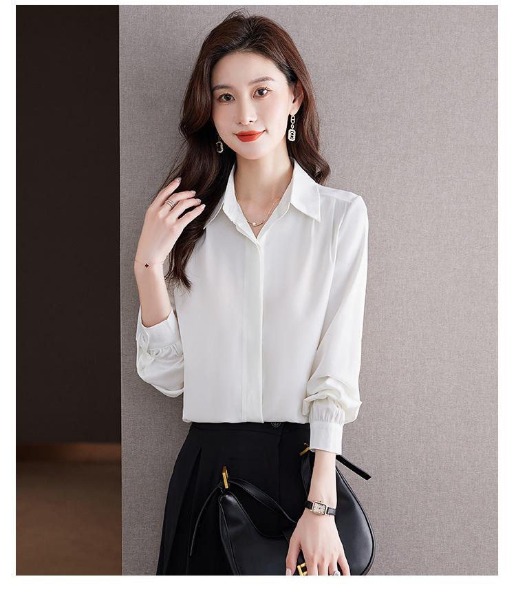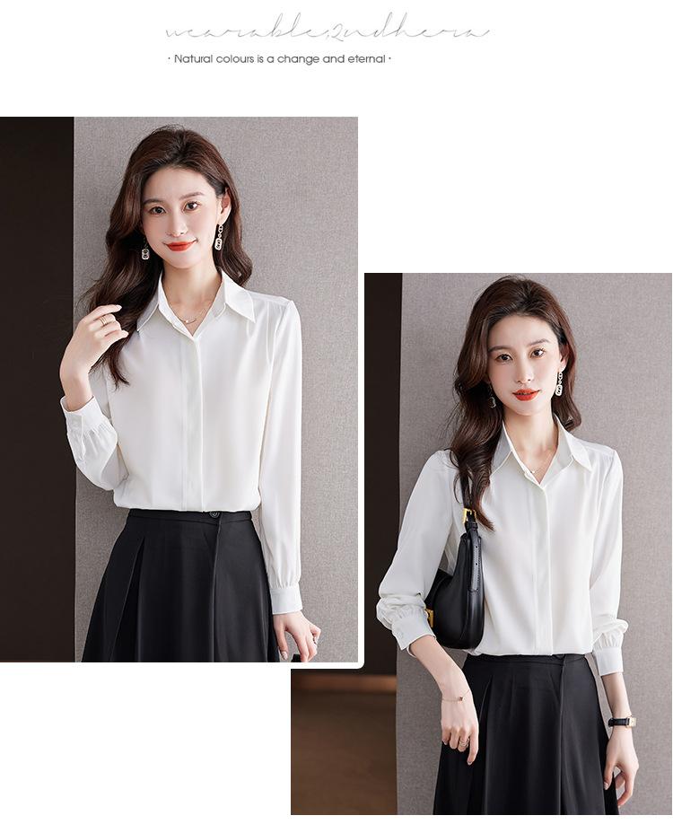 Foto Real de Camisa de Satén Versátil para Mujer 2024 Otoño Nuevo Diseño Nicho Camisa Casual Slim