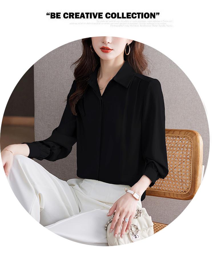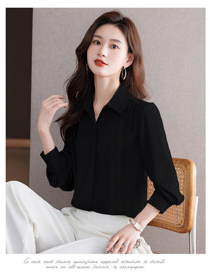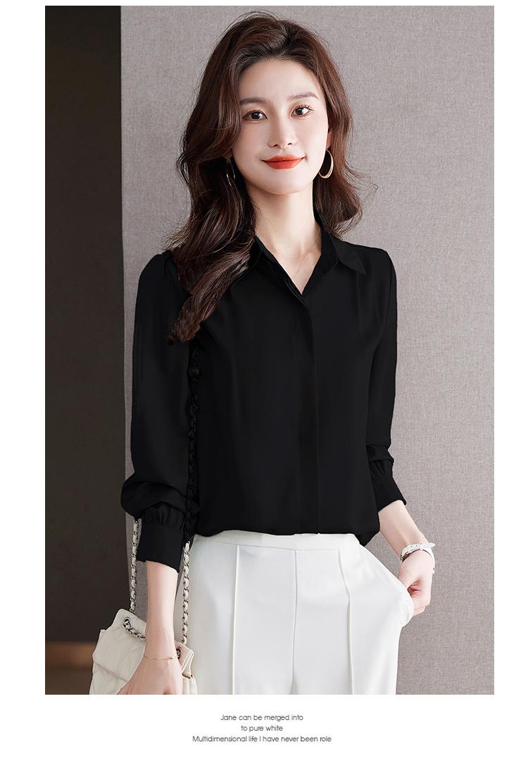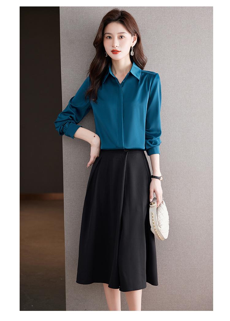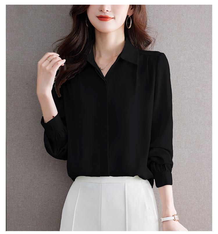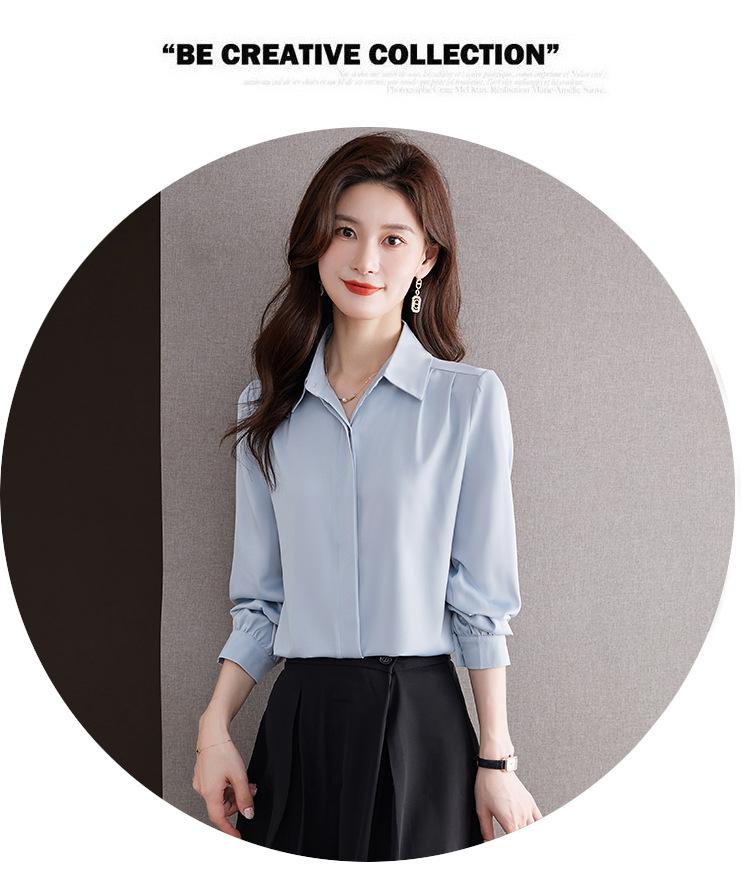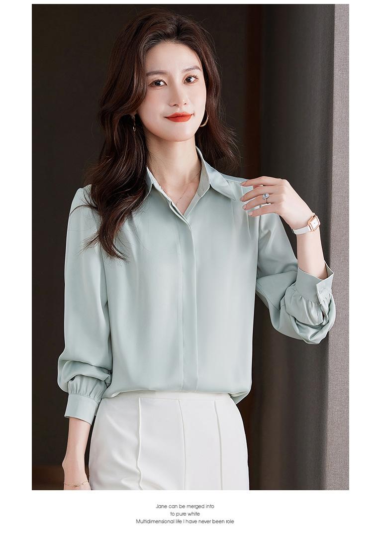 Foto Real de Camisa de Satén Versátil para Mujer 2024 Otoño Nuevo Diseño Nicho Camisa Casual Slim