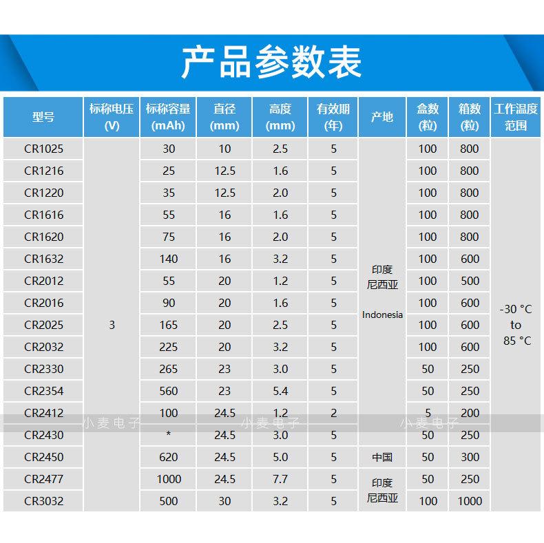 CR2032, CR2025, CR2016, CR1632, CR1620, CR1616, CR1220, CR2450, CR2430, CR2477, CR2354, CR3032, Cr2032 single ...