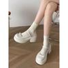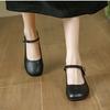 Zapatos Mary Jane vintage para mujer, punta cuadrada, tacón bajo, piel suave, diseño moderno, color negro, 2024
