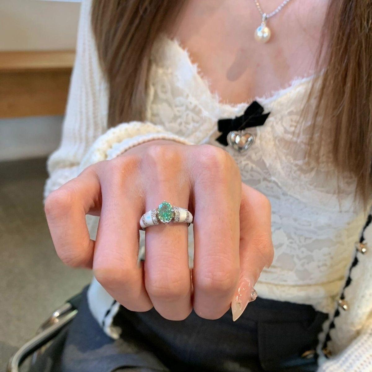 Anillo de Circonita Antiguo Medio Vintage Luz Lujo de Alta Gama Sentido Estilo Ins Anillo Abierto Anillo Ajustable Nicho Nuevo