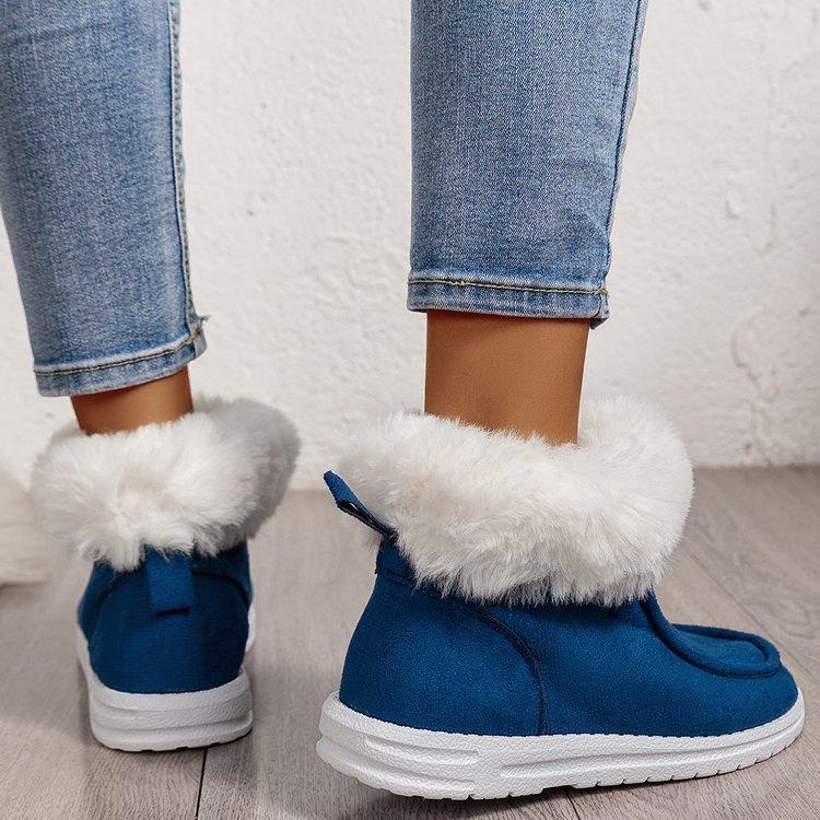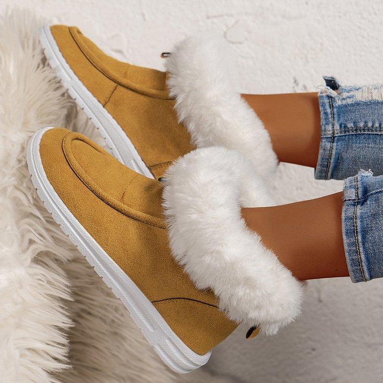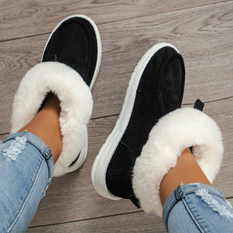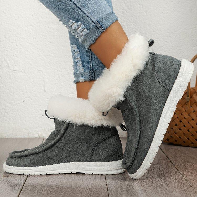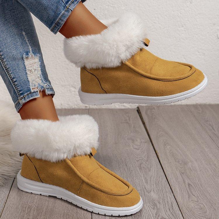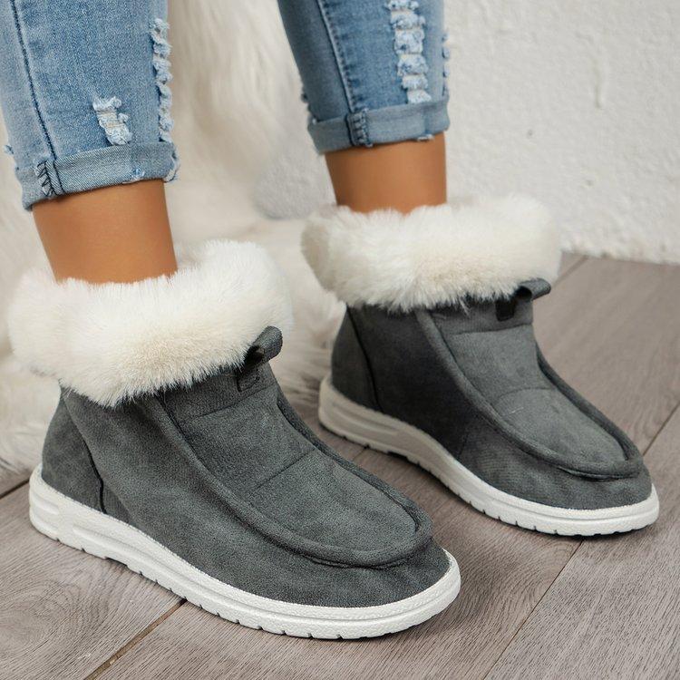 2024 nuevos zapatos de algodón de gamuza de color sólido de talla grande de comercio exterior para otoño e invierno, raquetas de nieve casuales de algodón con forro polar bajo para mujer