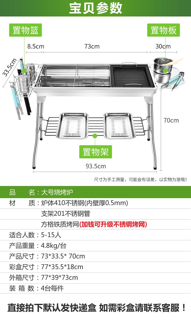 Parrilla de acero inoxidable para barbacoa, barbacoa de carbón para exteriores, horno doméstico, parrilla plegable portátil y gruesa para barbacoa