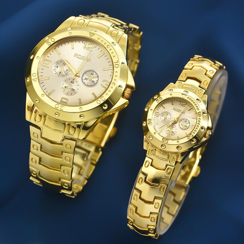 Relojes de Pareja con Correa de Acero Dongda Retro para Pareja Redondos para Hombre y Mujer Relojes Casuales con Temperamento Dorado Rico de Moda Venta al por Mayor