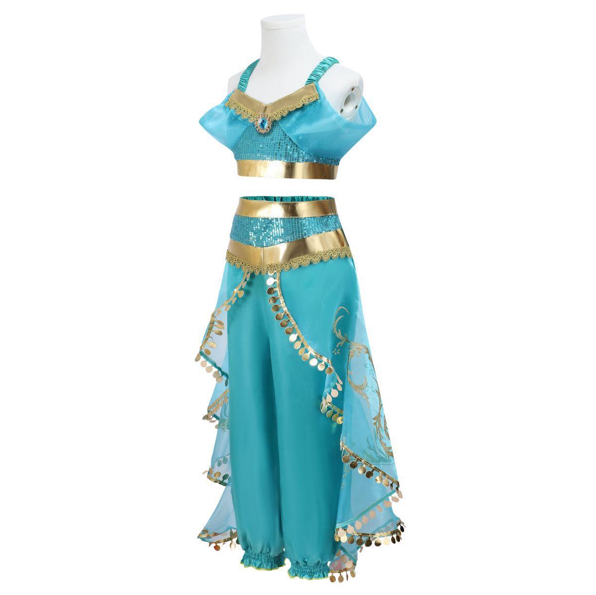 Traje de dos piezas de la princesa Jasmine, disfraz infantil, cosplay de Aladdin, disfraz de actuación de Halloween, estilo europeo y americano.