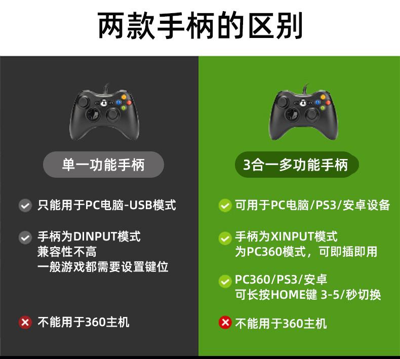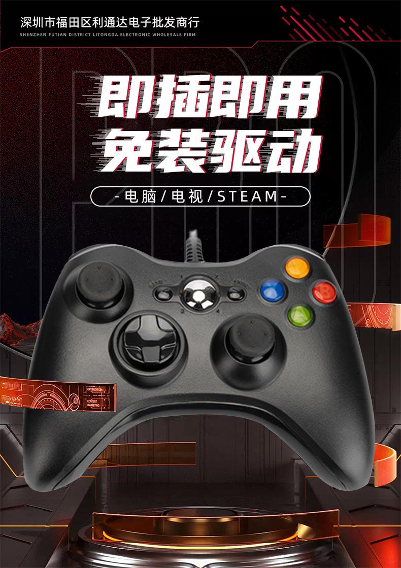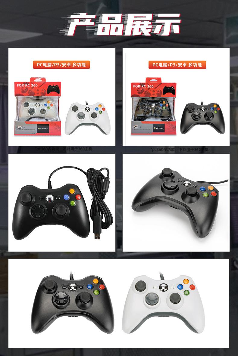 Mando de juego xbox360 todo en uno con cable para PC con retroalimentación por vibración puede añadir logotipo nuevo mando al por mayor