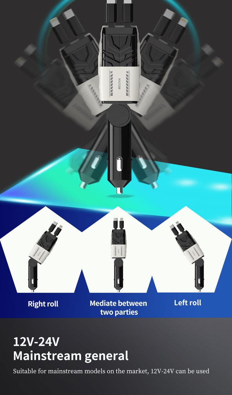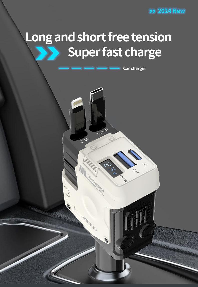 Cargador de coche carga súper rápida carga flash línea telescópica meca pantalla decorativa cuatro en uno encendedor de cigarrillos