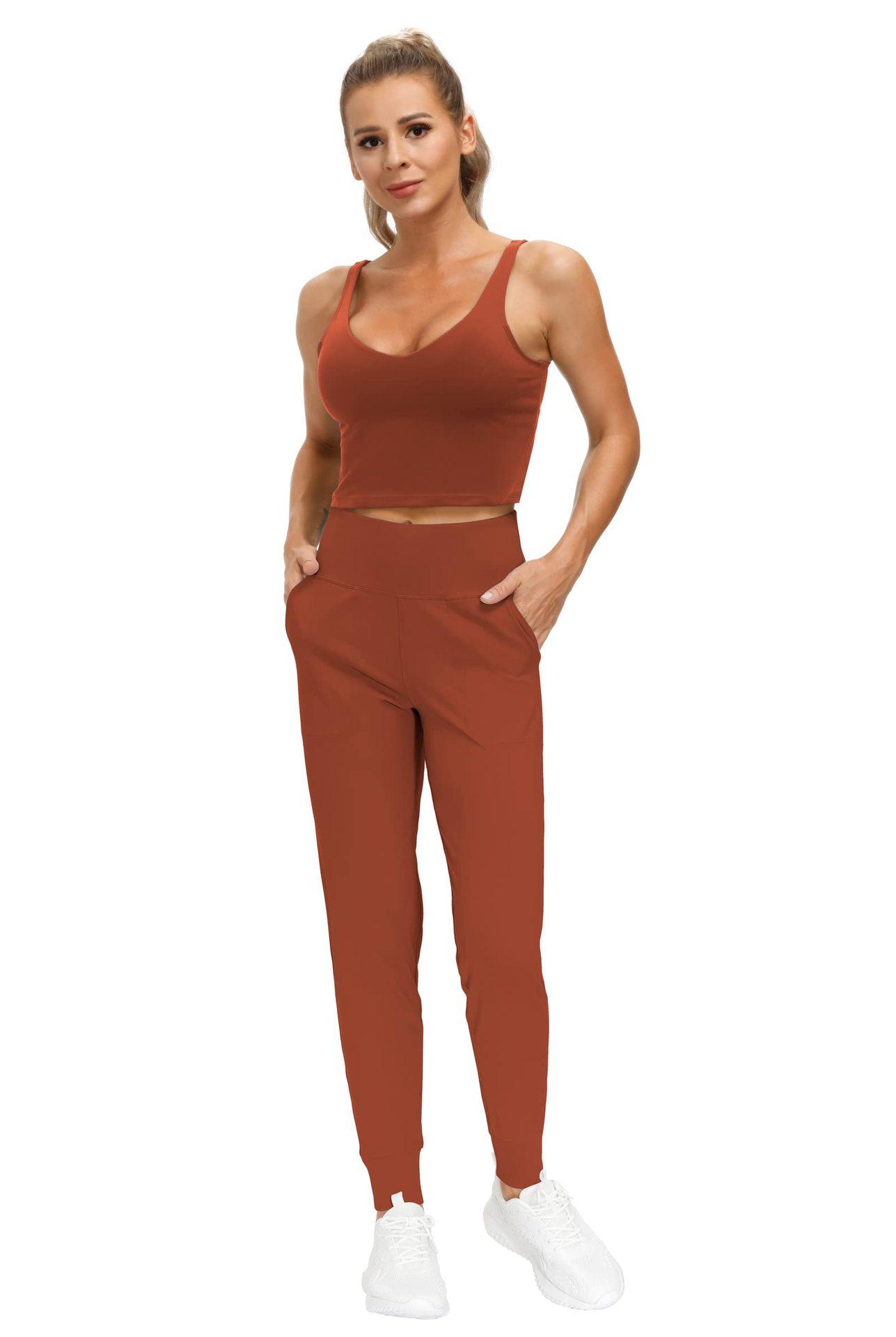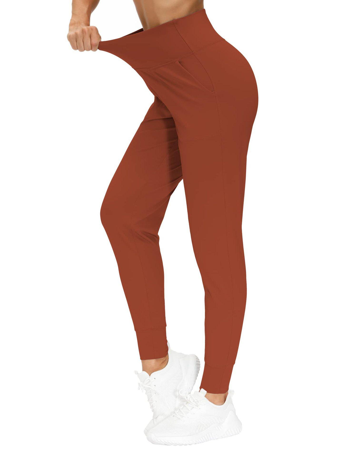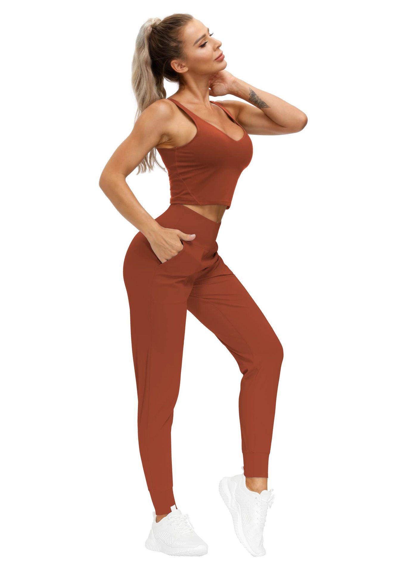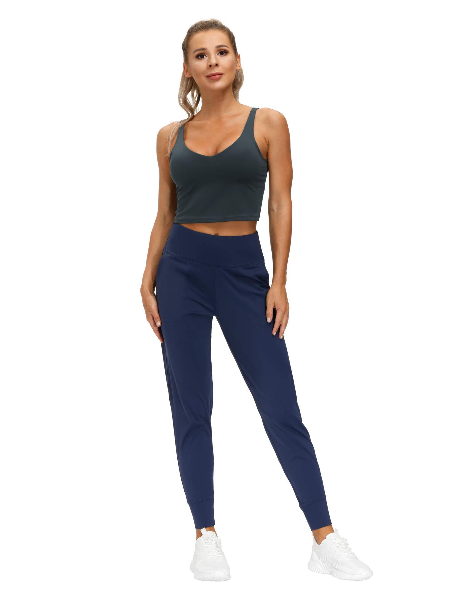 Pantalones de yoga para mujer transfronterizos holgados casuales con bolsillo y tobillo atado cintura alta fitness correr entrenamiento color sólido deportivos