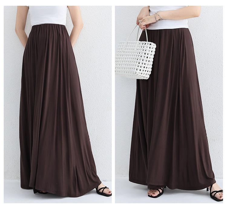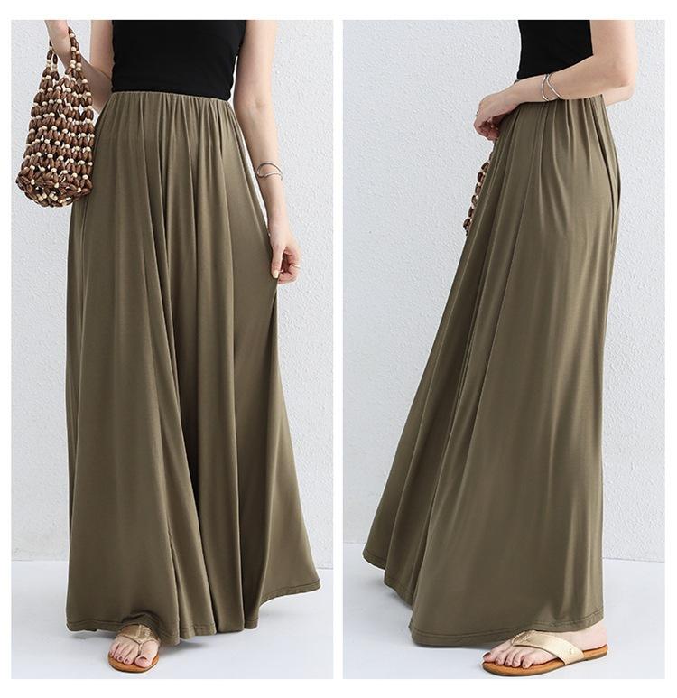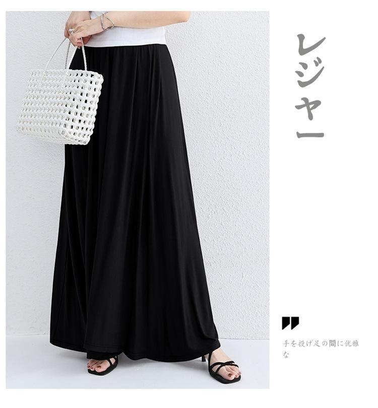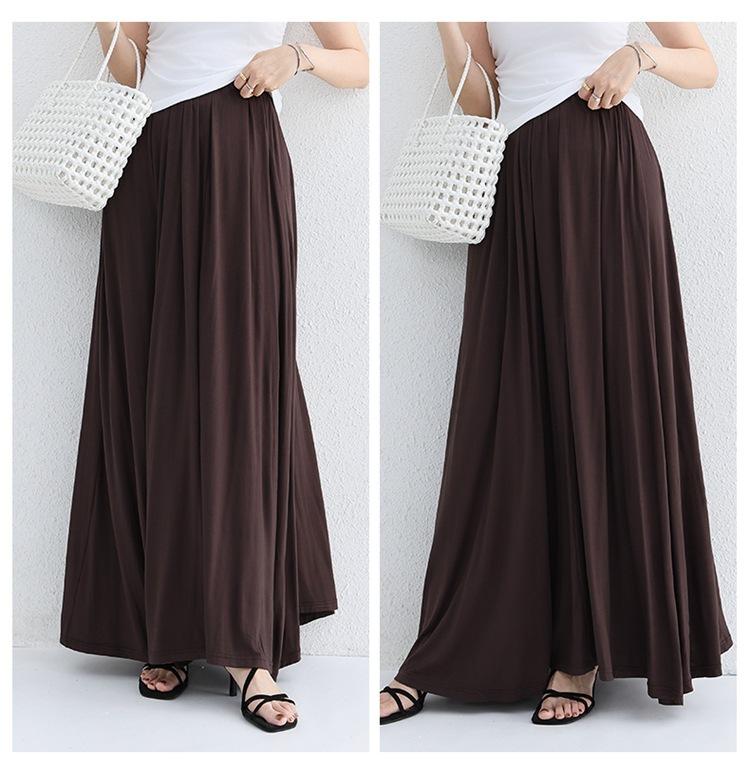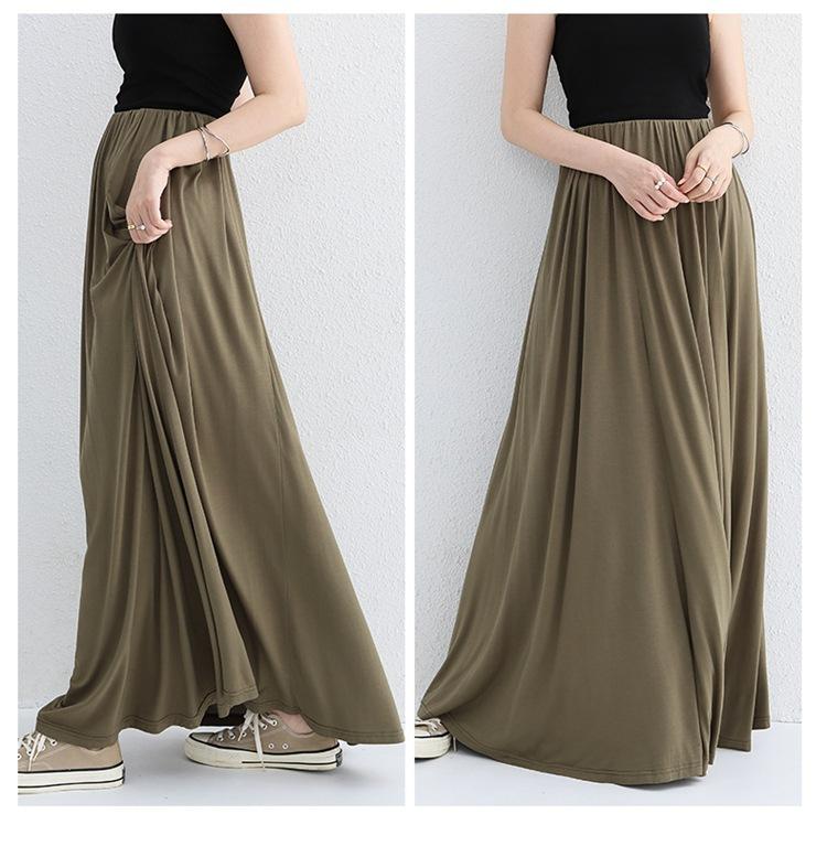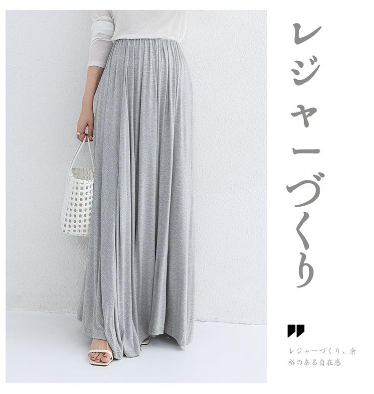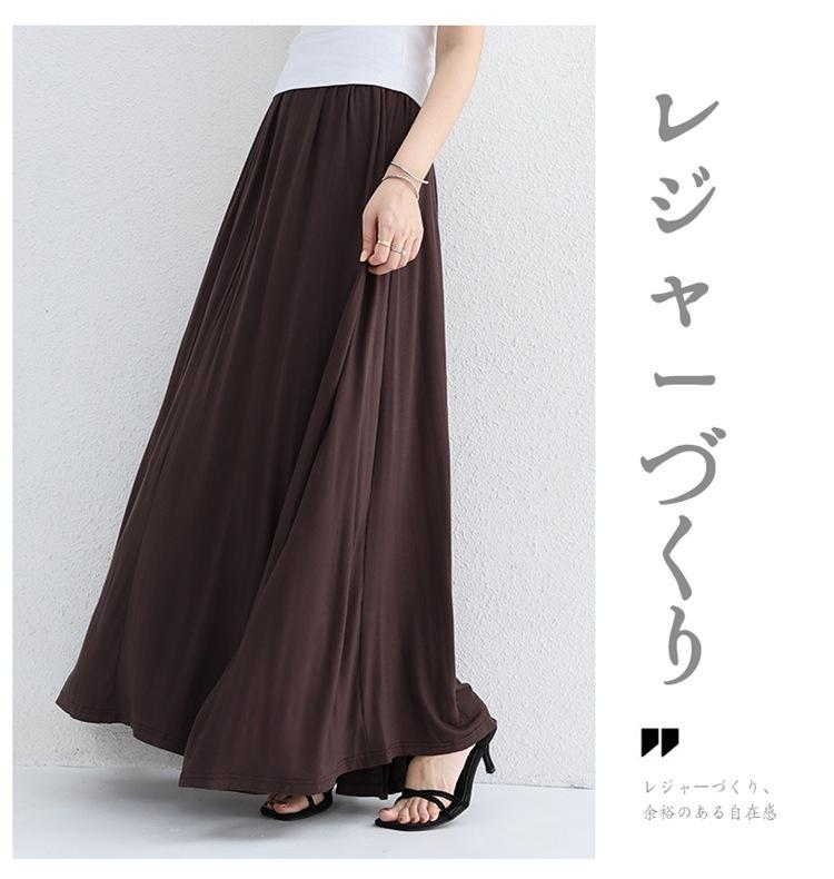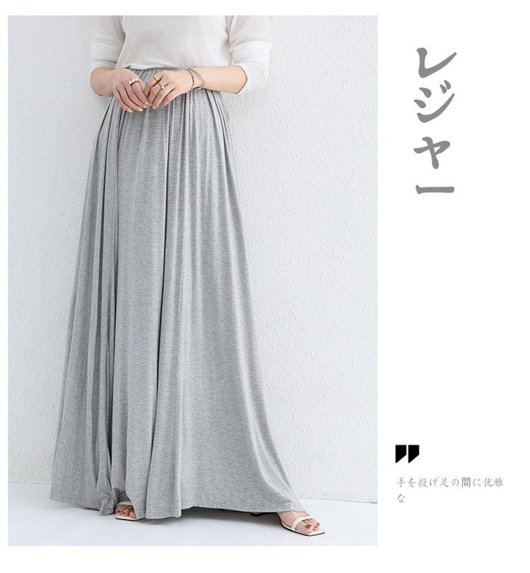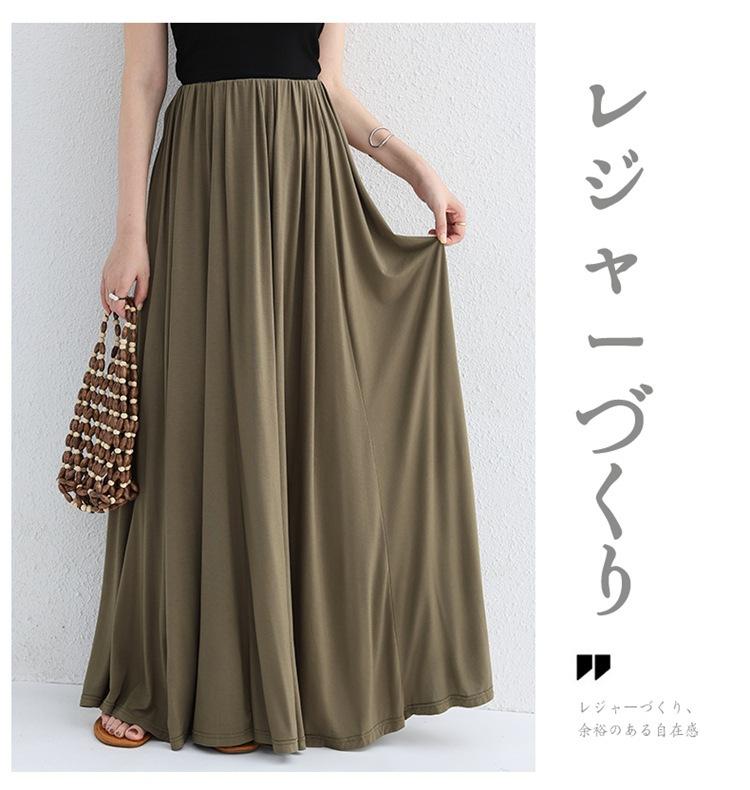 Falda Larga Estilo Japonés Nuevo Modal Retro Cintura Alta Plisada Falda Verano para Mujer Suelta Drapeada Elástica