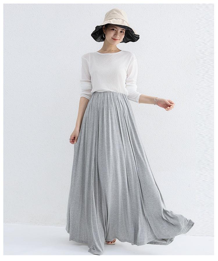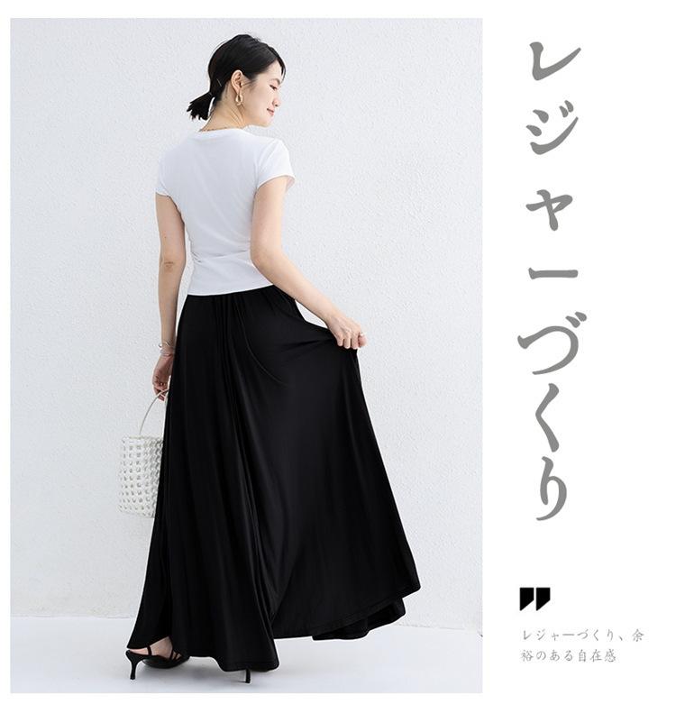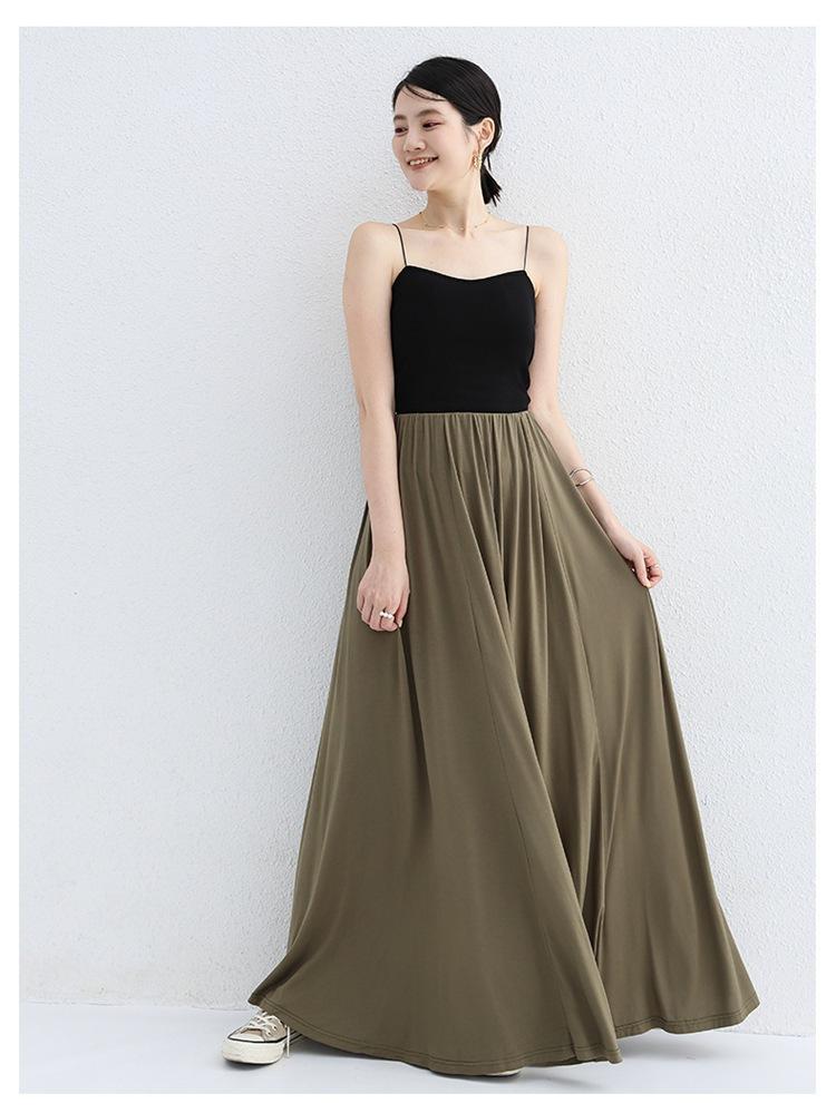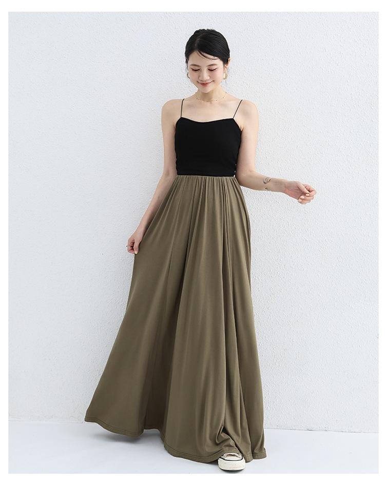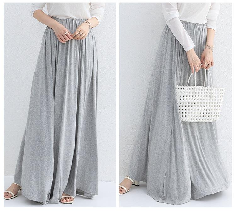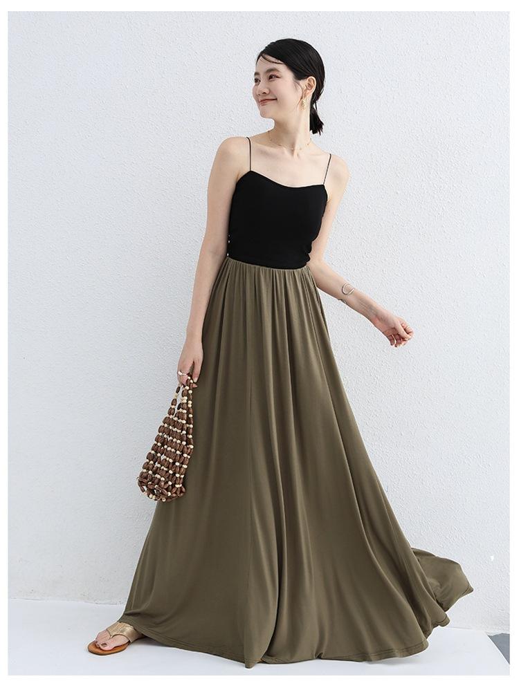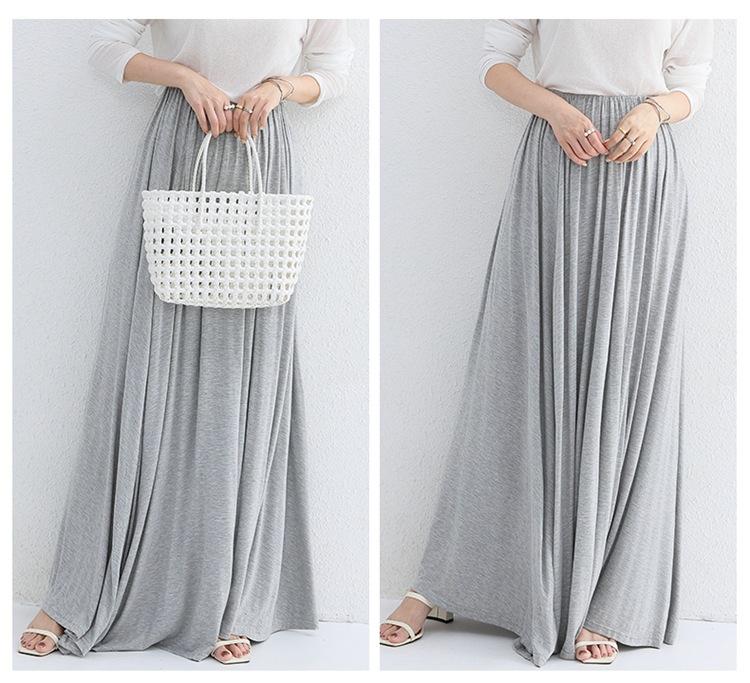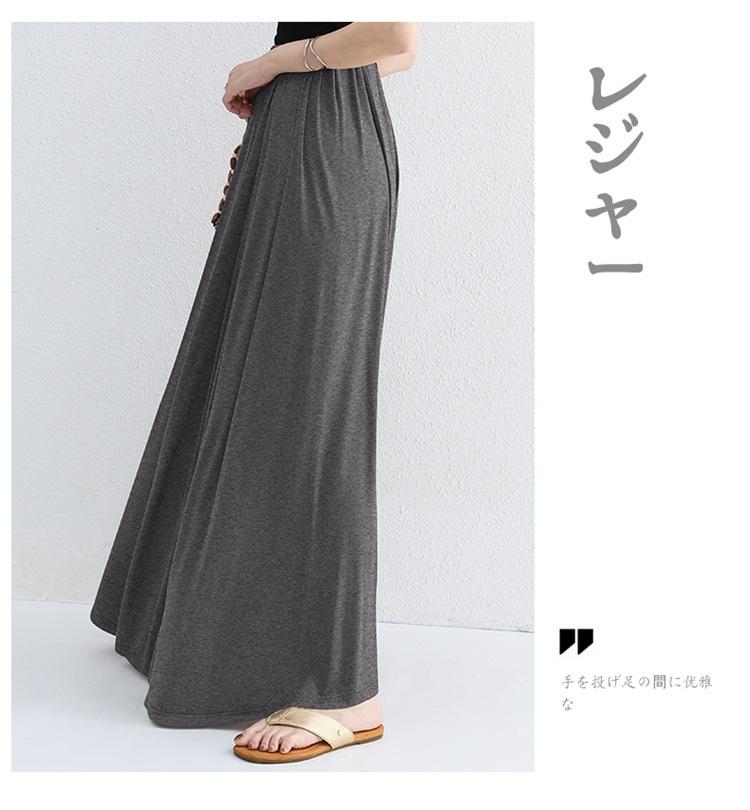 Falda Larga Estilo Japonés Nuevo Modal Retro Cintura Alta Plisada Falda Verano para Mujer Suelta Drapeada Elástica