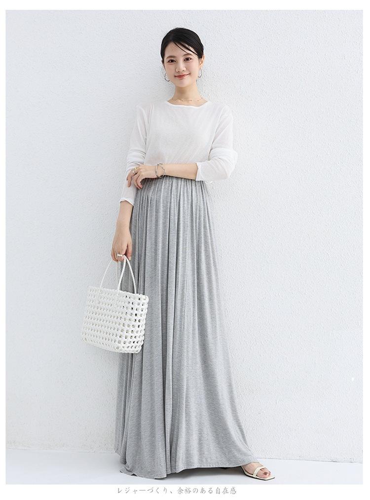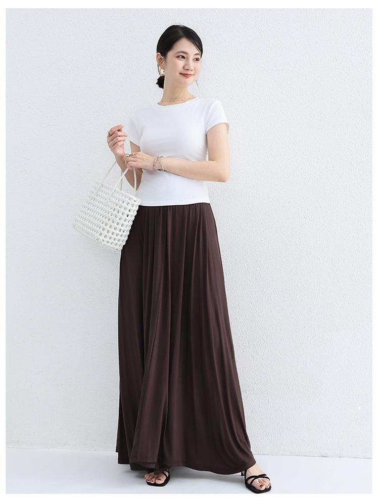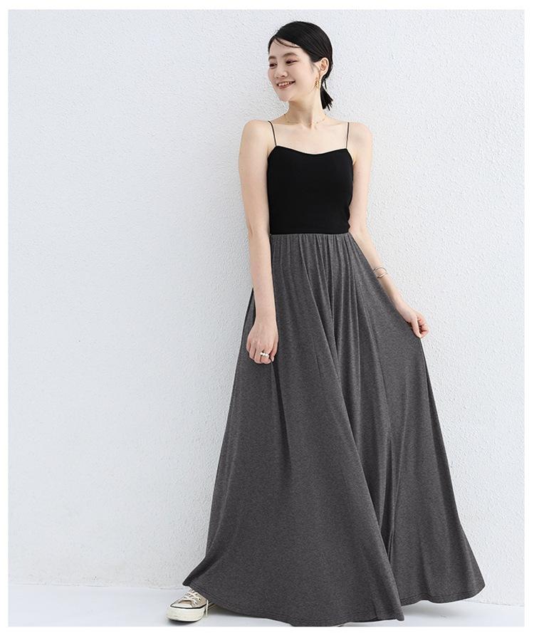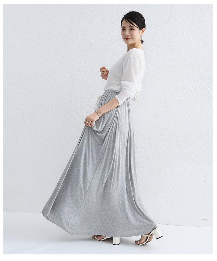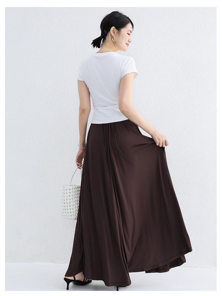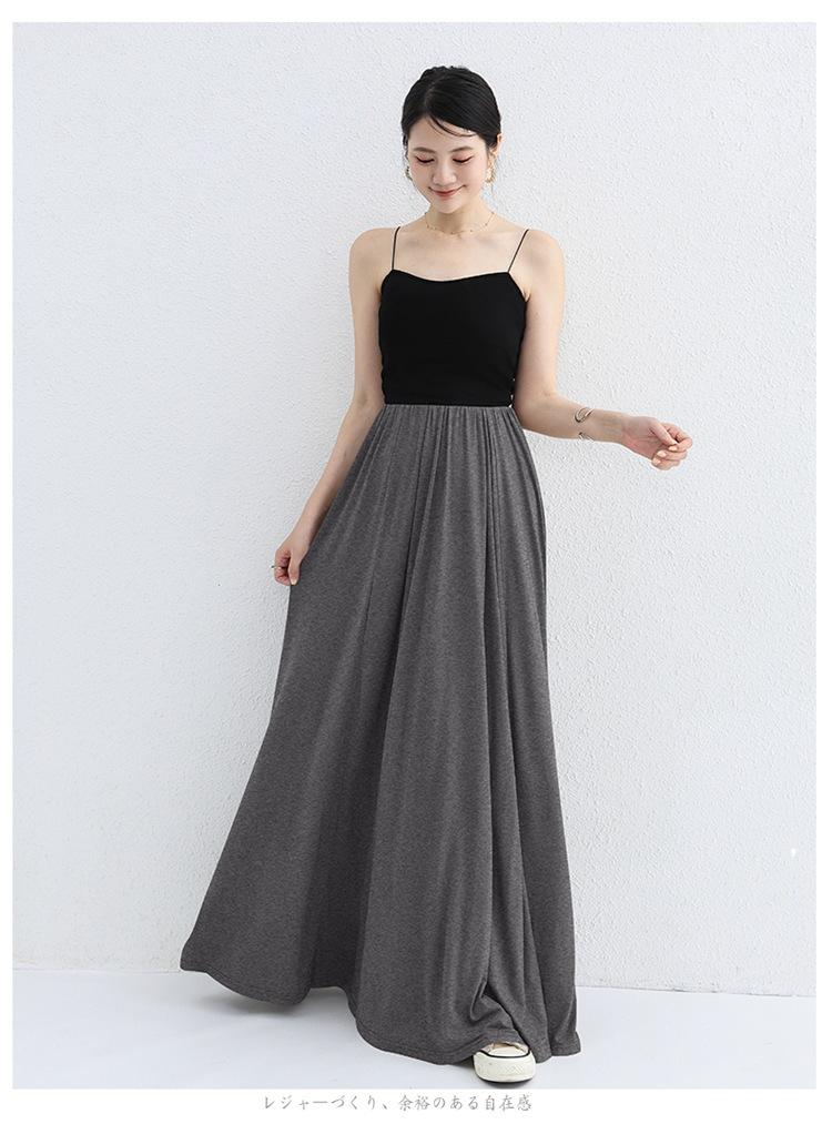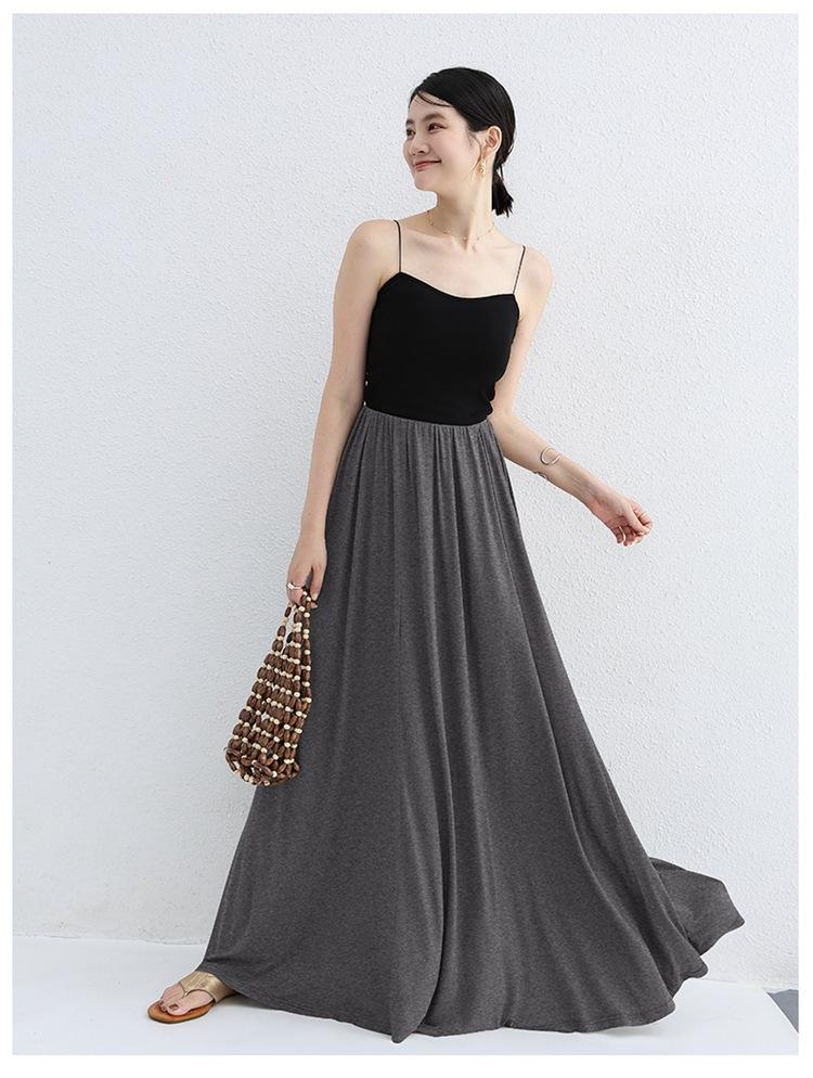 Falda Larga Estilo Japonés Nuevo Modal Retro Cintura Alta Plisada Falda Verano para Mujer Suelta Drapeada Elástica