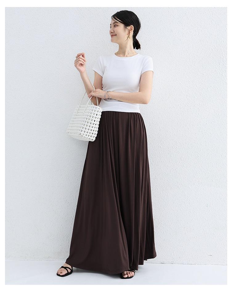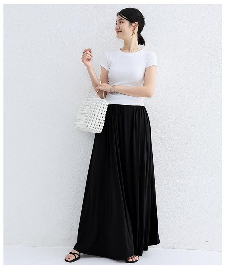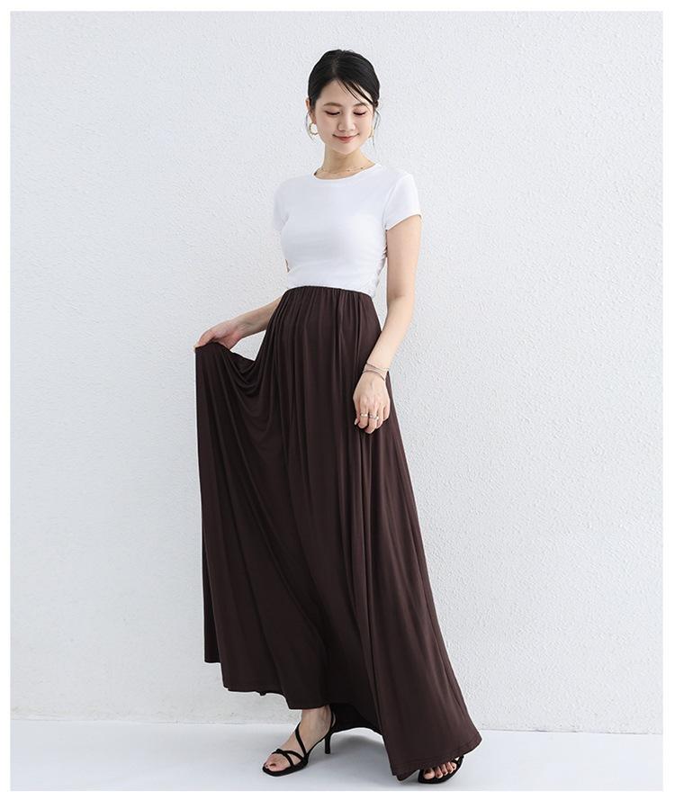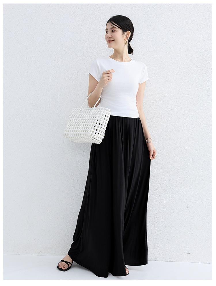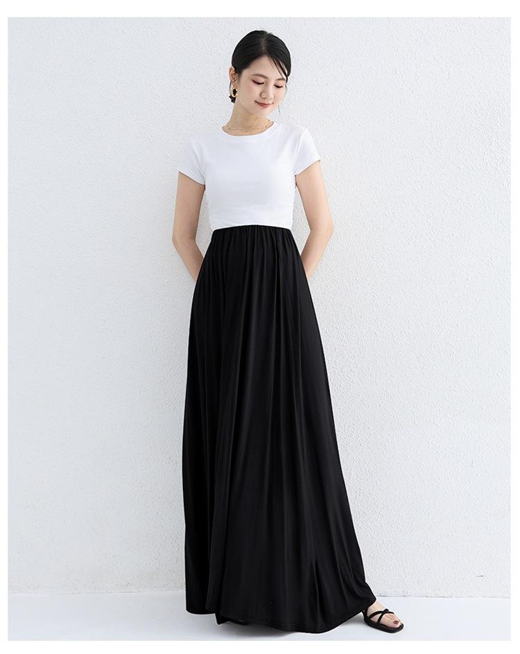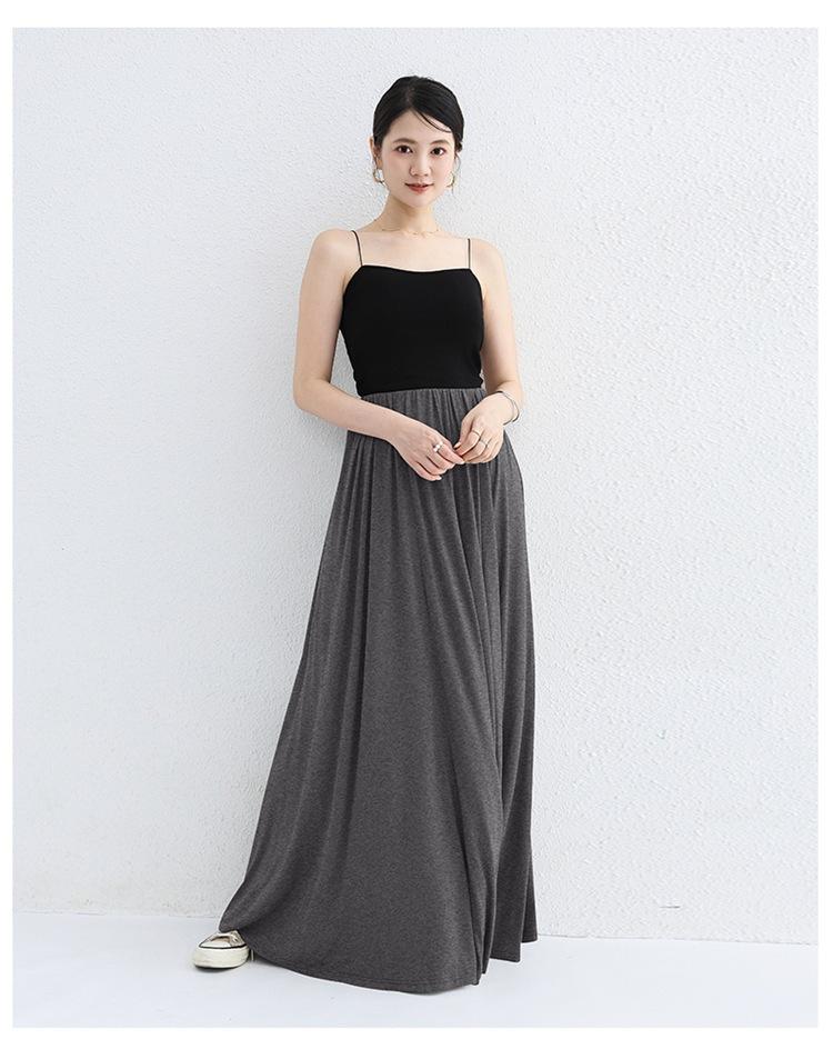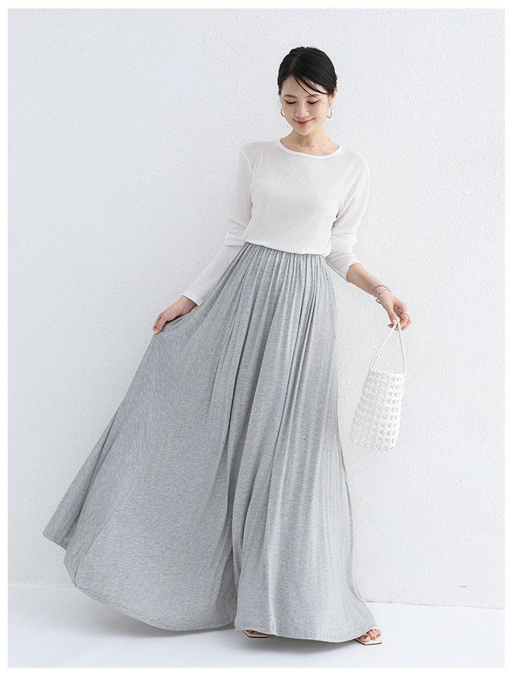 Falda Larga Estilo Japonés Nuevo Modal Retro Cintura Alta Plisada Falda Verano para Mujer Suelta Drapeada Elástica