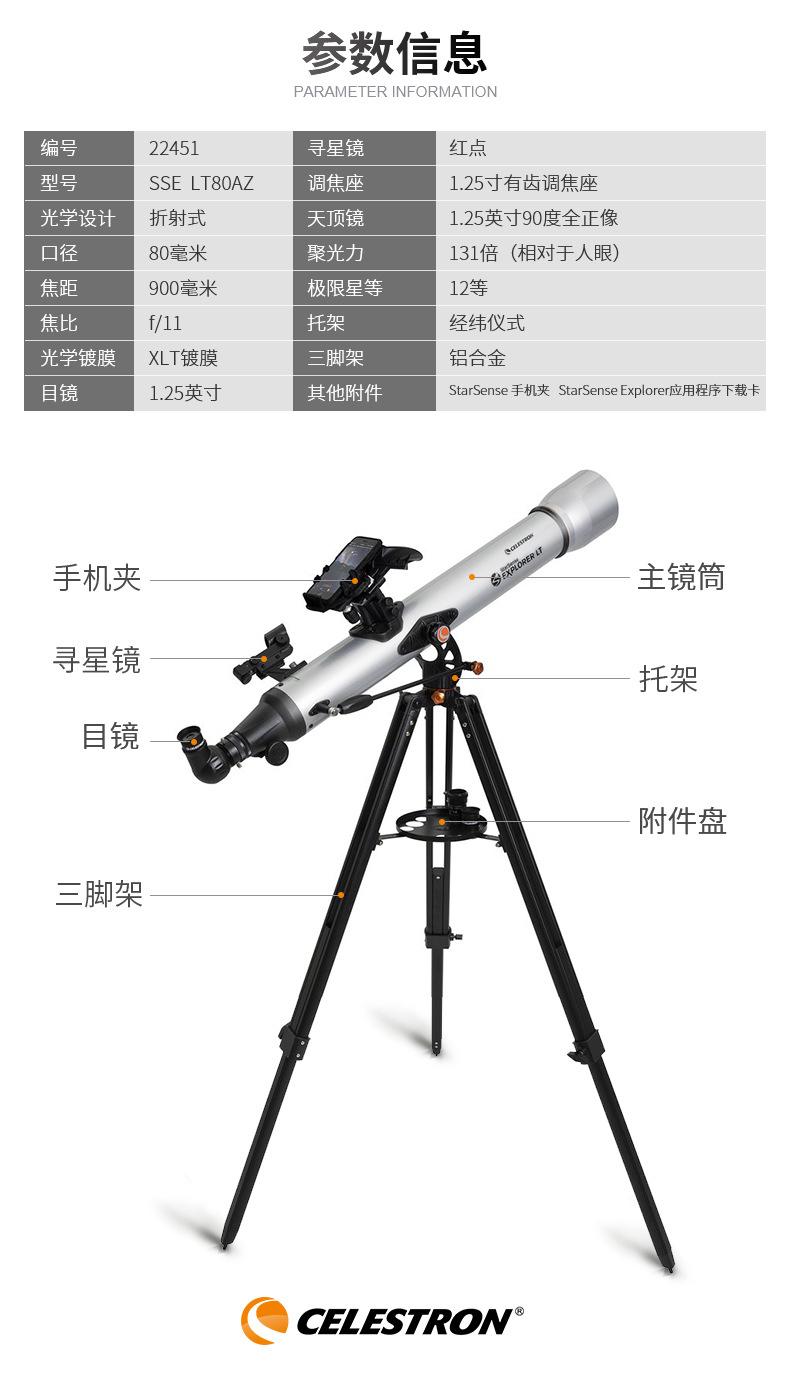 Telescopio astronómico Celestron serie SSE LT80AZ observación de estrellas niños estudiante nivel de entrada alta potencia observación del cielo