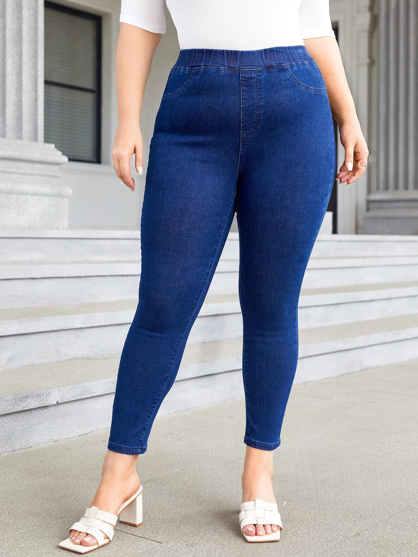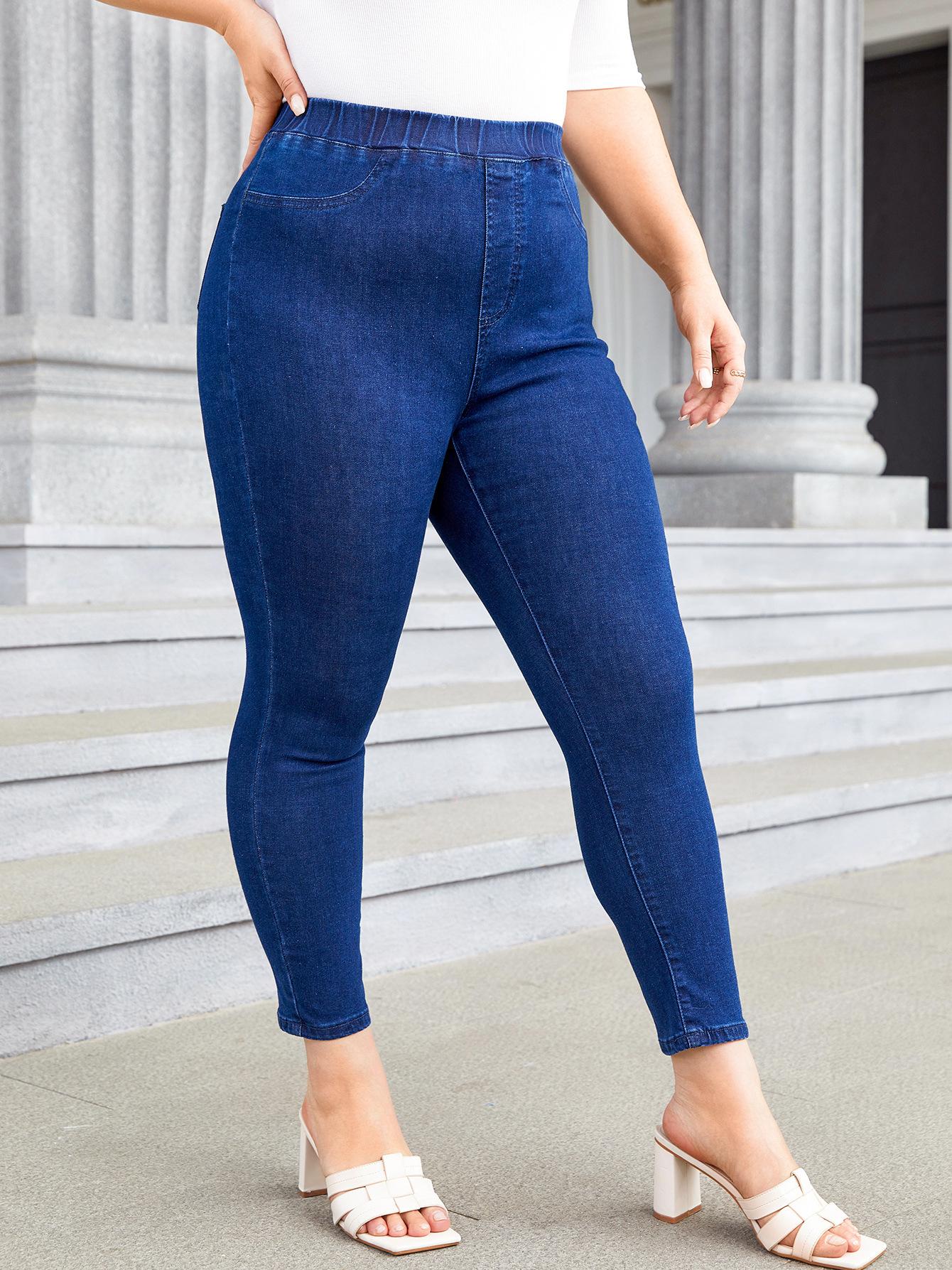 Pantalones Skinny Crop de Mezclilla de Talla Grande Europeos y Americanos con Cintura Elástica y Alta Elasticidad de Temu, Amazon y Shein
