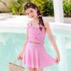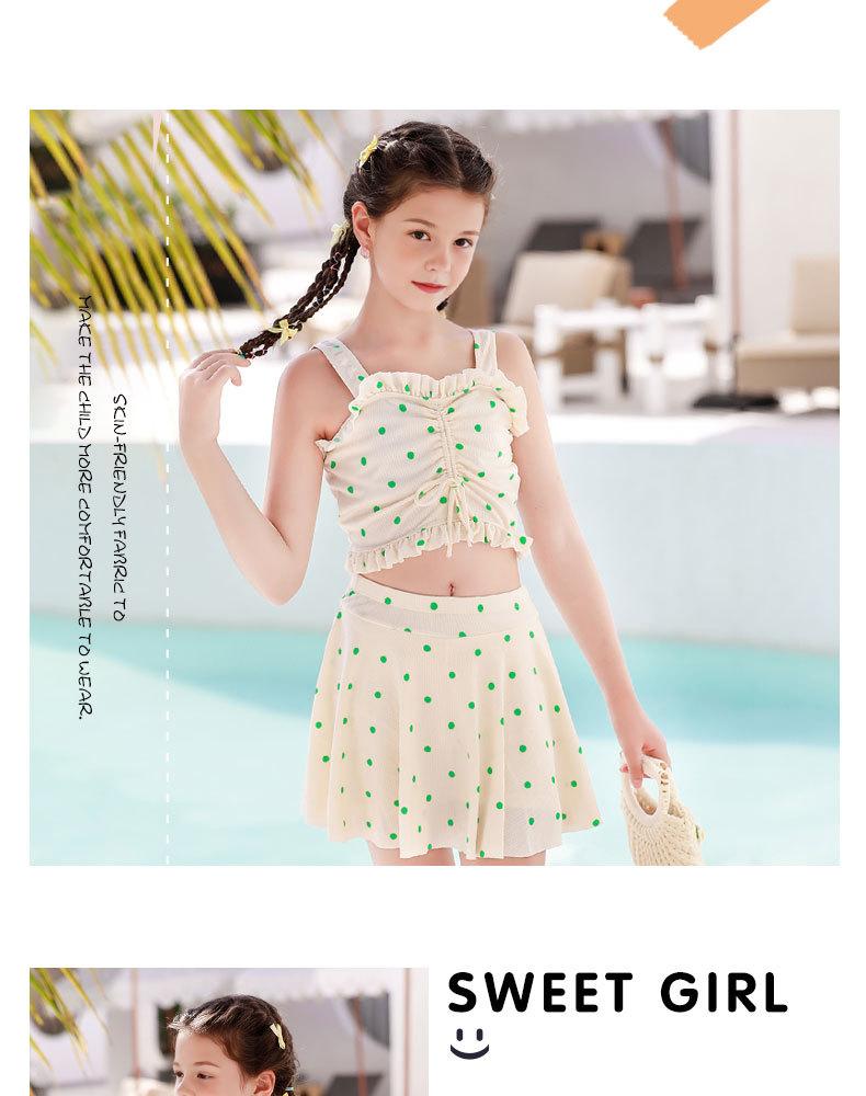 Trajes de baño para niñas, nuevos trajes de baño para niñas grandes, lindos trajes de baño de vacaciones con estampado de lunares y falda dividida