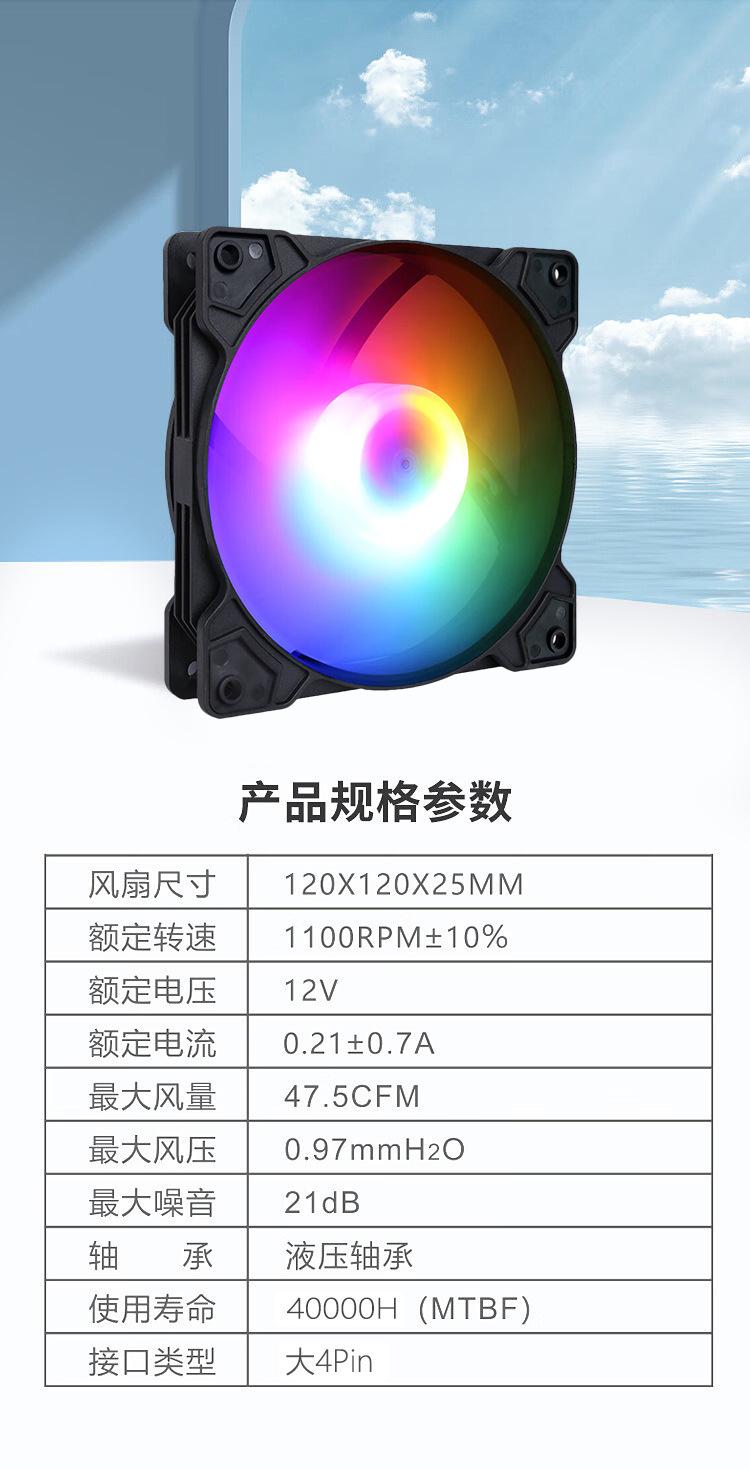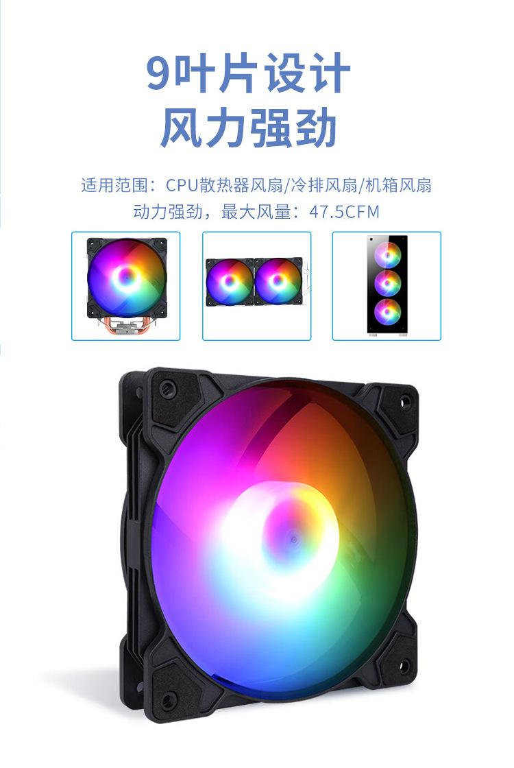 Ventilador de refrigeración para caja de computadora de escritorio de 12 cm, 9 aspas, viento fuerte, silencioso, bajo ruido, luminoso colorido