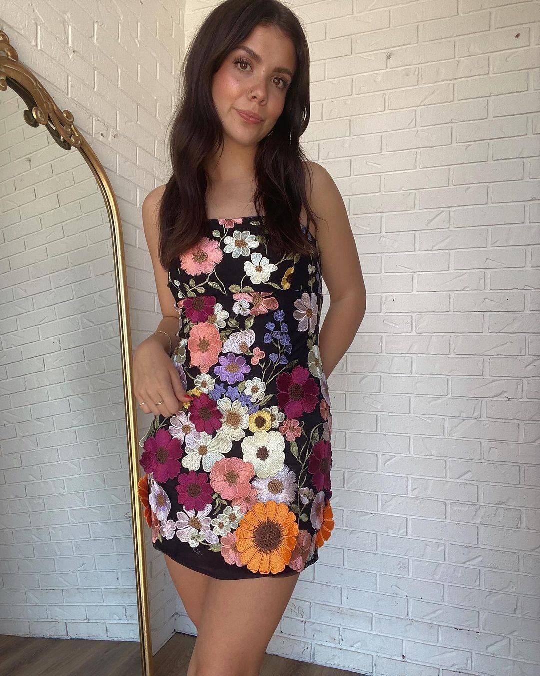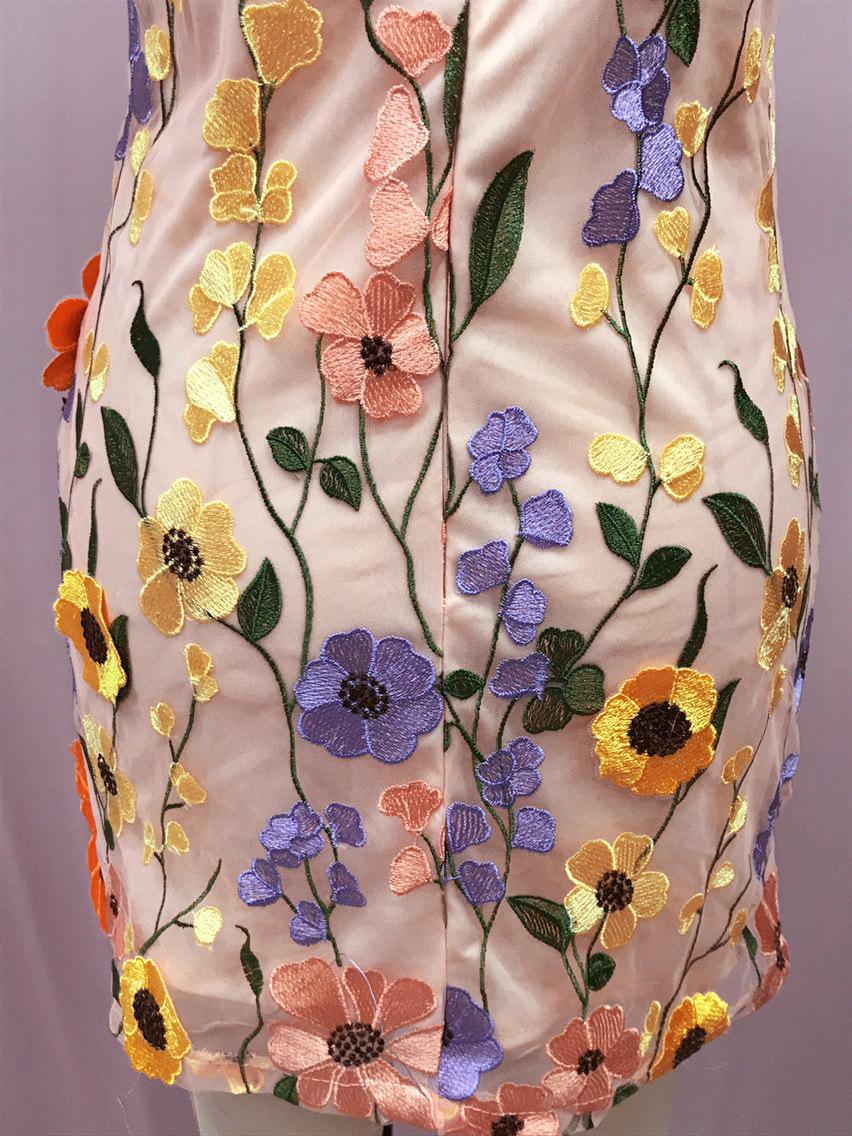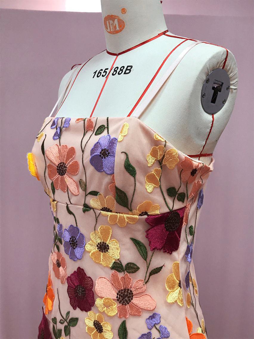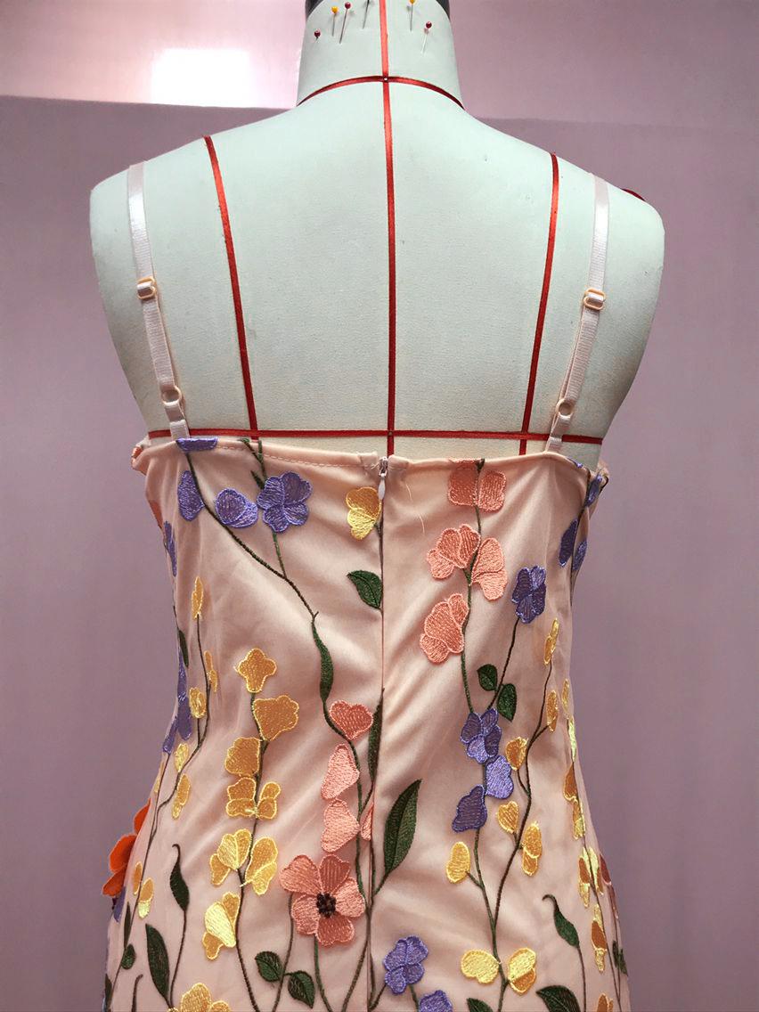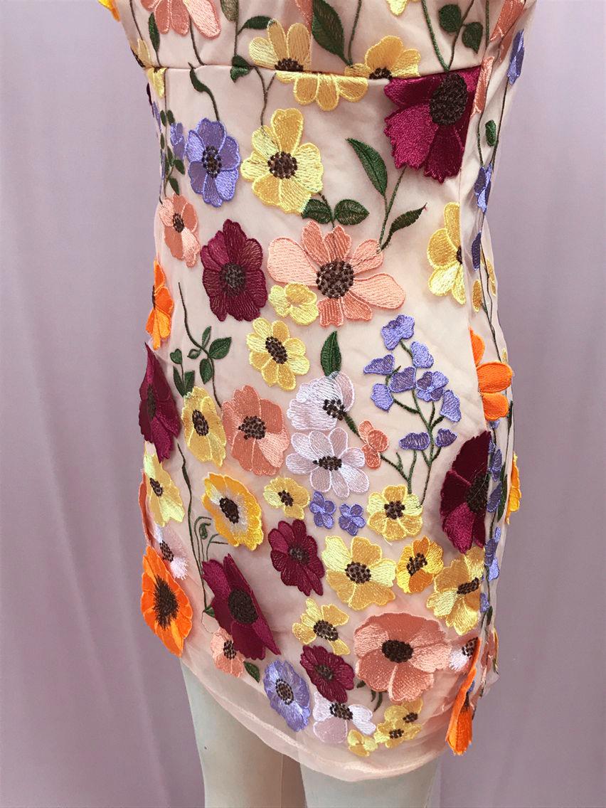 Vestido Elegante de Nuevo Estilo Primavera 2025 con Flores Estéreo, Empalme de Malla, Bordado Pesado, Tirantes, Falda Corta