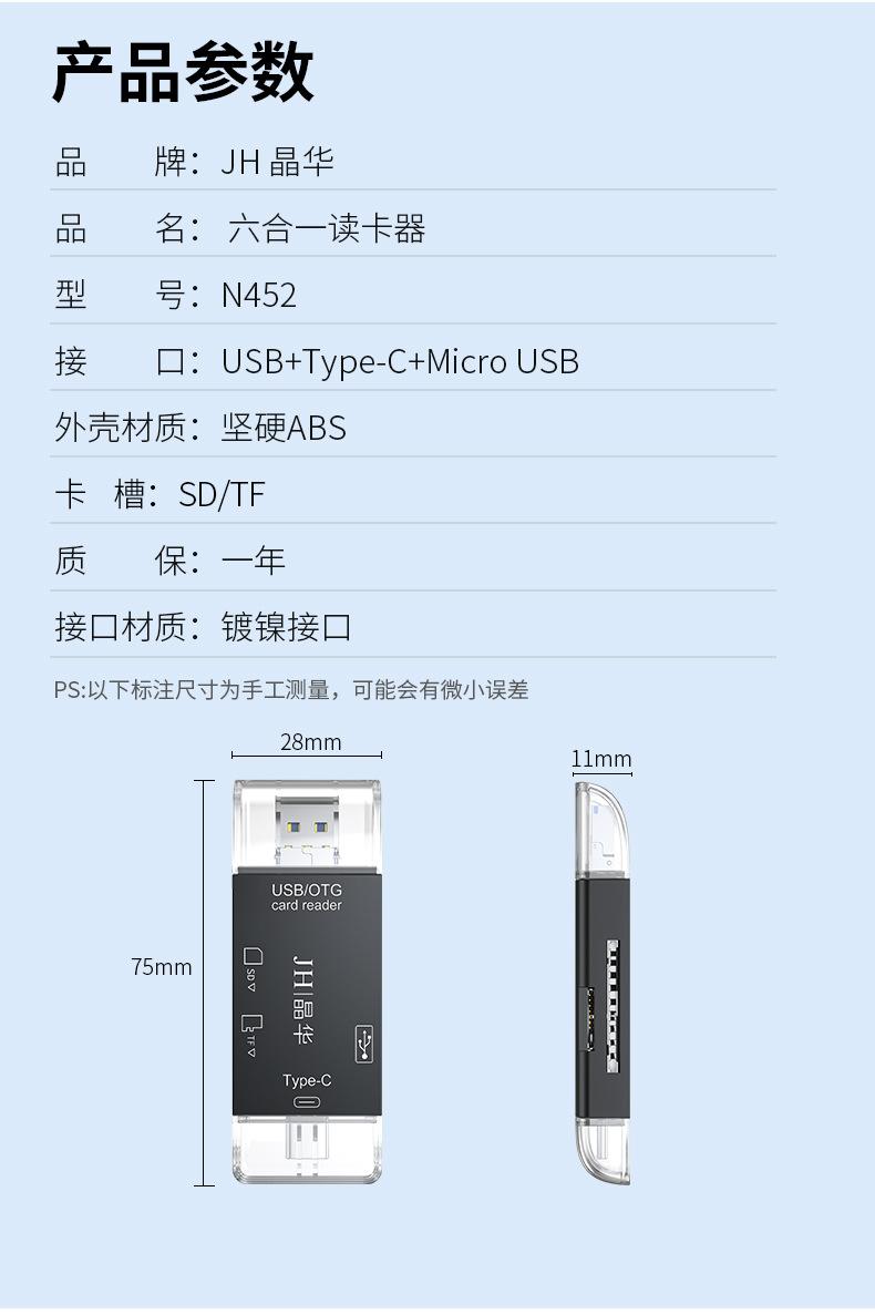 Lector de Tarjetas USB 2.0 Android Tipo-C Teléfono Móvil Computadora Otg 2.0 SD/TF Seis-En-Uno Lector de Tarjetas Multifunción