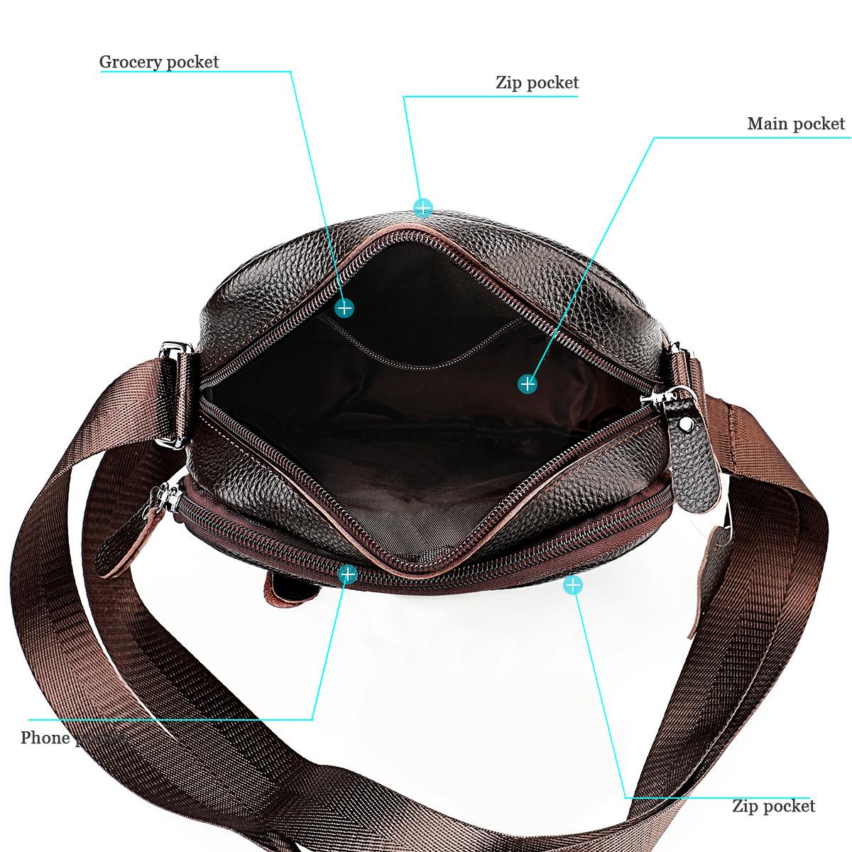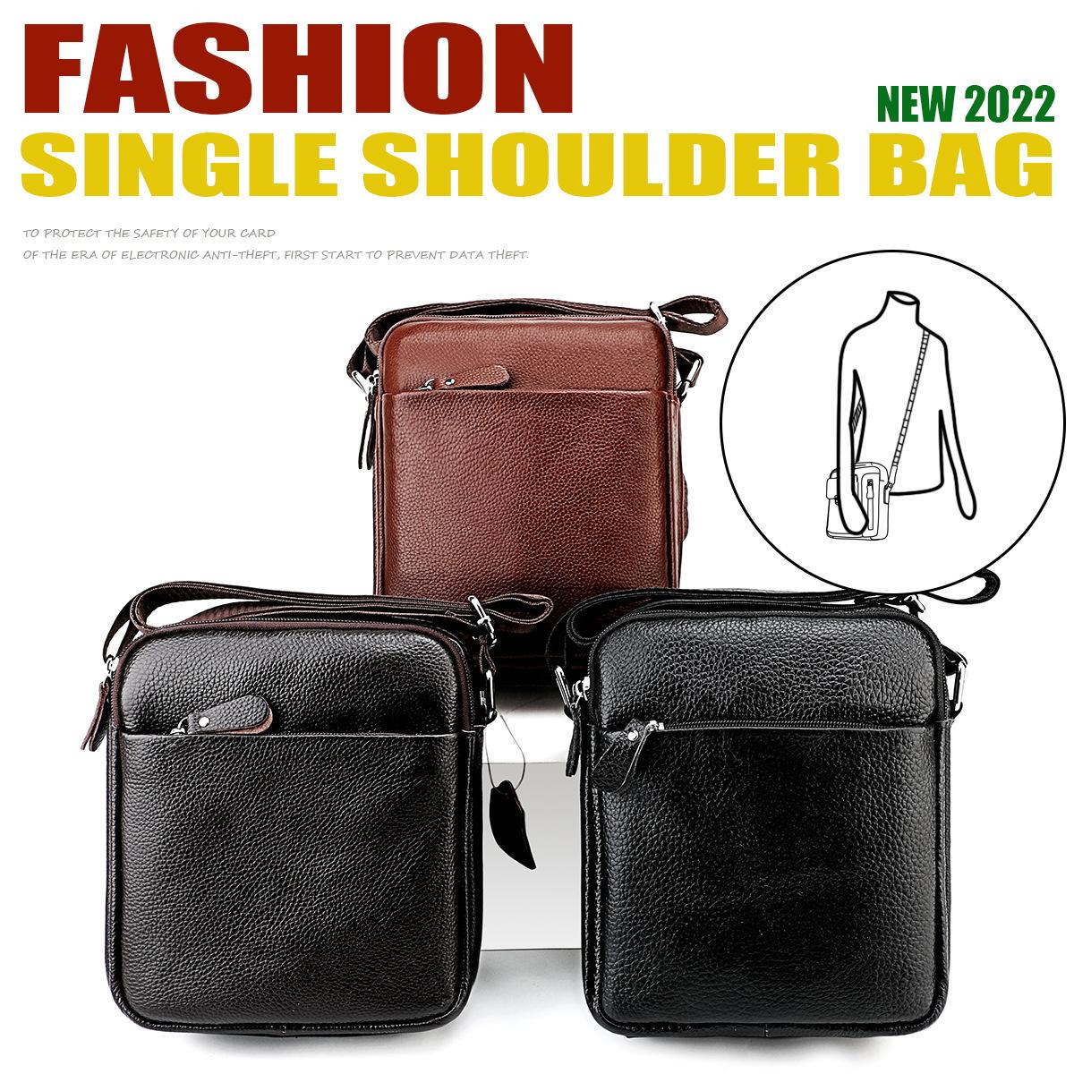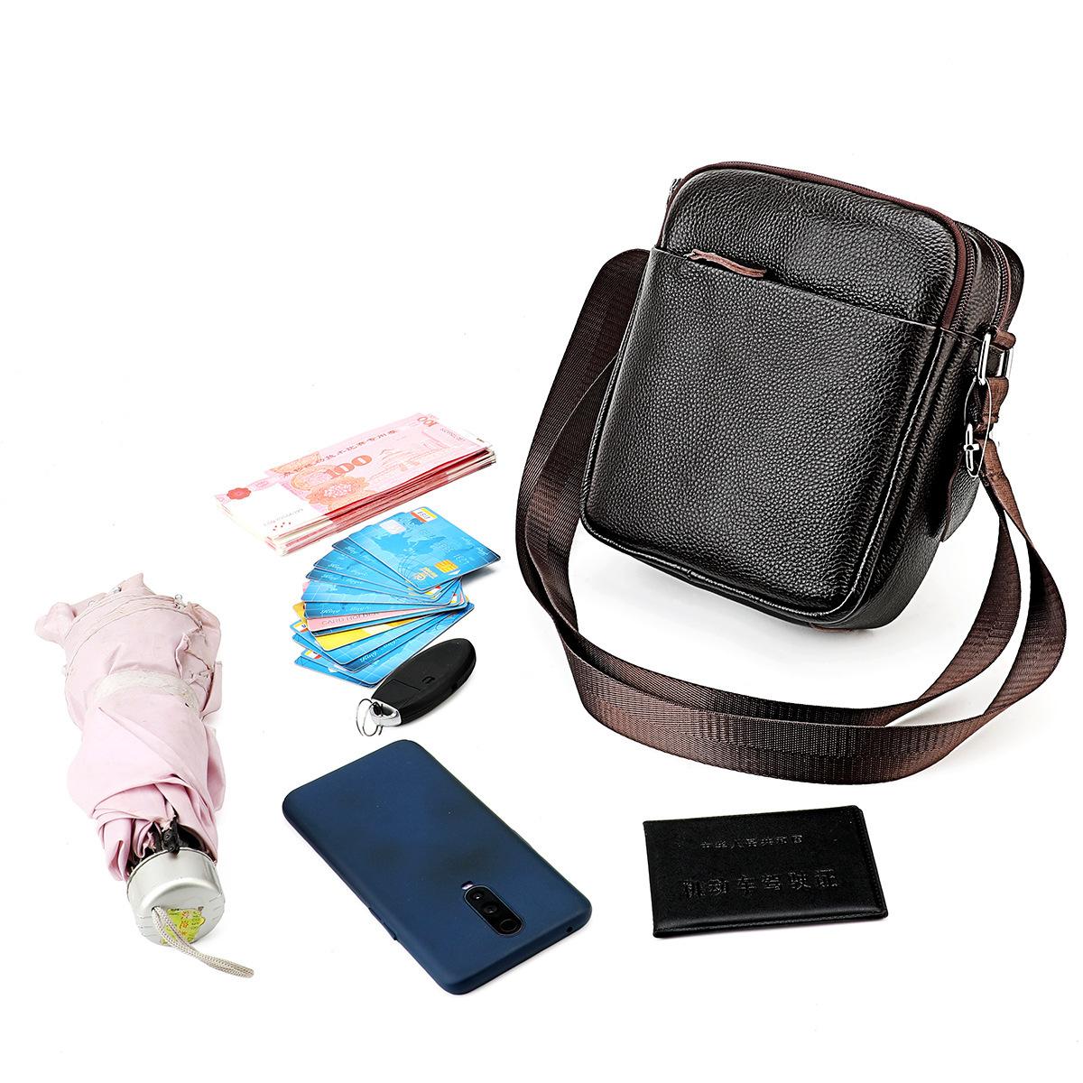 Bolso cruzado de piel auténtica para hombre, nuevo, informal, de viaje, de piel de vaca, de gran capacidad, multifuncional.
