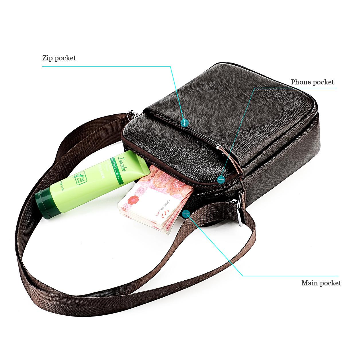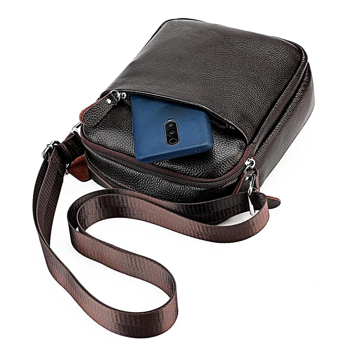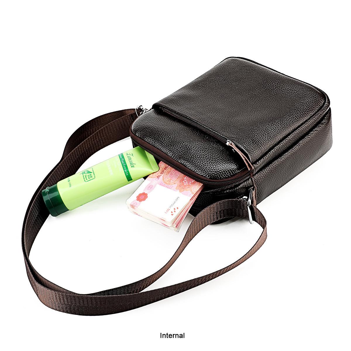 Bolso cruzado de piel auténtica para hombre, nuevo, informal, de viaje, de piel de vaca, de gran capacidad, multifuncional.