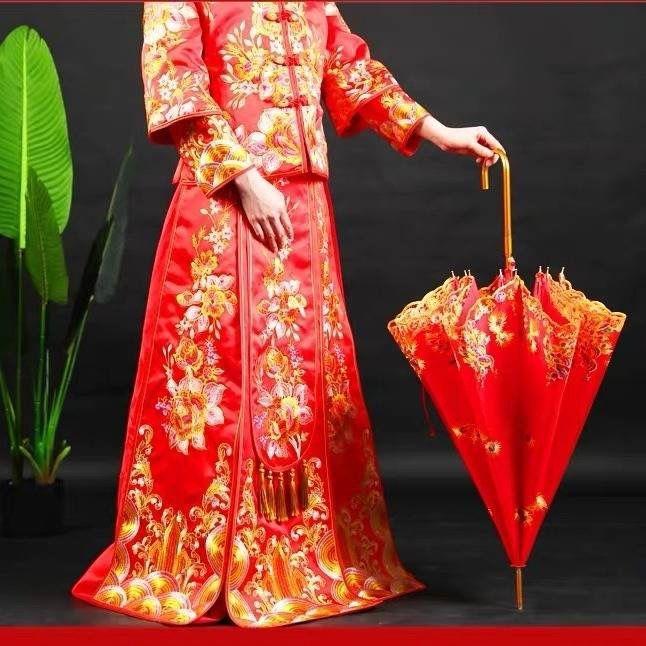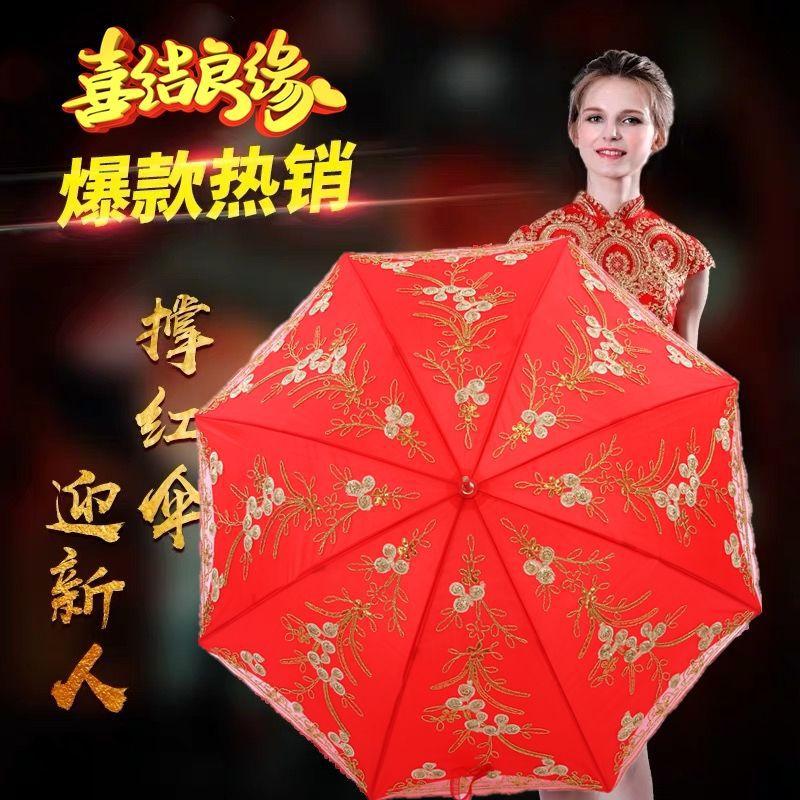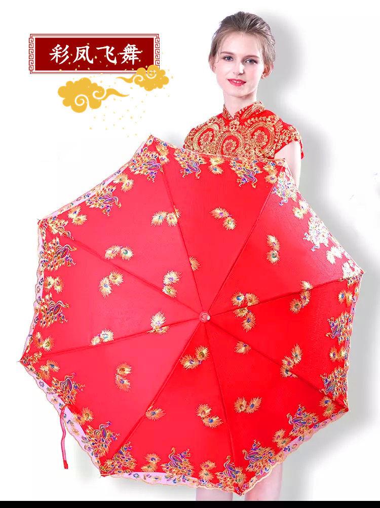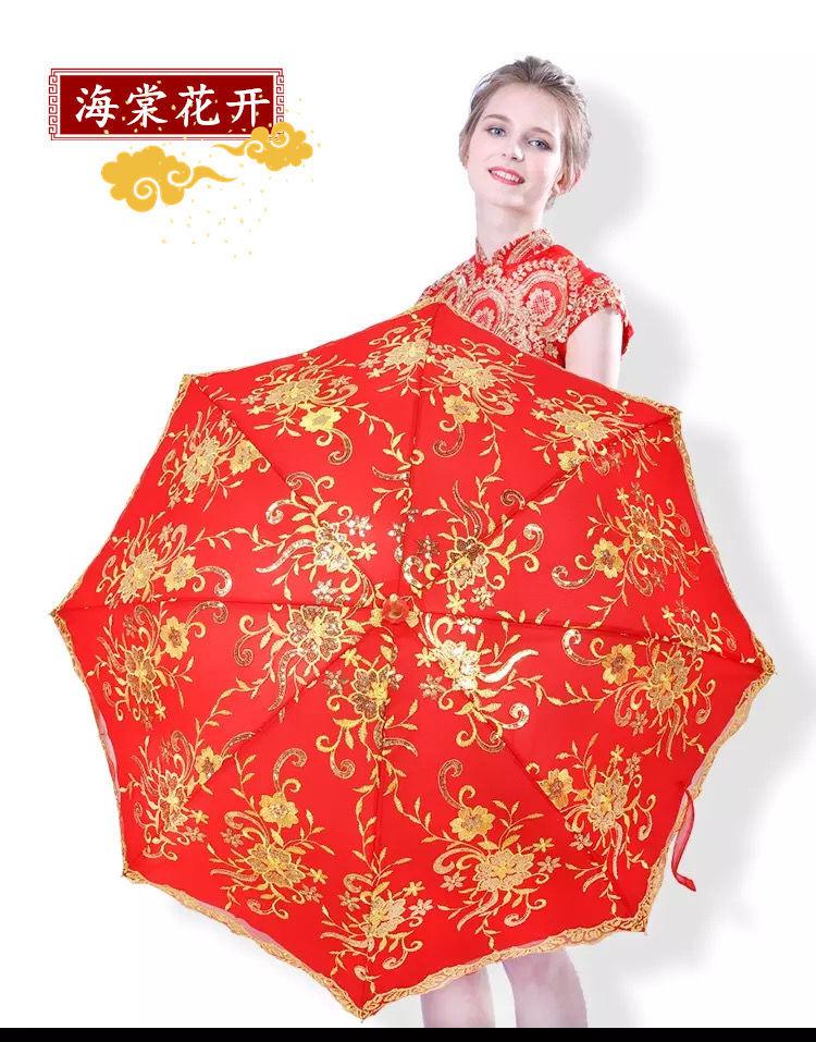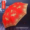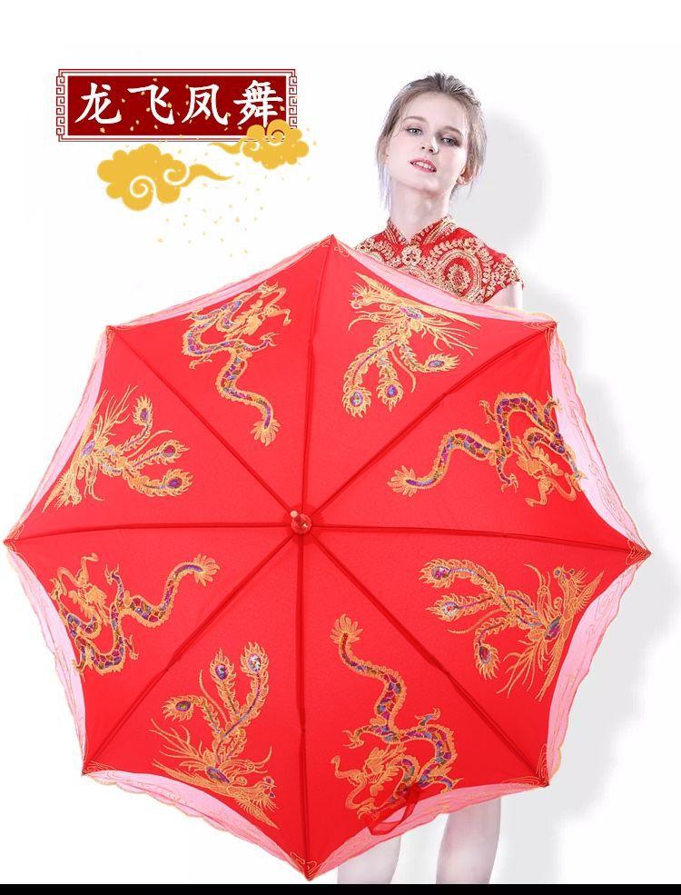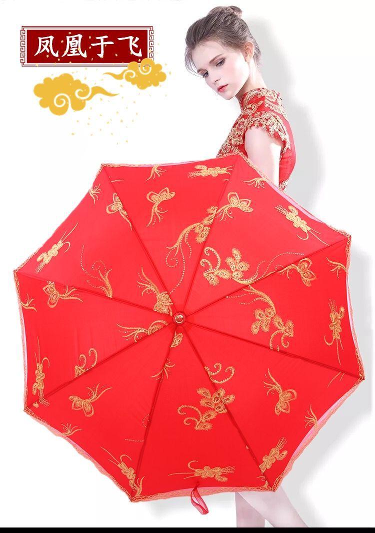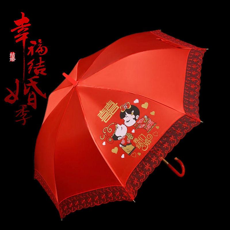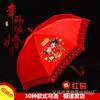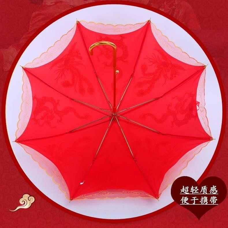 Paraguas Nupcial Paraguas de Boda para Novia, Paraguas Rojo con Encaje y Mango Largo, Paraguas para Lluvia de Boda, Plegable y Portátil