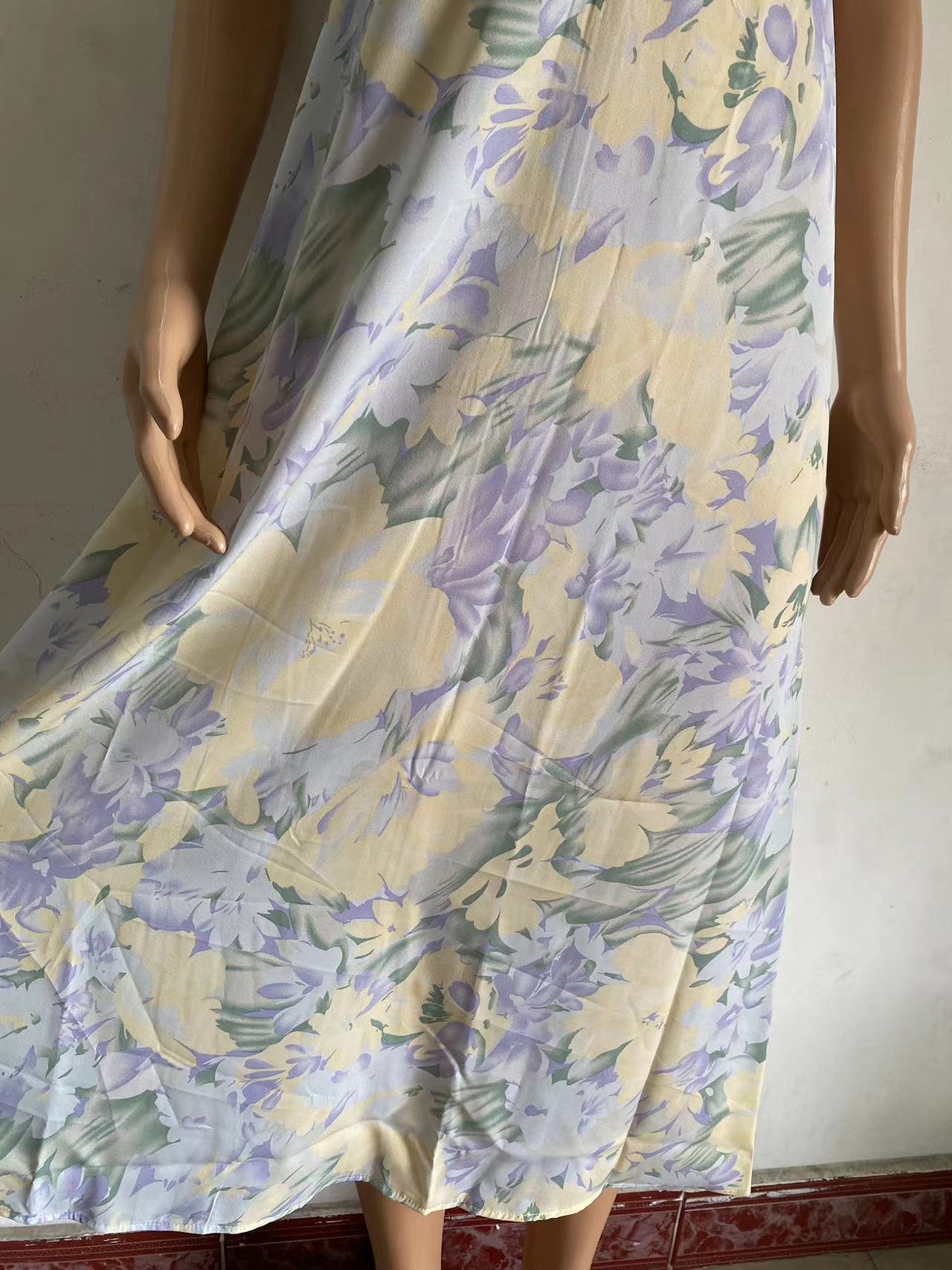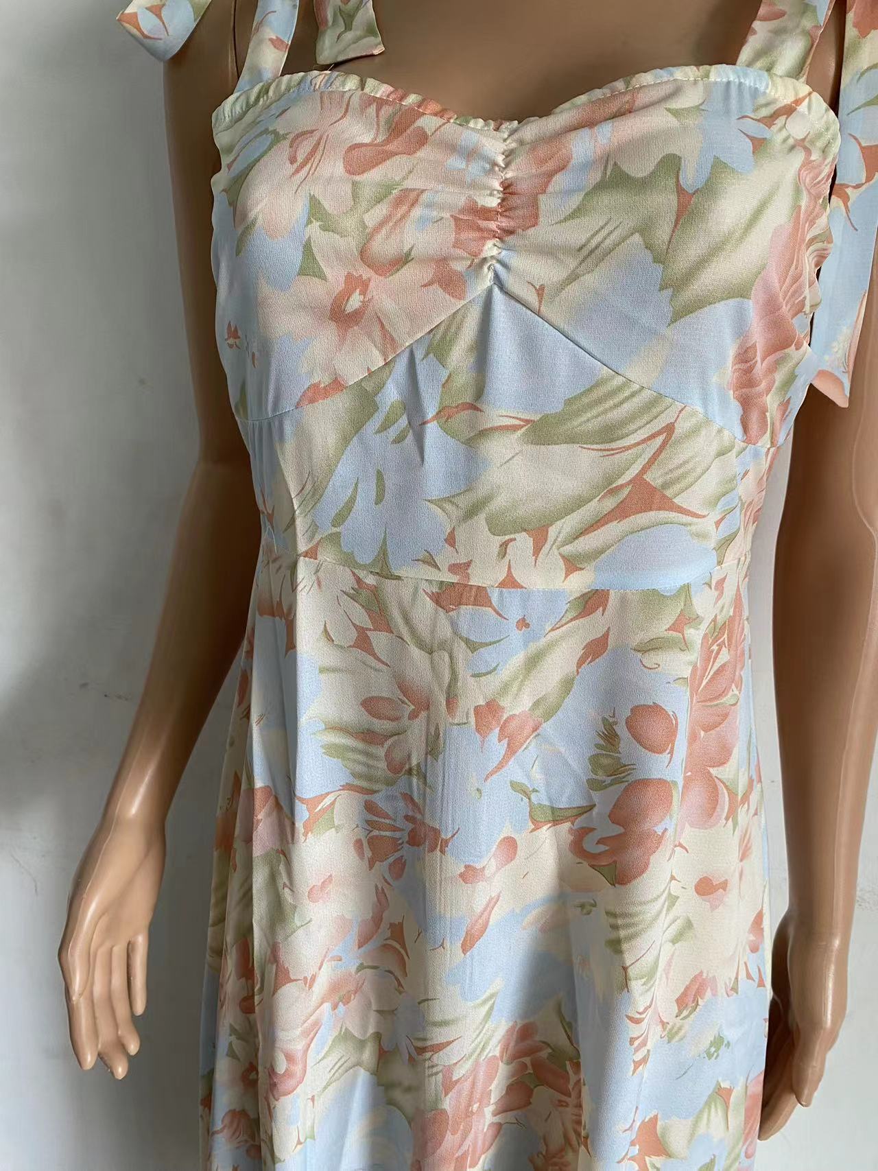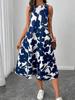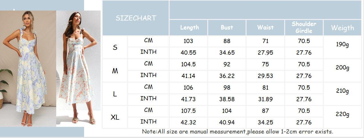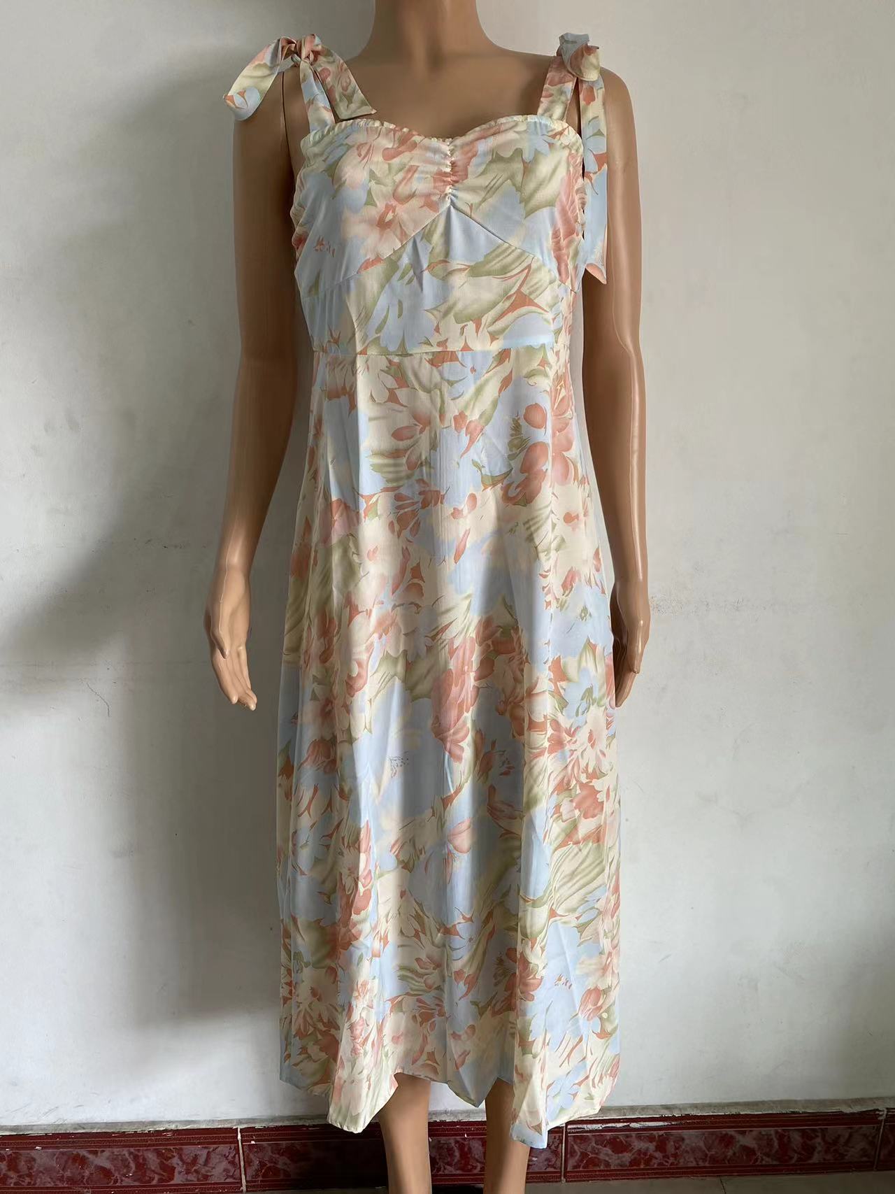 Exportación Transfronteriza Amazon 2024 Verano Look Adelgazante Cintura Cuello en V Tirantes Estampado Vestido Midi para Mujer