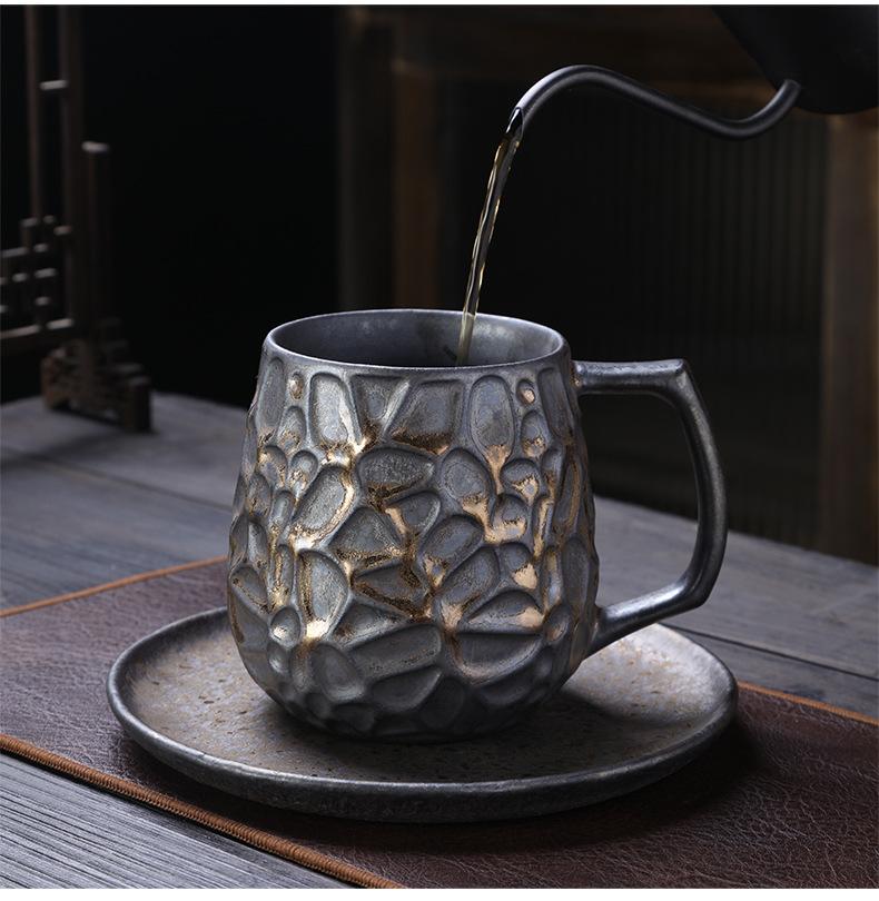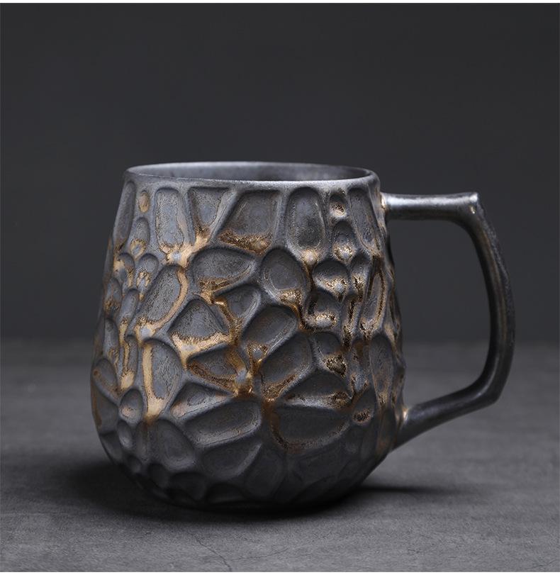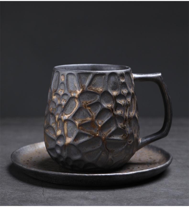 Taza de cerámica de gran capacidad, taza de café de gres vintage, diseño de taza de café con leche exquisita de alta calidad, taza de nicho