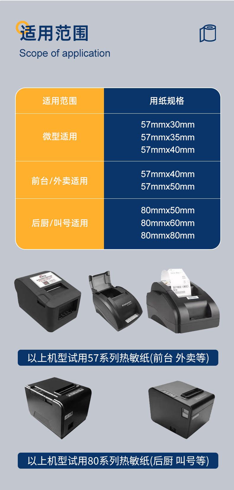 Papel térmico al por mayor 80x80 para supermercados, catering, papel térmico para caja registradora, papel de impresión, papel para recibos Meituan Takeaway 57x50