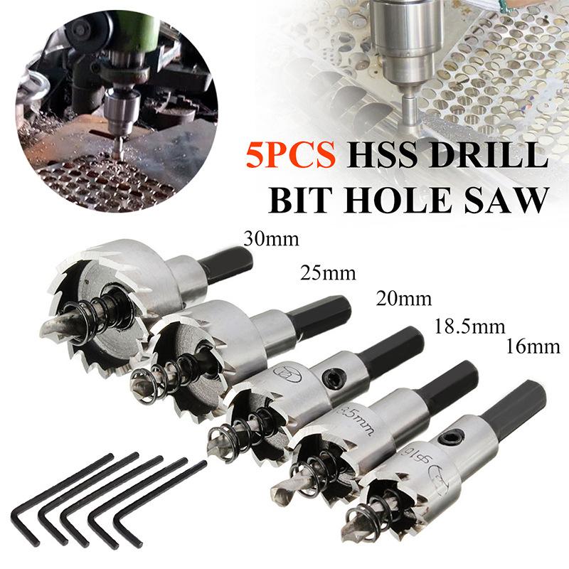 5-piece set of 16-30mm gold high-speed steel hole opener, 5-piece set of 16-30mm silver high-speed steel hole ...