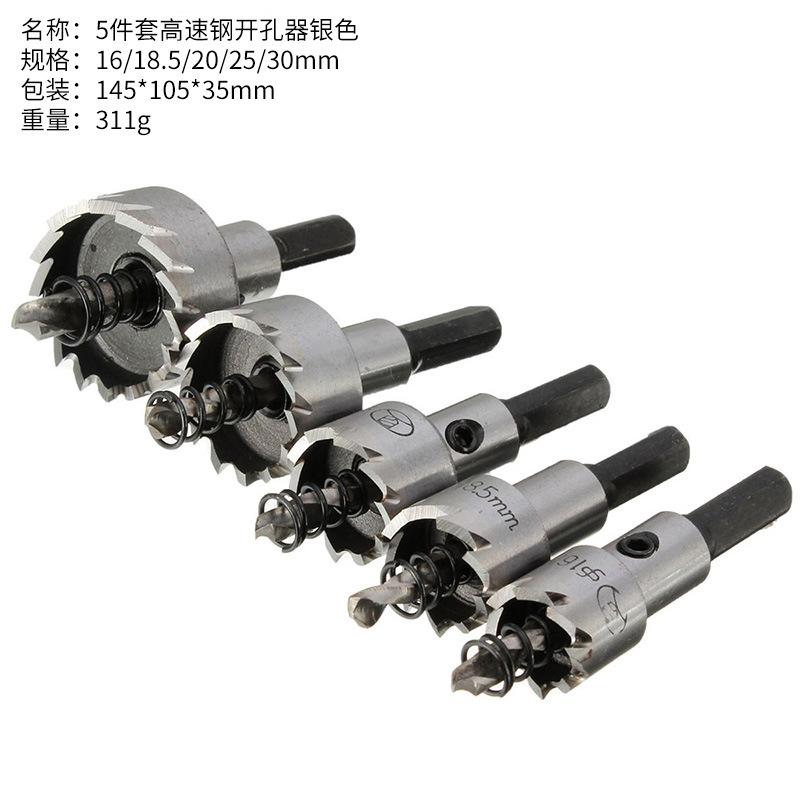 5-piece set of 16-30mm silver high-speed steel hole opener