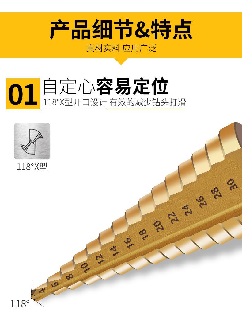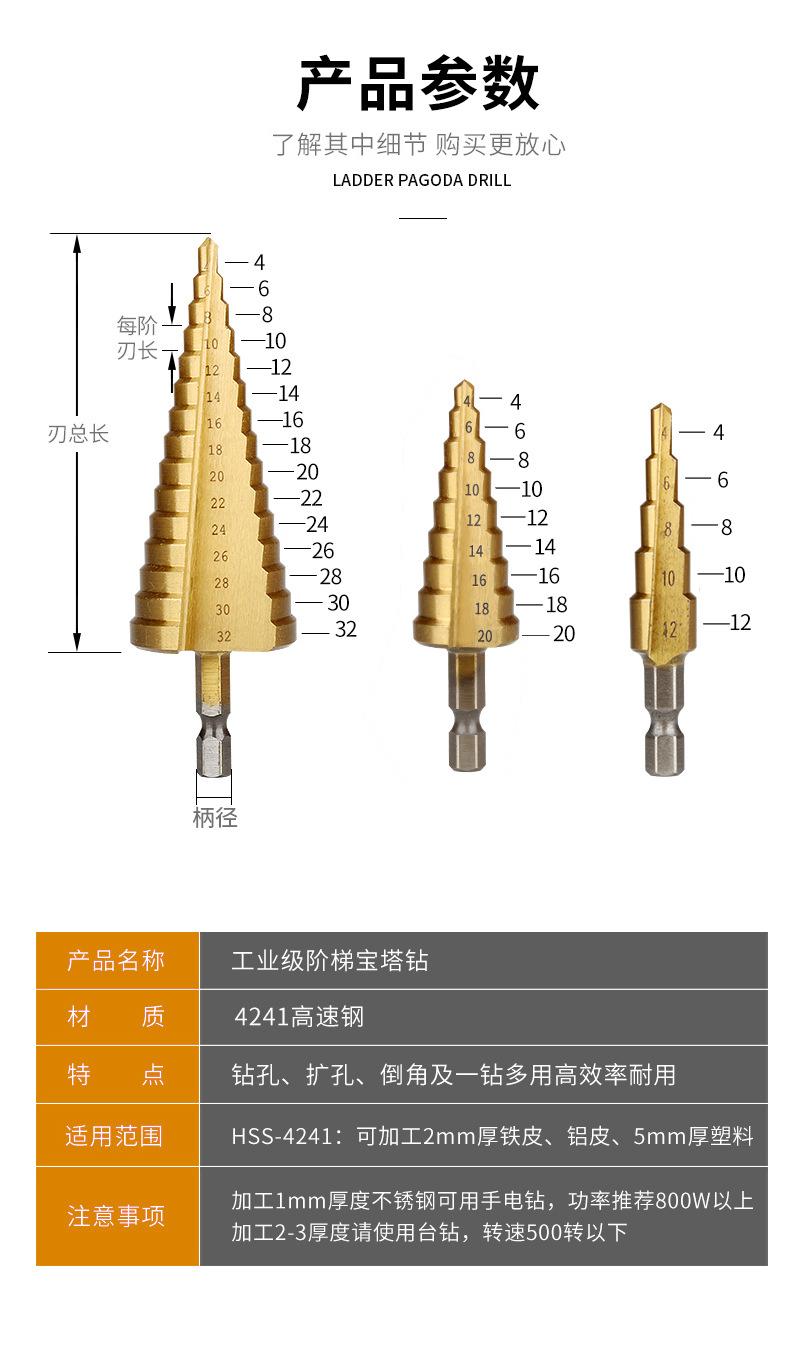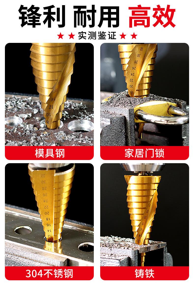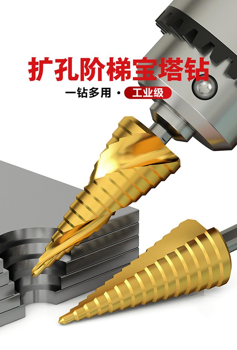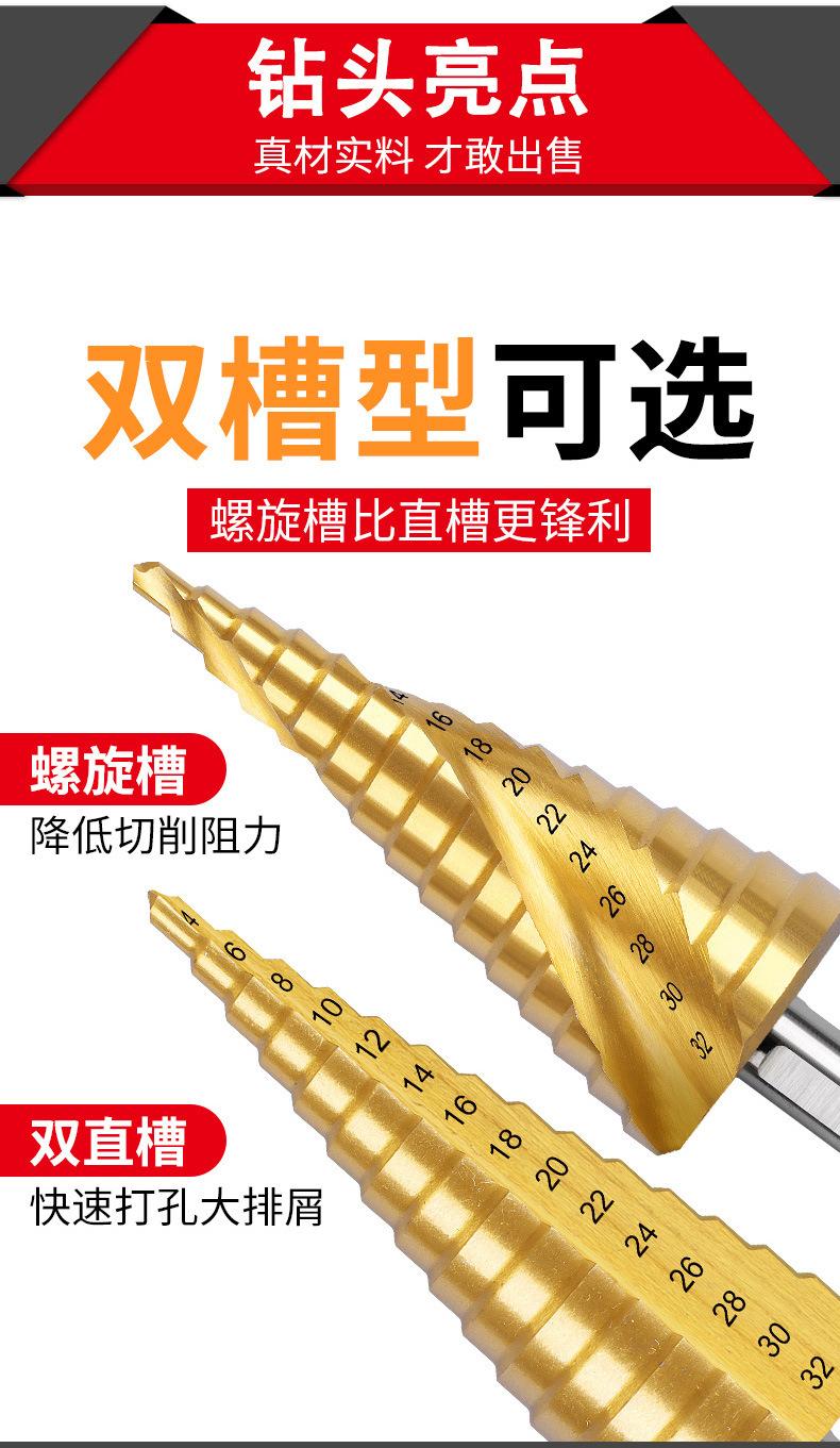 Abridor de agujeros cónicos, taladro pagoda, escalón, acero inoxidable, metal, acero superduro, carpintería, taladro especial, taladro de escalera, taladro espiral