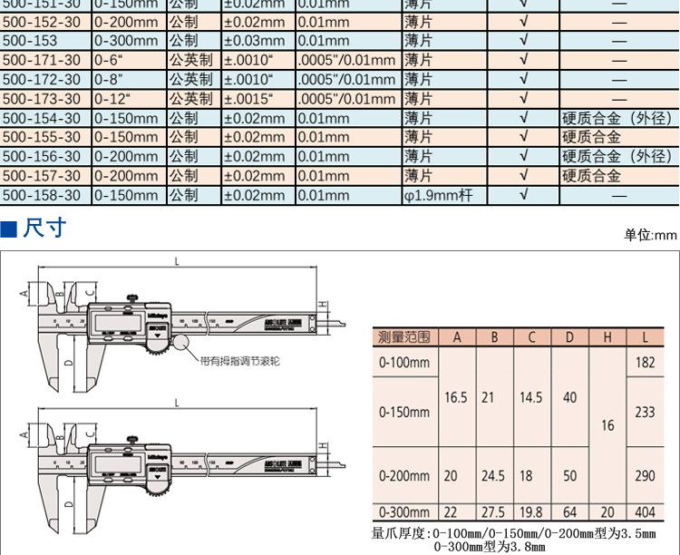500-181-30/0-150mm, 500-182-30/0-200mm