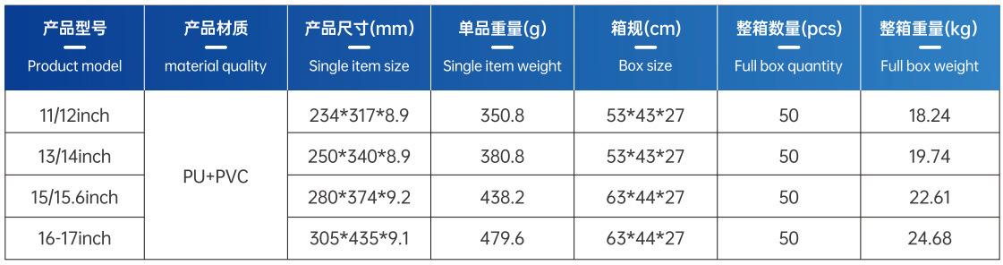 11-12 inch -13/14 inch -15.15.6 inch -16/17 inch