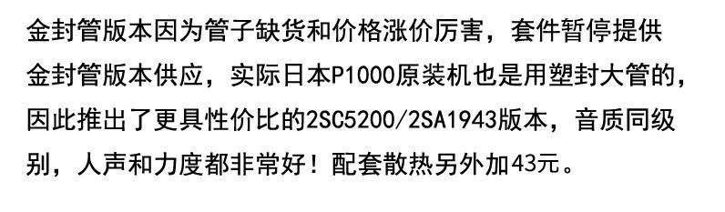 Gold tube kit (not including the main power tube), 2SC5200 Kit (including main power tube), 2SC5200 finished b...