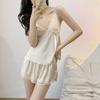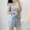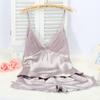 Pijama de tirantes de primavera y verano para mujer, traje sexy de dos piezas de seda de hielo, pantalones cortos de seda colgantes, ropa fina de talla grande para el hogar